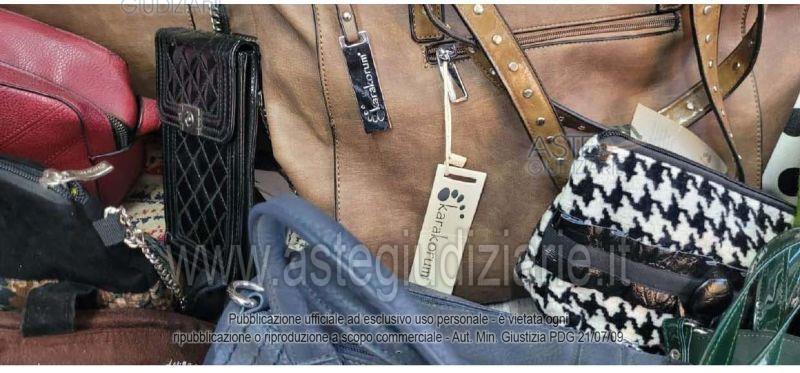 Vendita all'asta Senza incanto, con gara telematica asincrona - LOTTO 1: N.12 (dodici) borse Vestopazzo bianche e nere, varie dimensioni, nuove;N.24 (ventiquattro) borse varia marca (Karakorum, Camomilla, Vestopazzo), diversi modelli, coloriassortiti, nuove;N. 14 (quattordici) borse eleganti, marca Nadira, vari modelli e colori, nuove;2N. 13 (tredici) beauty Camomilla vari modelli e colori, nuovi;N. 10 (dieci) beauty marca Vestopazzo vari colori e dimensioni, nuovi;N. 48 (quarantotto) sciarpe vari modelli e colori, nuove;N.17 (diciassette) foulard, vari colori, nuovi;. Prezzo base € 6.130,00 (offerta minima € 6.130,00). Data inizio operazioni di vendita: 22/01/2026 ore 12:00. In caso di più offerte valide si procederà a gara che terminerà il 31/01/2026 ore 12:00. Rif. Tribunale di Caltanissetta - Esecuzioni mobiliari con vendita post legge 80 n. 40/2025