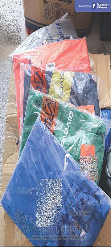 Vendita all'asta Senza incanto, con gara telematica asincrona - LOTTO 2: Numero 200 (duecento) giacche a vento traspiranti uomo – donna, varie taglie (da XXS a XXL) e colori, marca JOMA e GIVOVA, nonché n. 50 (cinquanta) giubbotti unisex, varie forme e taglie (da XS a XXXL), marca GIVOVA. Prezzo base € 1.500,00 (offerta minima € 1.500,00). Data inizio operazioni di vendita: 05/03/2026 ore 11:00. Giudice Dott. Anna Binetti. Rif. Tribunale di Trani - Esecuzioni mobiliari con vendita post legge 80 n. 125/2025