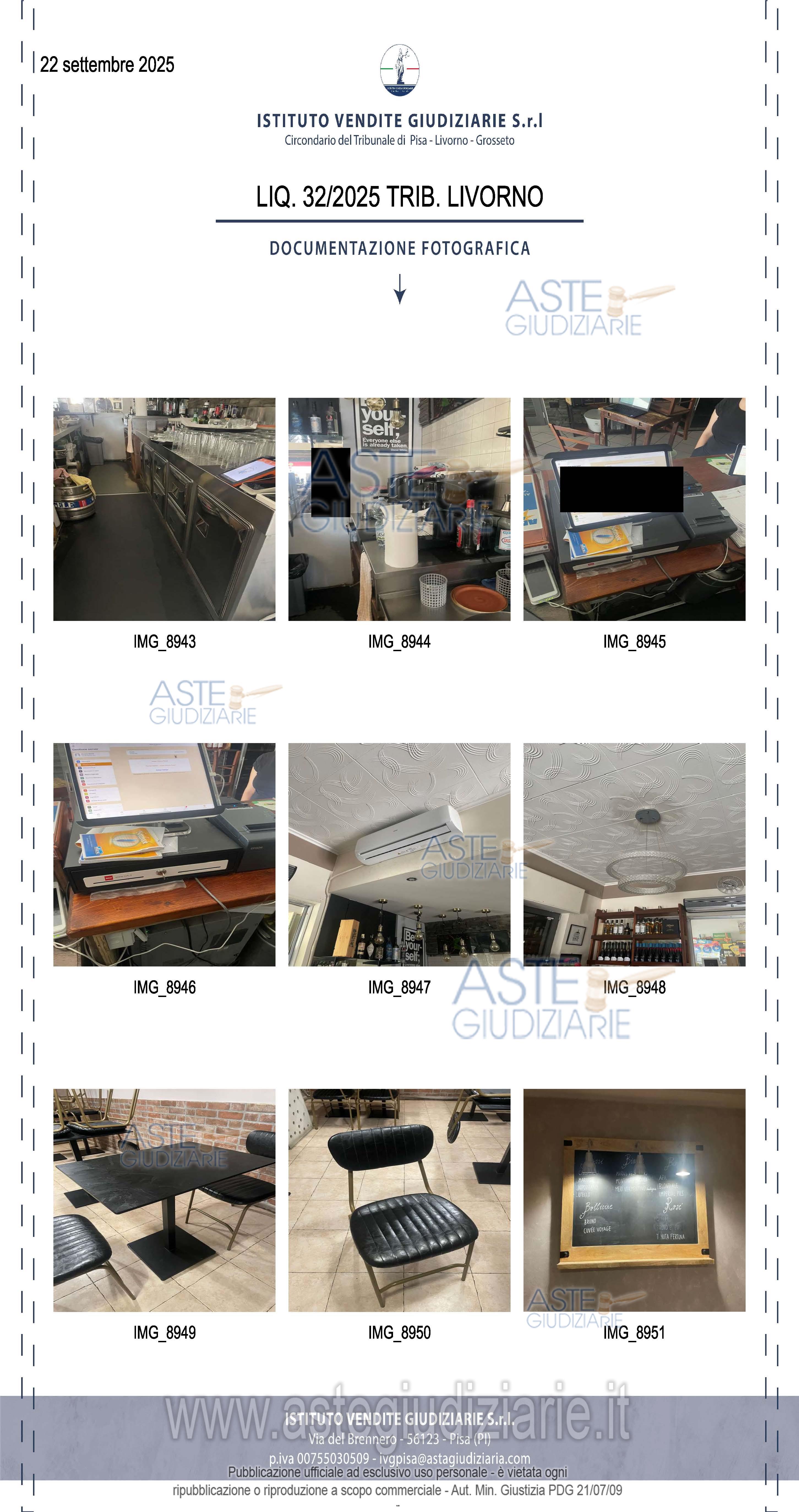 Vendita all'asta Senza incanto, con gara telematica asincrona - LOTTO UNICO: Azienda organizzata per l’esercizio dell’attività disomministrazione al pubblico di alimenti e bevande in forma dibar - buffet freddo, incluso alcolici e superalcolici; gelatipreconfezionati inclusa la preparazione e somministrazione disostanze alimentari; pizzeria con somministrazione. Prezzo base € 58.000,00 (offerta minima € 58.000,00). Data inizio operazioni di vendita: 10/06/2026 ore 10:00. Giudice Franco Pastorelli. Custode Giudiziario Dott. Michele Lorenzini - Email "michele@lorenziniboni.it"; Tel. 0586684721. Curatore Dott. Michele Lorenzini. Rif. Tribunale di Livorno - Liquidazione giudiziale(cci) n. 32/2025