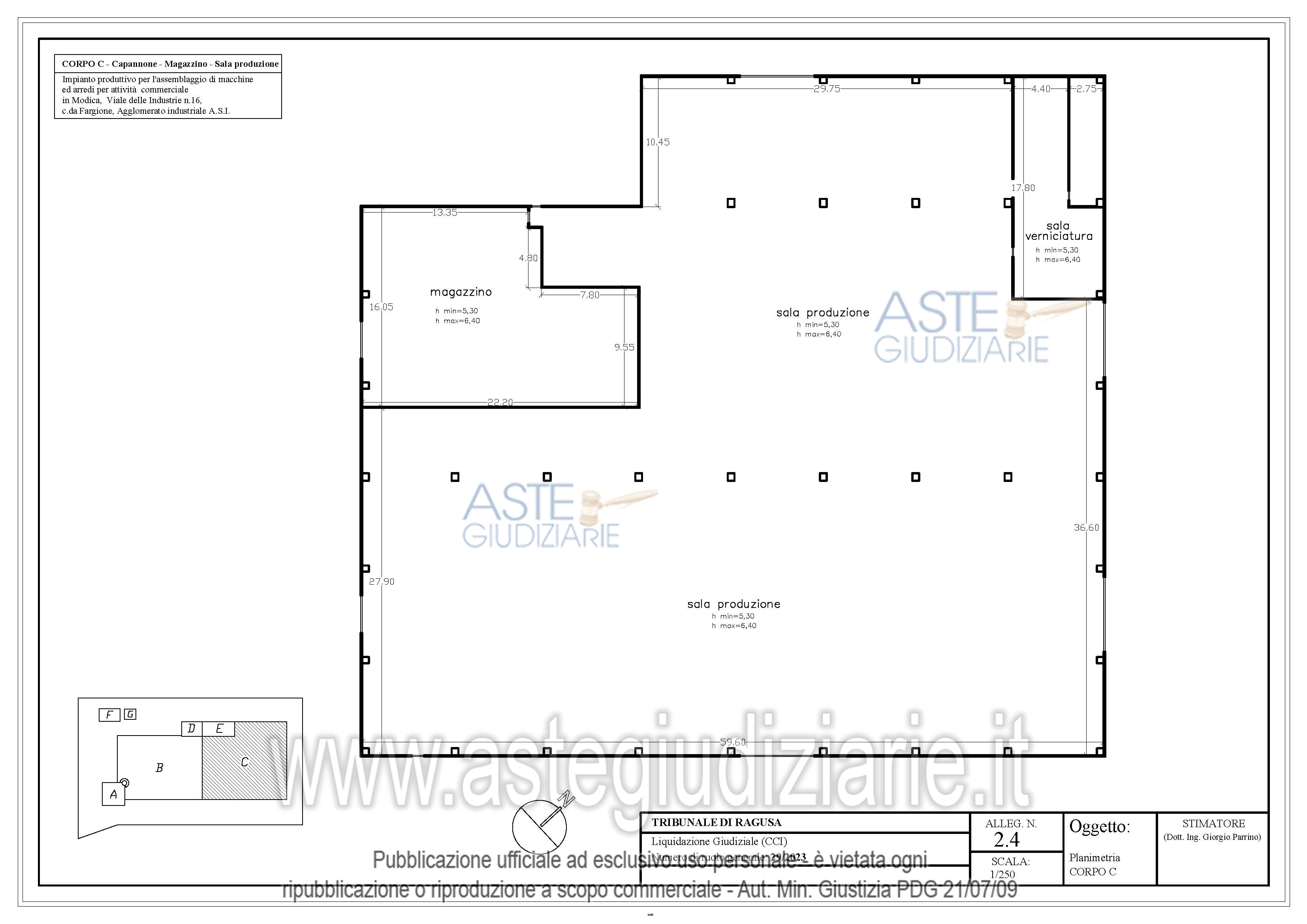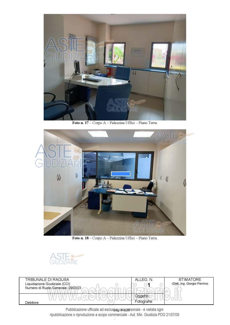 Vendita all'asta Competitiva, con gara telematica sincrona mista - LOTTO 1: Azienda sita in Modica (Rg) C.da Fargione V.le delle Industrie n.16,che ha operato nel settore della progettazione,produzione,commercializzazione di attrezzature e arredamenti per attività commerciali.Fanno parte dell’azienda i beni mobili,gli arredi,le giacenze di magazzino,le attrezzature,gli impianti,nonché il complesso immobiliare realizzato su lotto di circa mq.14.000 composto da capannone esteso circa mq.6010,palazzina uffici su 3 livelli di circa mq.270 per piano e alloggio custode di circa mq.110. Prezzo base € 3.266.067,00 (offerta minima € 3.266.067,00). Data vendita 17/12/2025 ore 16:30. Curatore Avv. Patrizia Gurrieri - Email "segreteria@studiolegalegurrieri.it"; Tel. 0932220000. Rif. Tribunale di Ragusa - Liquidazione giudiziale(cci) n. 29/2023