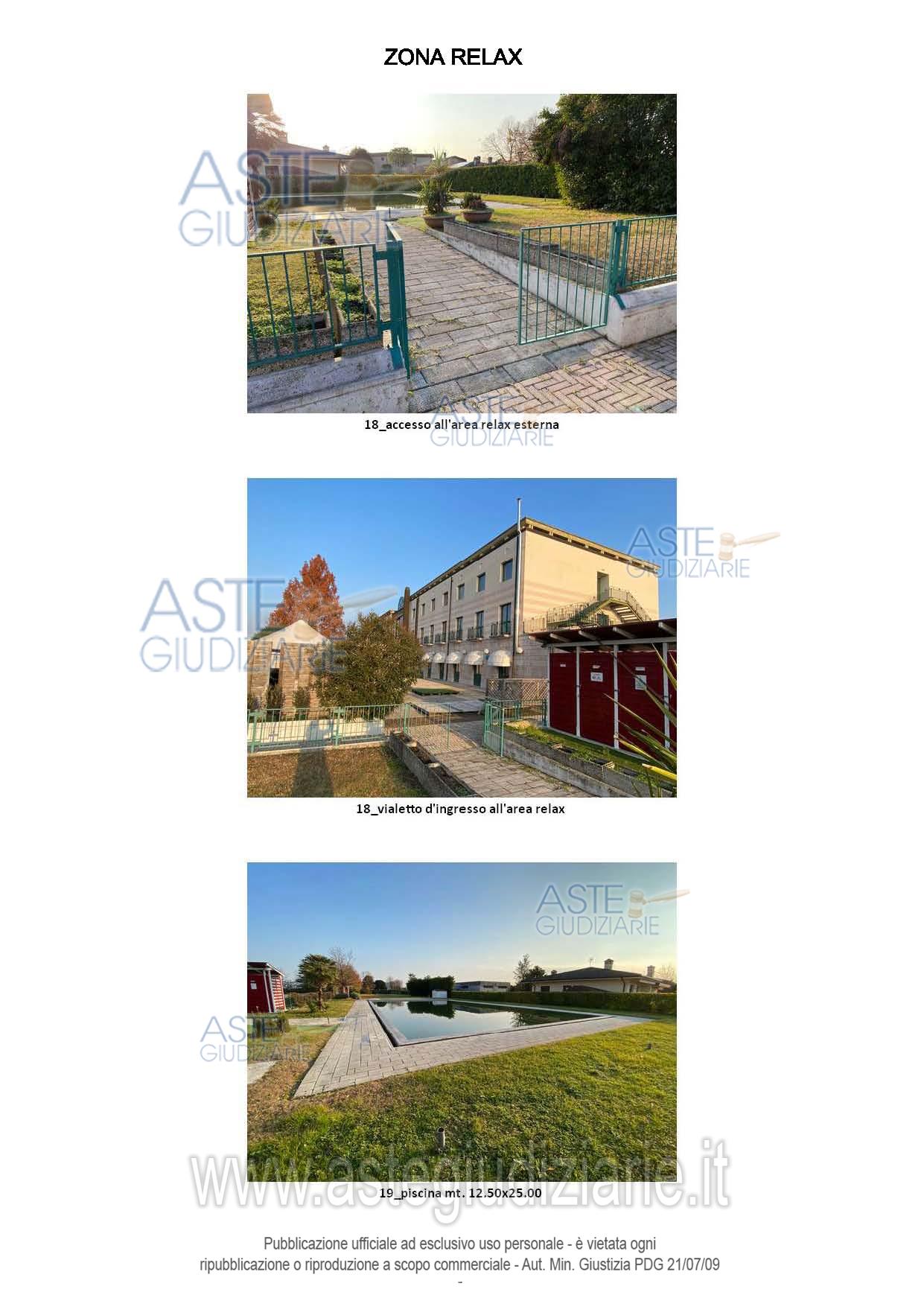 Vendita all'asta Senza incanto, con gara telematica sincrona mista - LOTTO UNICO: Complesso alberghiero costituito da: locali ristorazione, camere, sala convegni, spazi esterni ricreativi a solarium con 2 piscine a sfioro, ampio spazio a verde attrezzato; gli spazi esterni si completano con ampie aree a parcheggio scoperto e 2 zone a verde alberato in cui sono installate 2 fontane. Occupato da terzi. Prezzo base € 3.500.000,00 (offerta minima € 2.625.000,00). Data vendita 09/04/2026 ore 15:00. Giudice Dott. Antonio Albenzio. Professionista delegato alla vendita Not. Romano Jus - Email "notaio@jusromano.it". Custode Giudiziario Custode Giudiziario - Email "custodi@associazionenotarile.pn.it"; Tel. 3294536349. Rif. Tribunale di Pordenone - Espropriazione immobiliare (cartabia) n. 73/2023