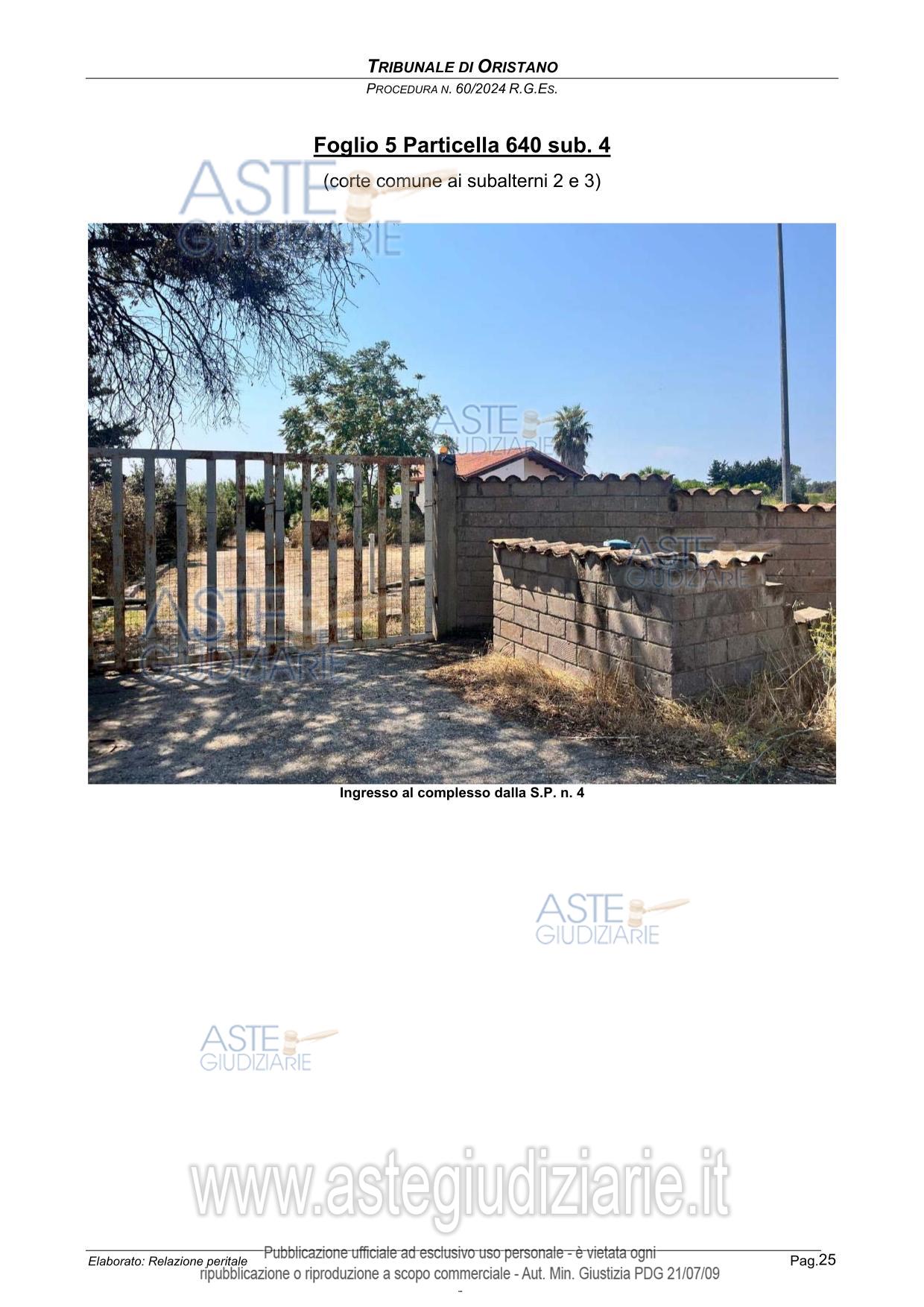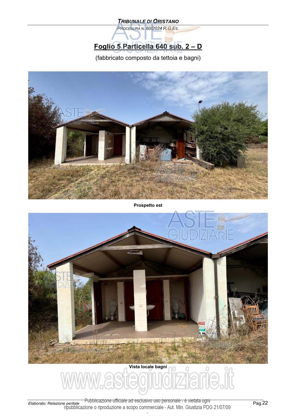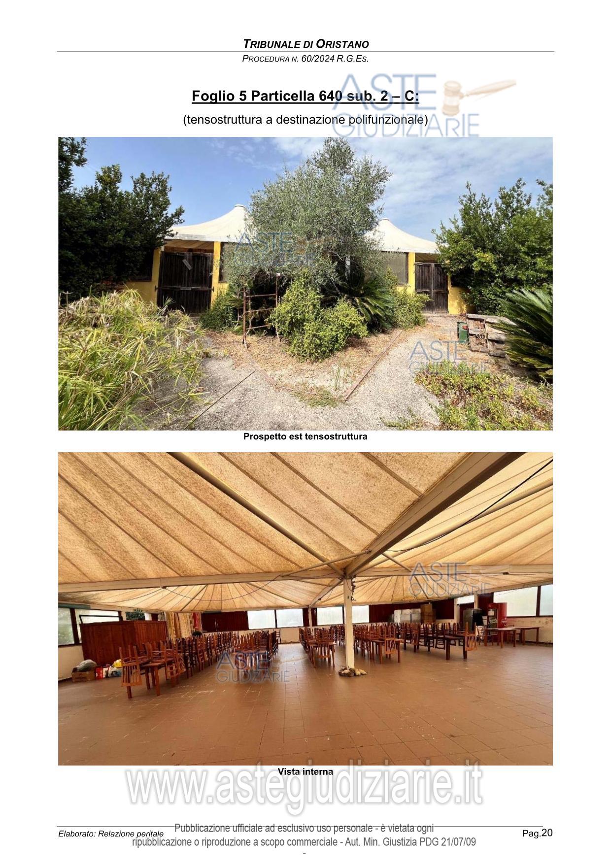Vendita all'asta Senza incanto, con gara telematica sincrona - LOTTO UNICO: Complesso immobiliare turistico rurale, al piano terra destinazione affitta camere e somministrazione pasti ( ex pizzeria) di 100 mq, circa, area attrezzata con barbecue e forno, tensostruttura di 400 mq. destinazione polifunzionale e area bar, al piano primo 4 camere da letto con bagno in camera, per ospiti, fabbricato di 50 mq. per ricovero attrezzi e mezzi più quattro bagni, area comune di mq 8.190 destinata a parcheggi, parco giochi e area camper. . Prezzo base € 942.237,90 (offerta minima € 706.678,00). Data vendita 15/05/2026 ore 10:30. Giudice Andrea Bonetti. Professionista delegato alla vendita Avv. Roberto Salaris - Email "avvrobertosalaris@gmail.com"; Cell. 3289628934; Tel. 0783217035. Custode Giudiziario Istituto Vendite Giudiziarie Sardegna Ivg Sardegna - Email "visite.ivgoristano@gmail.com"; Tel. 079630505. Rif. Tribunale di Oristano - Esecuzione immobiliare post legge 80 n. 60/2024