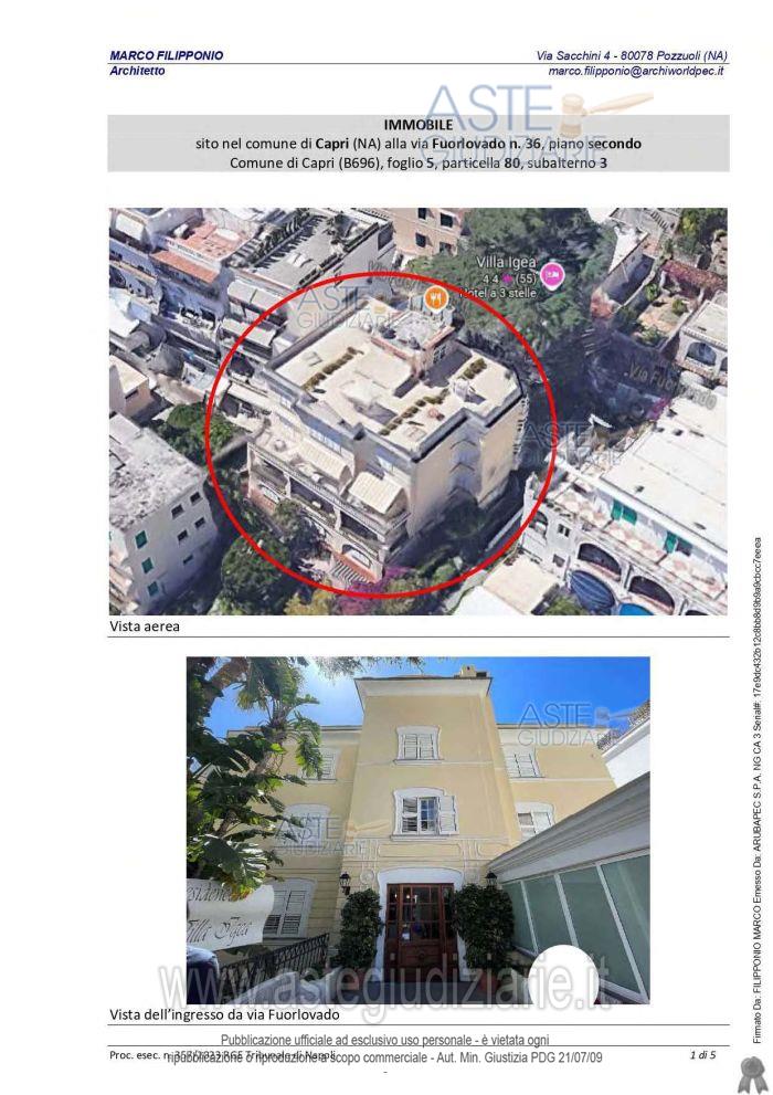 Vendita all'asta Senza incanto, con gara telematica asincrona - LOTTO UNICO: Quota indivisa di comproprietà pari a 14/100.000 del diritto di godimento esclusivo periodico turnario (periodo di godimento nn. 2 e 3, corrispondenti alle ultime due settimane del mese di gennaio) di un appartamento sito al secondo piano, interno 51, facente parte del complesso alberghiero–turistico denominato Residence Hotel Villa Igea, ubicato in Capri in Via Fuorlovado n°36 . Prezzo base € 18.600,00 (offerta minima € 13.950,00). Data inizio operazioni di vendita: 24/03/2026 ore 16:00. Giudice Manuela Granata. Professionista delegato alla vendita Avv. Francesco Cipriani Marinelli - Email "francesco@avvciprianimarinelli.it"; Tel. 0815519272. Rif. Tribunale di Napoli - Contenzioso civile n. 27514/2024