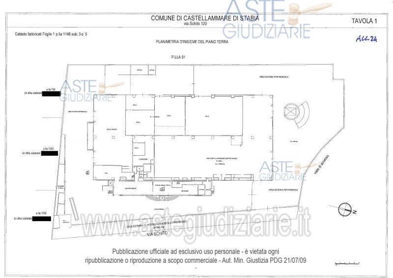 Vendita all'asta Senza incanto, con gara telematica asincrona - LOTTO UNICO:  Piena ed intera proprietà di complesso produttivo composto da opificio con adiacente struttura alberghiera ubicato in Castellammare di Stabia alla via Schito 185 (zona ASI), oltre area esterna pertinenziale, sulla quale insistono dei corpi di fabbrica e tettoie. Prezzo base € 2.880.000,00 (offerta minima € 2.160.000,00). Data inizio operazioni di vendita: 25/11/2025 ore 13:00. Giudice Emanuela Musi. Professionista delegato alla vendita Avv. Rosalba Micera - Email "rosamice@libero.it"; Cell. 3492928841. Custode Giudiziario Avv. Rosalba Micera - Email "rosamice@libero.it"; Cell. 3492928841.  Rif. Tribunale di Torre Annunziata - Esecuzione immobiliare post legge 80 n. 6/2015