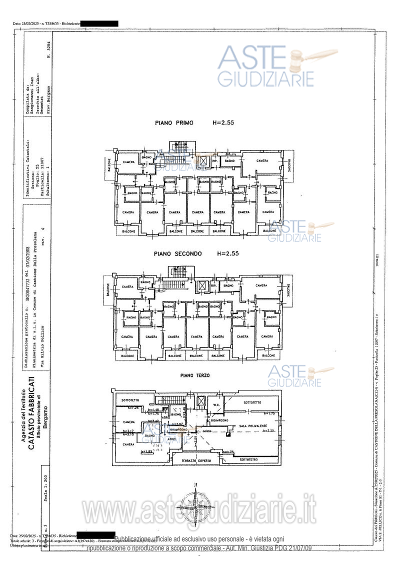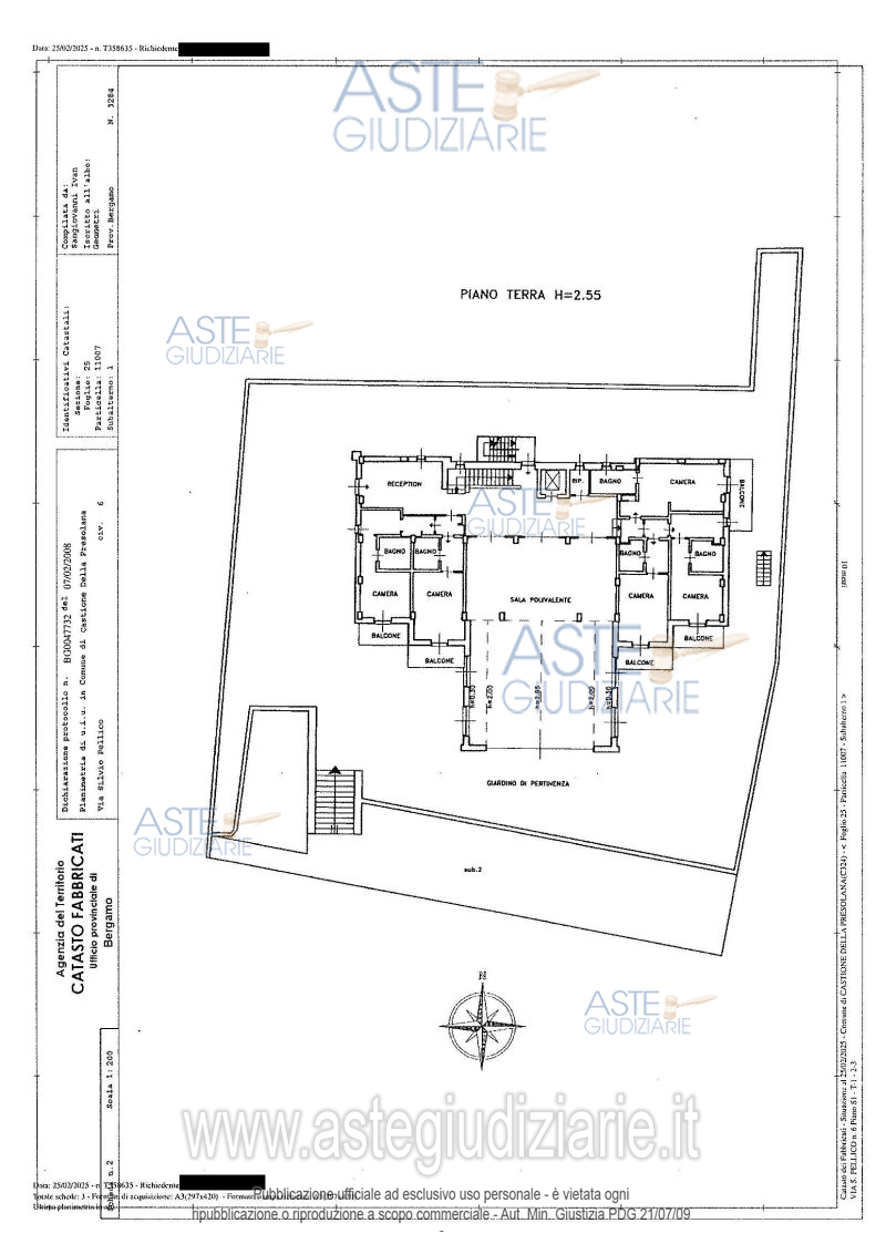 Vendita all'asta Senza incanto, con gara telematica asincrona - LOTTO UNICO: Edificio con destinazione alberghiera di tipo Meublè, composto da 25 camere con servizi igienici poste al piano terra, primo, secondo e terzo piano. Al piano interrato e piano terra sale polivalenti ed accessori tecnici. L’ingresso pedonale avviene su via Silvio Pellico con ingresso ampio senza gradini. Un vano scala interno collega tutti i piani ed è comunicante con la scala esterna di sicurezza. I piani sono serviti da un ascensore interno. Prezzo base € 919.000,00 (offerta minima € 689.250,00). Data inizio operazioni di vendita: 22/04/2026 ore 15:00. Professionista delegato alla vendita Avv. Laura Minotti - Email "l.minotti@slbotti.com"; Tel. 035243420. Custode Giudiziario Avv. Ulisse Plebani - Email "ulisse.plebani@libero.it"; Tel. 035570414. Rif. Tribunale di Bergamo - Esecuzione immobiliare post legge 80 n. 628/2024