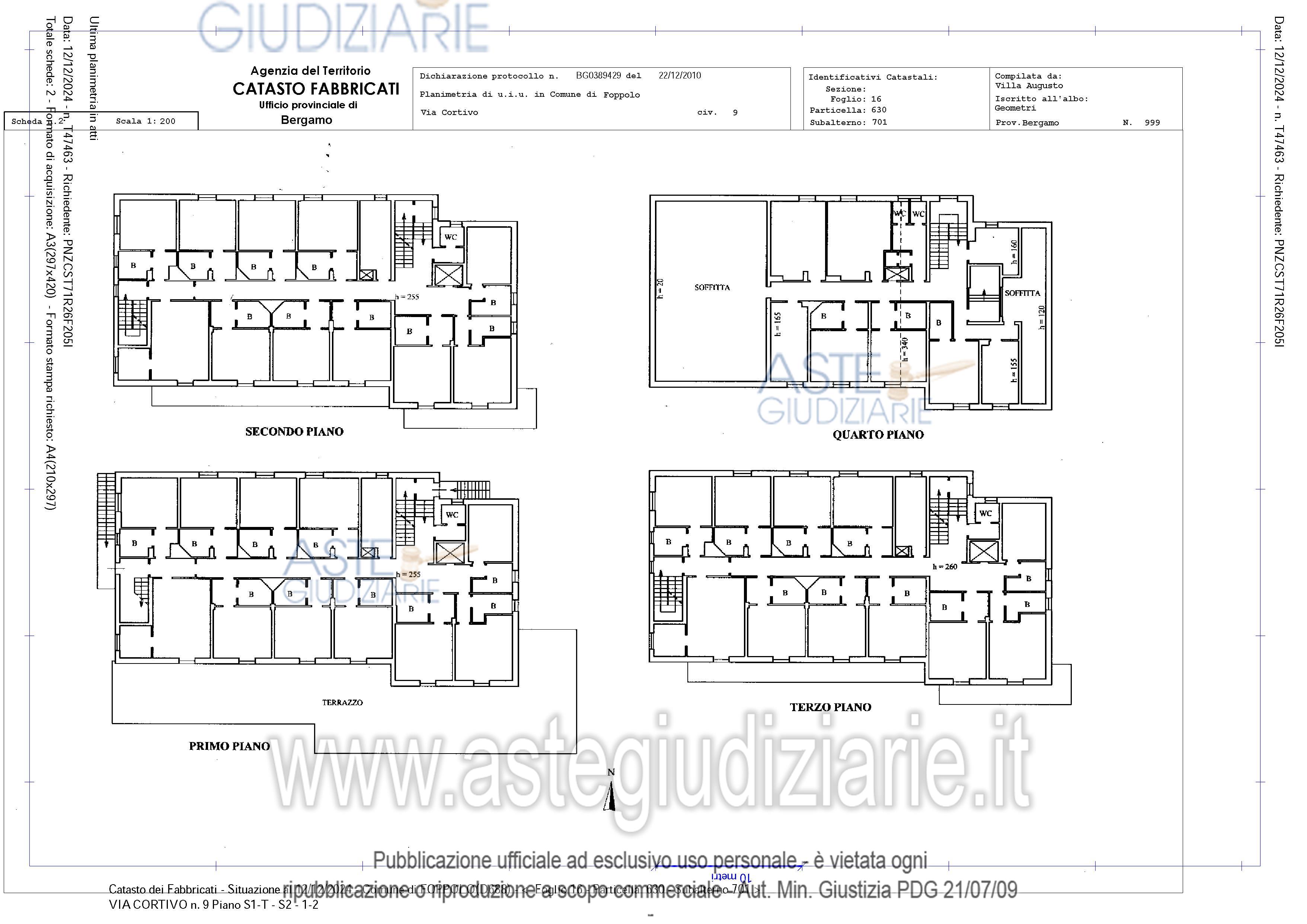 Vendita all'asta Senza incanto, con gara telematica asincrona - LOTTO UNICO: Quota di 1/5 della piena proprietà di un immobile a destinazione alberghiera. Prezzo base € 152.180,00 (offerta minima € 114.135,00). Data inizio operazioni di vendita: 26/11/2025 ore 10:00. Giudice Vincenzo Domenico Scibetta. Professionista delegato alla vendita Dott. Alberto Carrara - Email "studiocarrara@studiocgls.com"; Tel. 0350073211. Custode Giudiziario Dott. Alberto Carrara - Email "studiocarrara@studiocgls.com"; Tel. 0350073211. Rif. Tribunale di Bergamo - Espropriazione immobiliare (cartabia) n. 300/2024