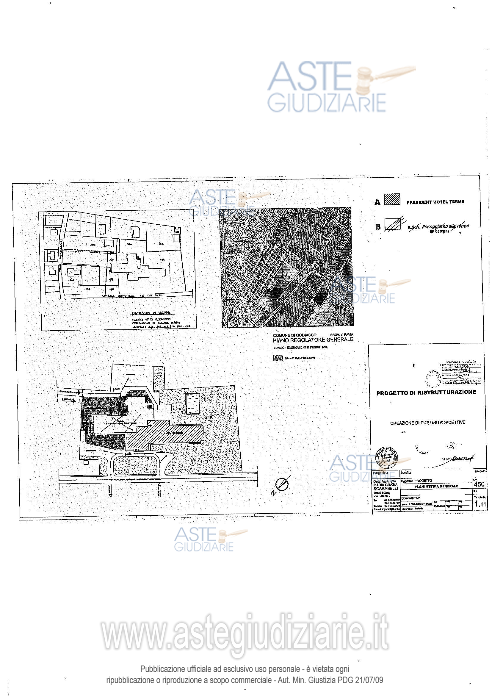Vendita all'asta Senza incanto, con gara telematica asincrona - LOTTO UNICO: Complesso alberghiero di cinque piani fuori terra oltre a piano seminterrato, in parte in corso di ristrutturazione, con bar, ristorante, piscina scoperta, giardino e annesso stabilimento termale. Prezzo base € 1.078.945,31 (offerta minima € 809.208,98). Data inizio operazioni di vendita: 24/03/2026 ore 15:00. Giudice Francesca Paola Claris Appiani. Professionista delegato alla vendita Dott. Stefano Gorgoni - Email "paolo.bisio@studiogpl.it"; Tel. 038229131. Custode Giudiziario Istituto Vendite Giudiziarie Srl Ifir Piemonte - Email "richiestevisite.vigevano@ifir.it"; Tel. 0381691137. Rif. Tribunale di Pavia - Esecuzione immobiliare post legge 80 n. 461/2021