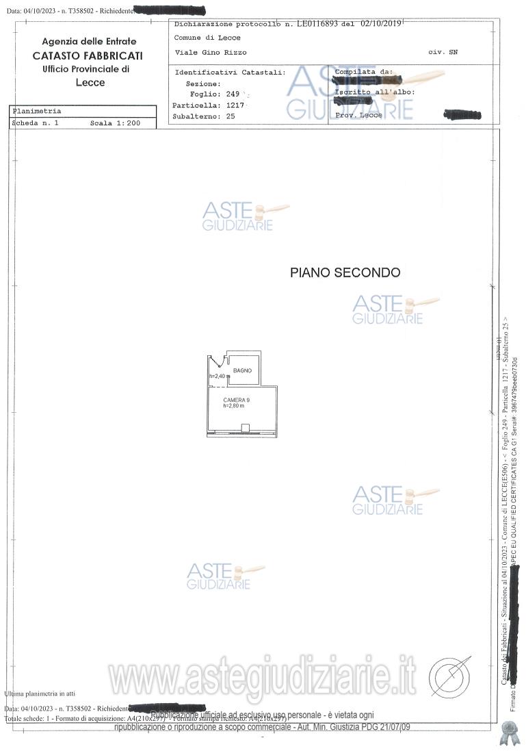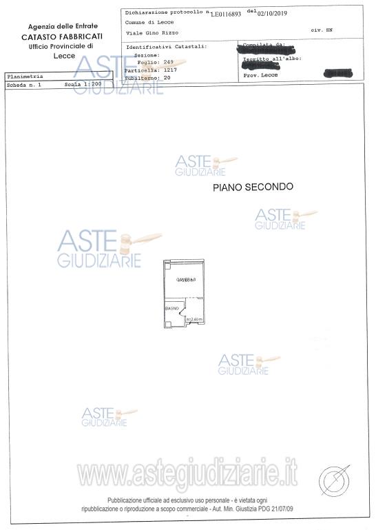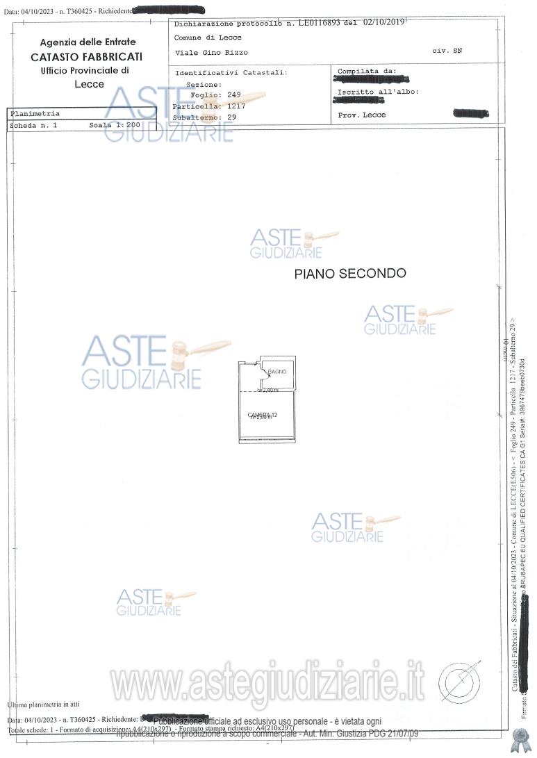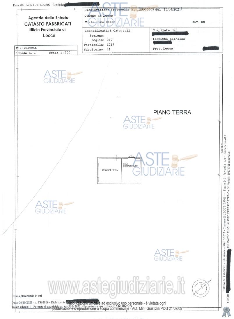 Vendita all'asta Senza incanto, con gara telematica asincrona - LOTTO UNICO: 1000/1000 della piena proprietà di un edificio pluripiano destinato ad “Albergo con Centro Benessere” sito in Lecce al Viale Gino Rizzo, n.11.L’immobile presenta caratteristiche “non ordinarie” in termini di tipologia edilizia, dimensioni e destinazione d’uso ed è costituito da: Corpo Camere e Corpo Servizi, oltre alle aree scoperte.E' composto da piano interrato e n.6 piani fuori terra e risulta non ultimato. Prezzo base € 6.665.625,00 (offerta minima € 4.999.220,00). Data inizio operazioni di vendita: 21/05/2026 ore 10:00. Professionista delegato alla vendita Avv. Mimmo Renna - Email "avv.mimmorenna@gmail.com"; Cell. 3203773709; Tel. 3203773709. Custode Giudiziario Avv. Mimmo Renna - Email "avv.mimmorenna@gmail.com"; Cell. 3203773709; Tel. 3203773709. Rif. Tribunale di Lecce - Esecuzione immobiliare post legge 80 n. 279/2020