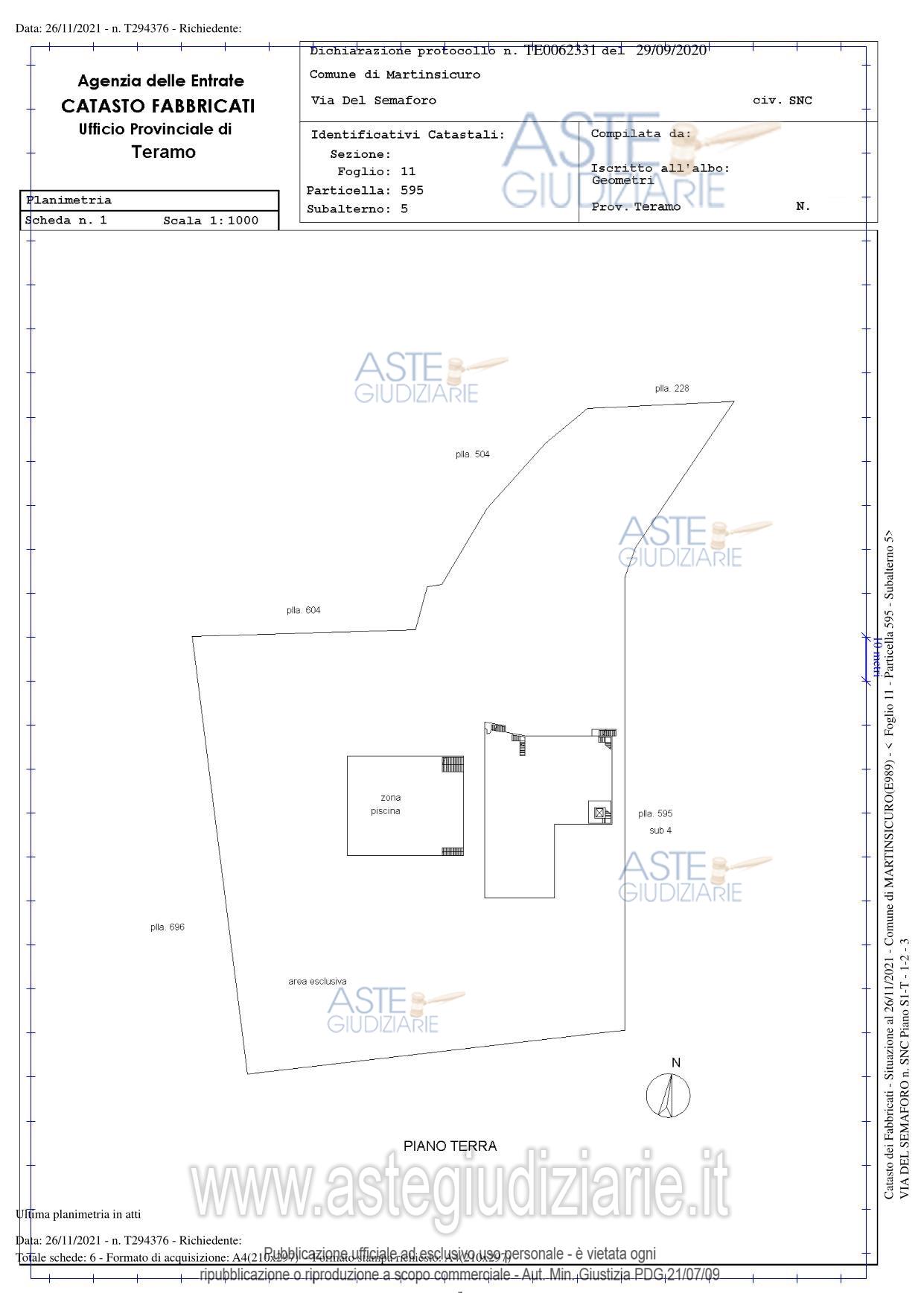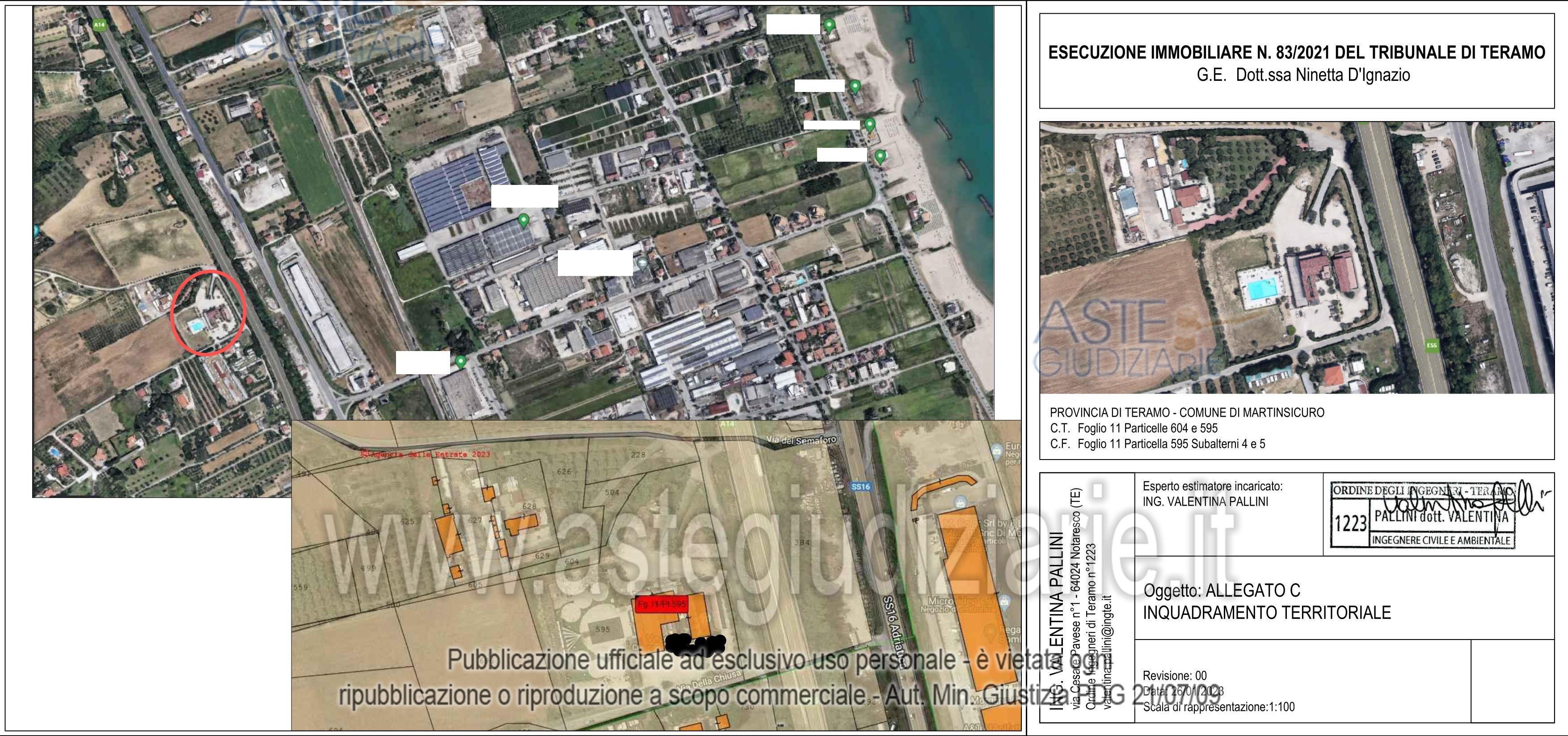 Vendita all'asta Senza incanto, con gara telematica asincrona - LOTTO UNICO: Diritti pari alla piena proprietà di complesso turistico/ricettivo sito a Martinsicuro(TE)in Via del Semaforo snc, costituito da:1.Ampia area esterna con piscina e locali tecnici;2.Ristorante/pizzeria con cucina, sala ristorante su2livelli,servizi e terrazza panoramica in parte coperta;3.Albergo con sala ristorante,cucina,camere con bagno privato e ampi spazi a corredo quali bar,hall,sale comuni,disimpegni,servizi,magazzini e locali di sgombero,ampio porticato,terrazze e locali tecnici e attigua cappella. Prezzo base € 5.097.000,00 (offerta minima € 3.822.750,00). Data inizio operazioni di vendita: 29/04/2026 ore 15:00. Professionista delegato alla vendita Dott. Walter Di Provvido - Email "walter.diprovvido@hotmail.it"; Tel. 0861432035. Custode Giudiziario Dott. Walter Di Provvido - Email "walter.diprovvido@hotmail.it"; Tel. 0861432035. Rif. Tribunale di Teramo - Esecuzione immobiliare post legge 80 n. 83/2021