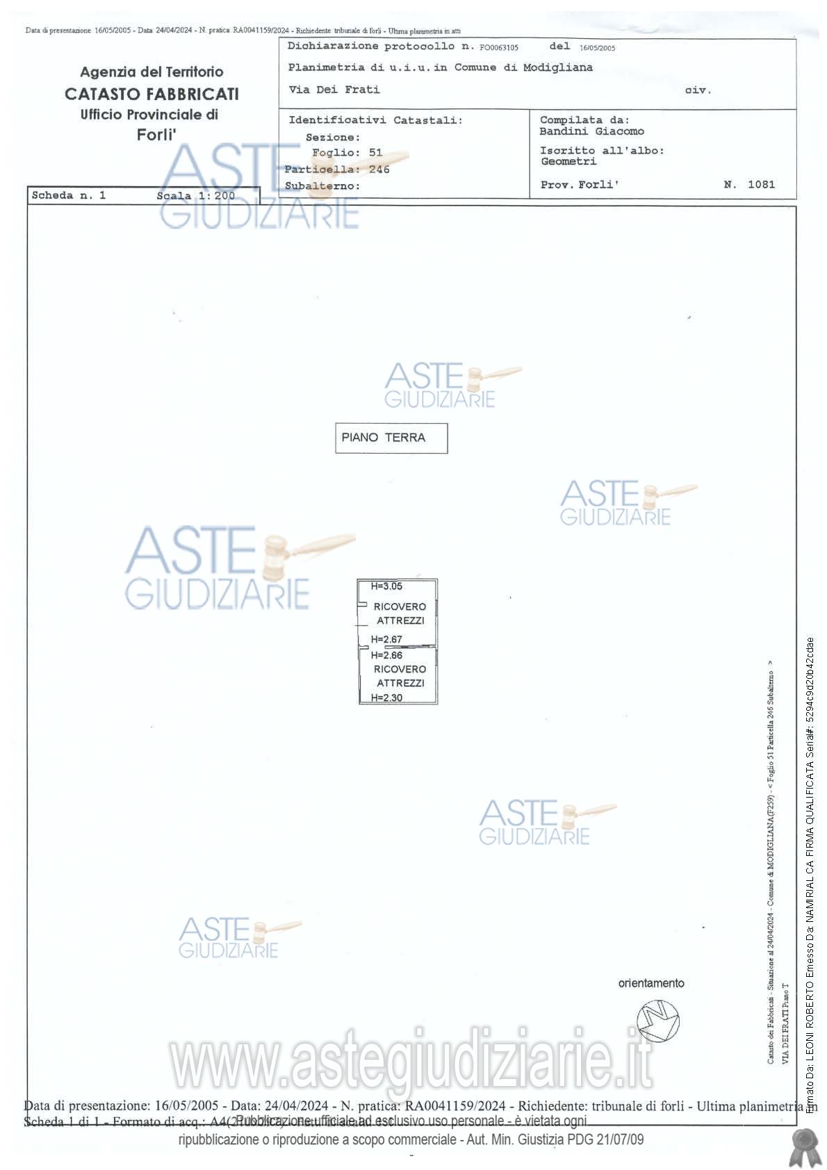 Vendita all'asta Senza incanto, con gara telematica asincrona - LOTTO UNICO: 1/1 di fondo rustico, con sovrastanti fabbricati a destinazione agrituristica, nonchè piccolo proservizio ad uso deposito agricolo e ricovero attrezzi, oltre terreni in parte coltivati a vigneti di pregio, uliveti, alberi da frutto ed in parte lasciato a bosco (aventi un'estensione catastale complessiva di circa ha 19.07.36). Il fondo rustico è attualmente nella disponibilità della parte esecutata così come autorizzato dal G.Es. in data 30/07/2024. Prezzo base € 1.164.660,00 (offerta minima € 873.495,00). Data inizio operazioni di vendita: 03/06/2026 ore 10:00. Giudice Danilo Maffa. Professionista delegato alla vendita Not. Antonella Odierna - Email "esecuzioninotai@gmail.com"; Tel. 054320059. Custode Giudiziario Ivg Forli’ Srl - Email "ivg.forli@gmail.com"; Tel. 0543473480. Rif. Tribunale di Forlì - Espropriazione immobiliare (cartabia) n. 37/2024