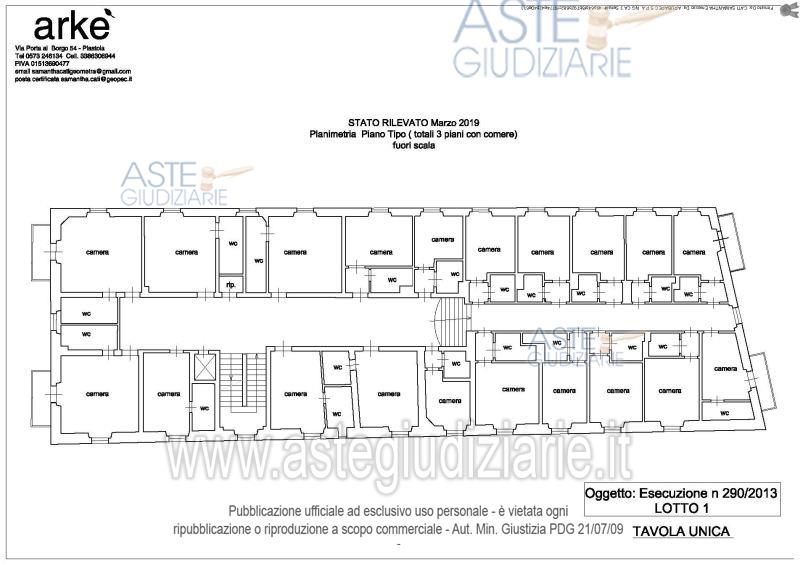 Vendita all'asta Senza incanto, con gara telematica asincrona - LOTTO UNICO: Diritto di piena proprietà su un hotel di classificazione tre stelle ubicato nei pressi della zona "La Salute", un'area posta nelle immediate vicinanze del centro storico e del centro termale. E' composto da piano interrato, piano terra, piani primo, secondo e terzo e piano soffitta, collegati da vano scala interno e dall'ascensore. Al piano primo è presente una terrazza praticabile che copre, all'incirca, la metà della superficie. La superficie convenzionale è di complessivi mq.2.499,95. Prezzo base € 710.000,00 (offerta minima € 532.500,00). Data inizio operazioni di vendita: 26/11/2025 ore 10:00. Giudice Dott. Nicoletta Maria Caterina Curci. Professionista delegato alla vendita Not. Gaia Nardone - Email "gaianardone@notariato.it"; Tel. 0574611242. Custode Giudiziario Isveg - Email "prenota.pt@isveg.it"; Tel. 05733571525. Rif. Tribunale di Pistoia - Esecuzione immobiliare post legge 80 n. 290/2013