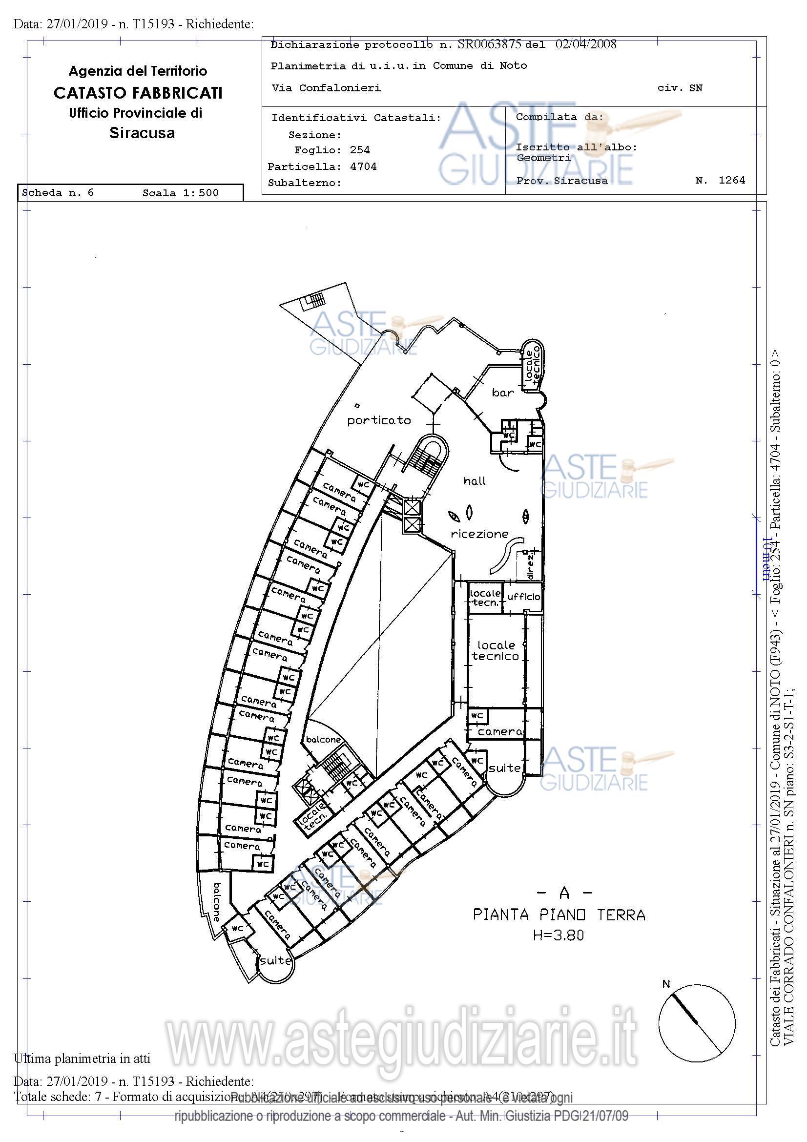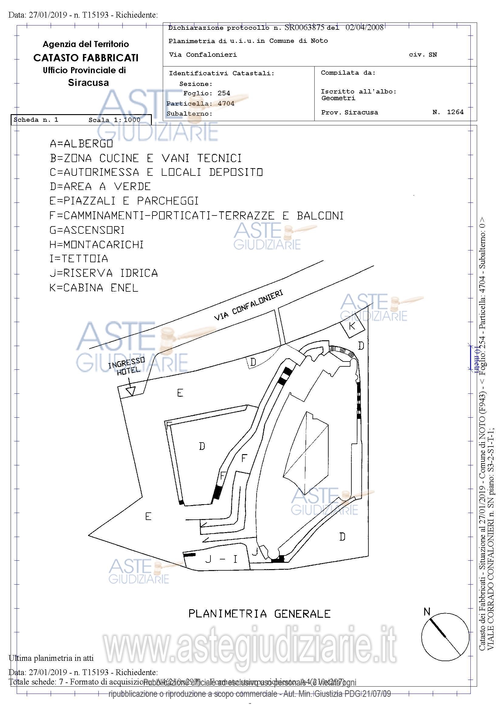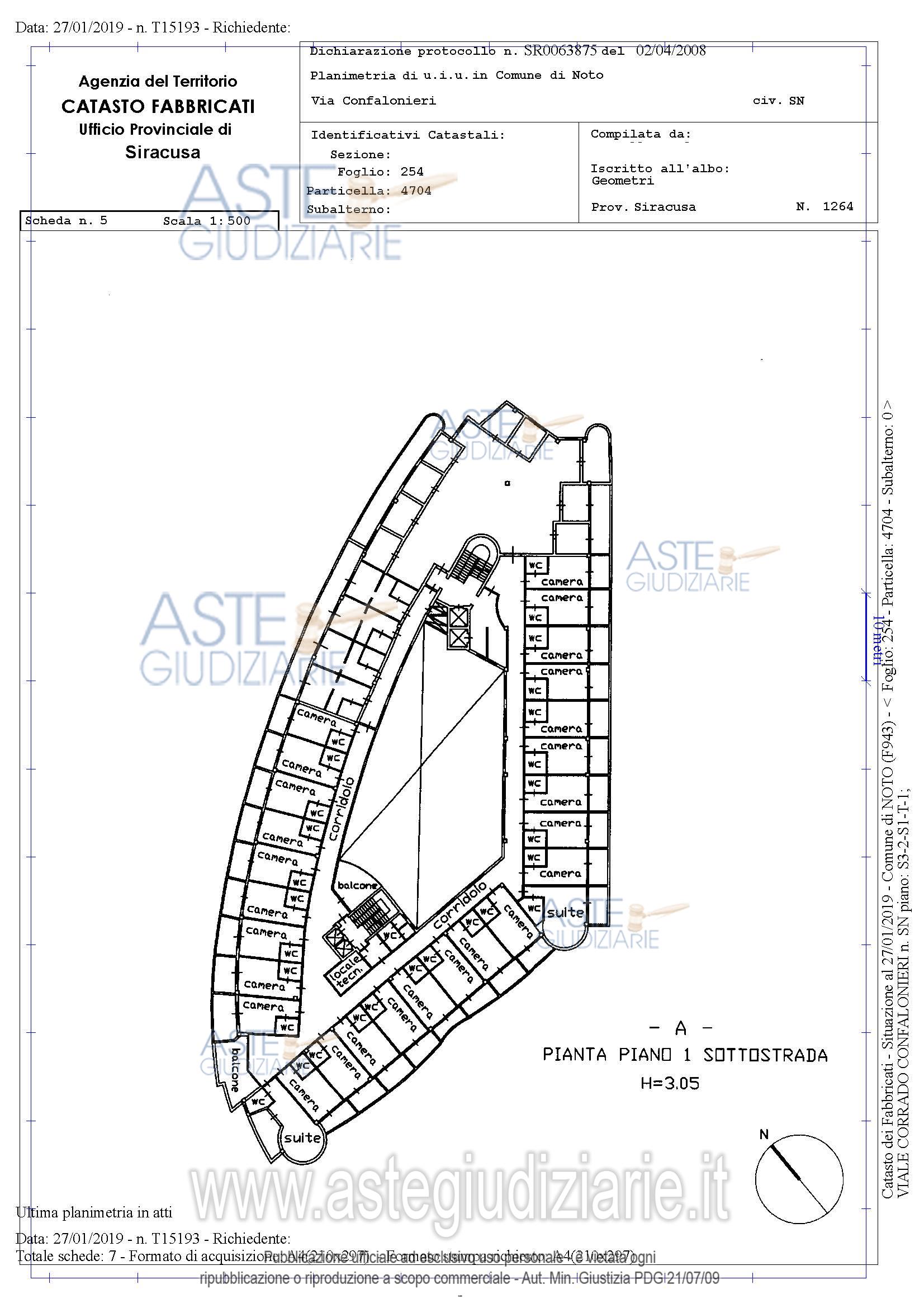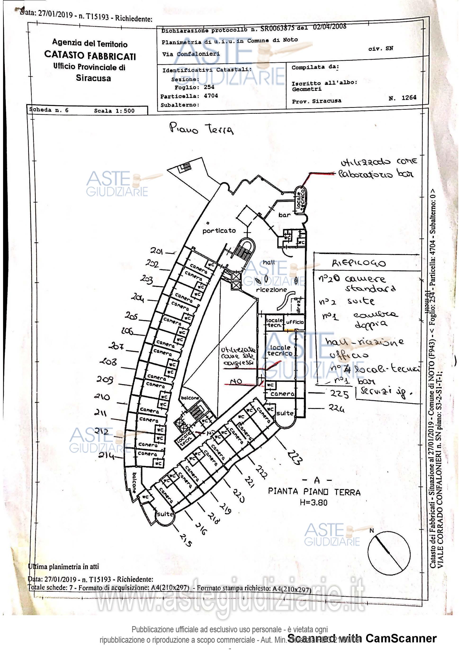 Vendita all'asta Senza incanto, con gara telematica sincrona mista - LOTTO UNICO: Piena proprietà del complesso alberghiero sito in Noto, via Confalonieri snc, composto da un unico corpo di fabbrica a cinque elevazioni fuori terra, con annessa piscina, area a parcheggio e terreno di pertinenza. Riportato nel Catasto dei Fabbricati di Noto al foglio 254, particella 4704, cat. D/2, rendita catastale € 74.908,00. Prezzo base € 3.347.582,24 (offerta minima € 2.510.686,68). Data vendita 16/06/2026 ore 13:00. Giudice Concita Cultrera. Professionista delegato alla vendita Avv. Carlo Carpinteri - Email "avvocato.carpinteri@gmail.com"; Tel. 093139555. Custode Giudiziario Avv. Carlo Carpinteri - Email "avvocato.carpinteri@gmail.com"; Tel. 093139555. Rif. Tribunale di Siracusa - Esecuzione immobiliare post legge 80 n. 129/2012
