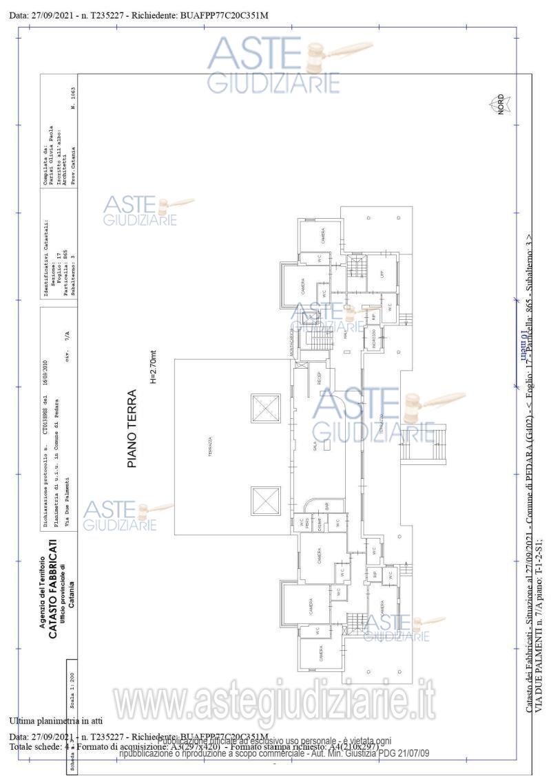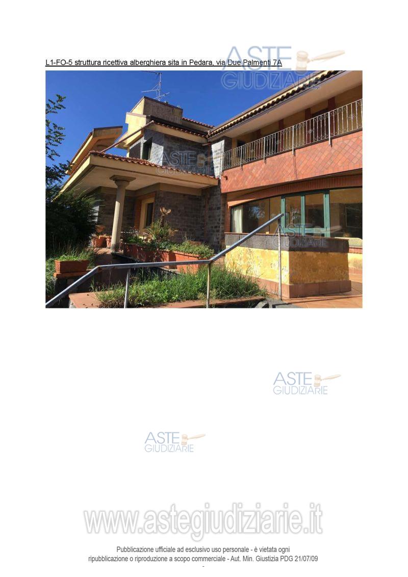 Vendita in attesa dell'emissione del nuovo bando d'asta. LOTTO UNICO: Unica struttura ricettiva alberghiera a tre stelle dotata di corte esclusiva e piscina sita in Pedara in via Due Palmenti 7/A, piano seminterrato, piano terra, piano primo e secondo, con due terreni adibiti ad aree esterne attrezzate a servizio della struttura alberghiera. Ultimo prezzo base € 506.655,63 (offerta minima € 379.991,70). Giudice Cristiana Delfa. Professionista delegato alla vendita Avv. Maria Rosa Zappala - Email "info@legalezappala.it"; Tel. 095532922. Custode Giudiziario Avv. Maria Rosa Zappala - Email "info@legalezappala.it"; Tel. 095532922. Rif. Tribunale di Catania - Esecuzione immobiliare post legge 80 n. 527/2007