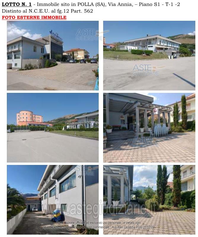 Vendita all'asta Senza incanto, con gara telematica asincrona - LOTTO 1: Piena proprietà di un Complesso immobiliare alberghiero. La struttura alberghiera si sviluppa su 4 livelli, e si accede dal Piano terra, collegato ad un piano seminterrato dove sono ubicati i garage, i depositi e la zona lavanderia, un piano terra dove si trova il ristorante la cucina, il bar e la reception, il piano primo dove si trovano le 21 stanze dell’albergo, e un sottotetto adibito a deposito. Prezzo base € 1.850.100,00 (offerta minima € 1.387.575,00). Data inizio operazioni di vendita: 25/05/2026 ore 11:30. Professionista delegato alla vendita Dott. Tommaso Nigro - Email "studionigroeboli@gmail.com"; Tel. 0828308262. Custode Giudiziario Dott. Tommaso Nigro - Email "studionigroeboli@gmail.com"; Tel. 0828308262. Rif. Tribunale di Lagonegro - Esecuzione immobiliare post legge 80 n. 32/2017
