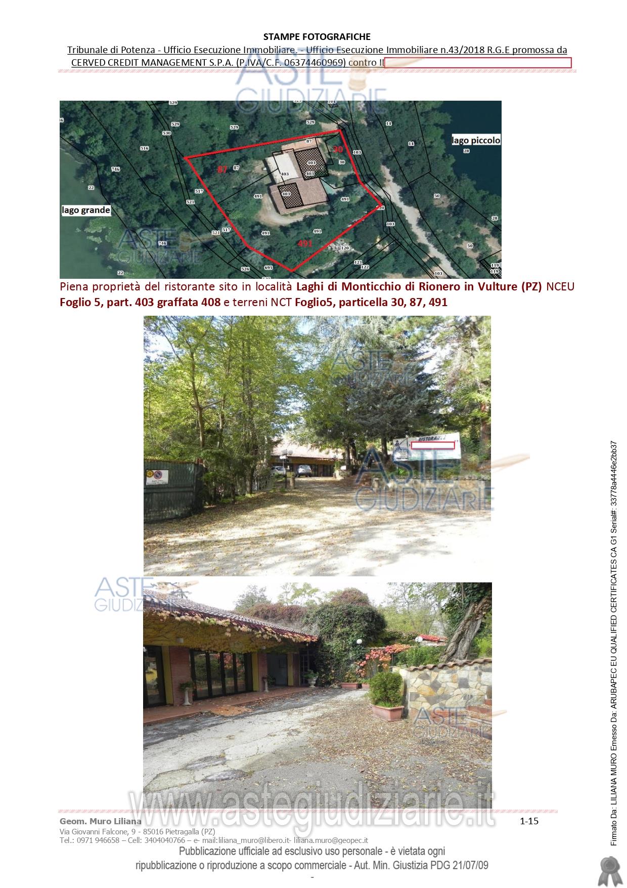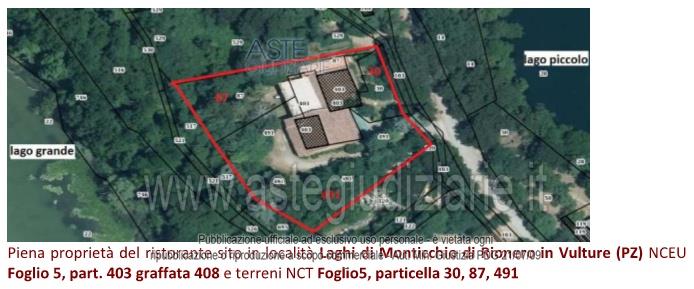 Vendita all'asta Senza incanto, con gara telematica asincrona - LOTTO UNICO: diritto di proprietà per la quota di 1/1 del complesso immobiliare destinato alla ristorazione sito in località Laghi di Monticchio di Rionero in Vulture (PZ). Prezzo base € 825.095,00 (offerta minima € 618.821,25). Data inizio operazioni di vendita: 30/06/2026 ore 10:00. Professionista delegato alla vendita Avv. Francesco Missanelli - Email "francescomissanelli@gmail.com"; Tel. 0971443116. Custode Giudiziario Avv. Francesco Missanelli - Email "francescomissanelli@gmail.com"; Tel. 0971443116. Rif. Tribunale di Potenza - Esecuzione immobiliare post legge 80 n. 36/2019