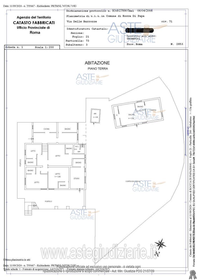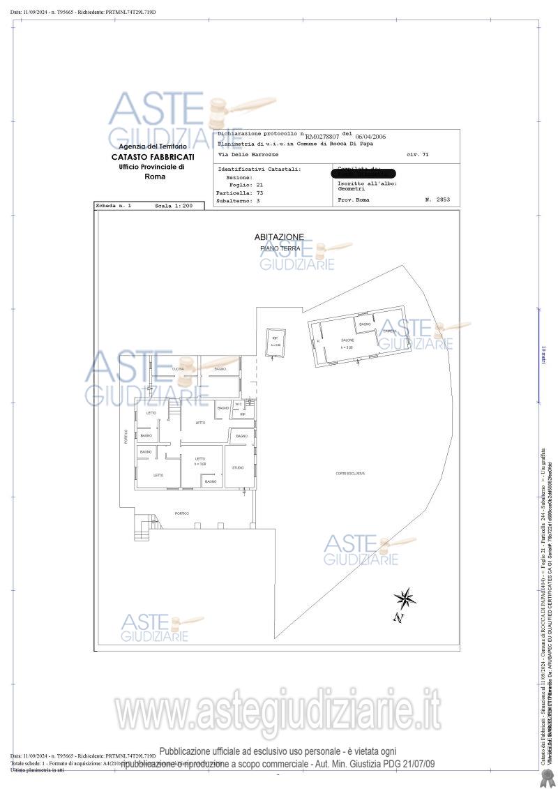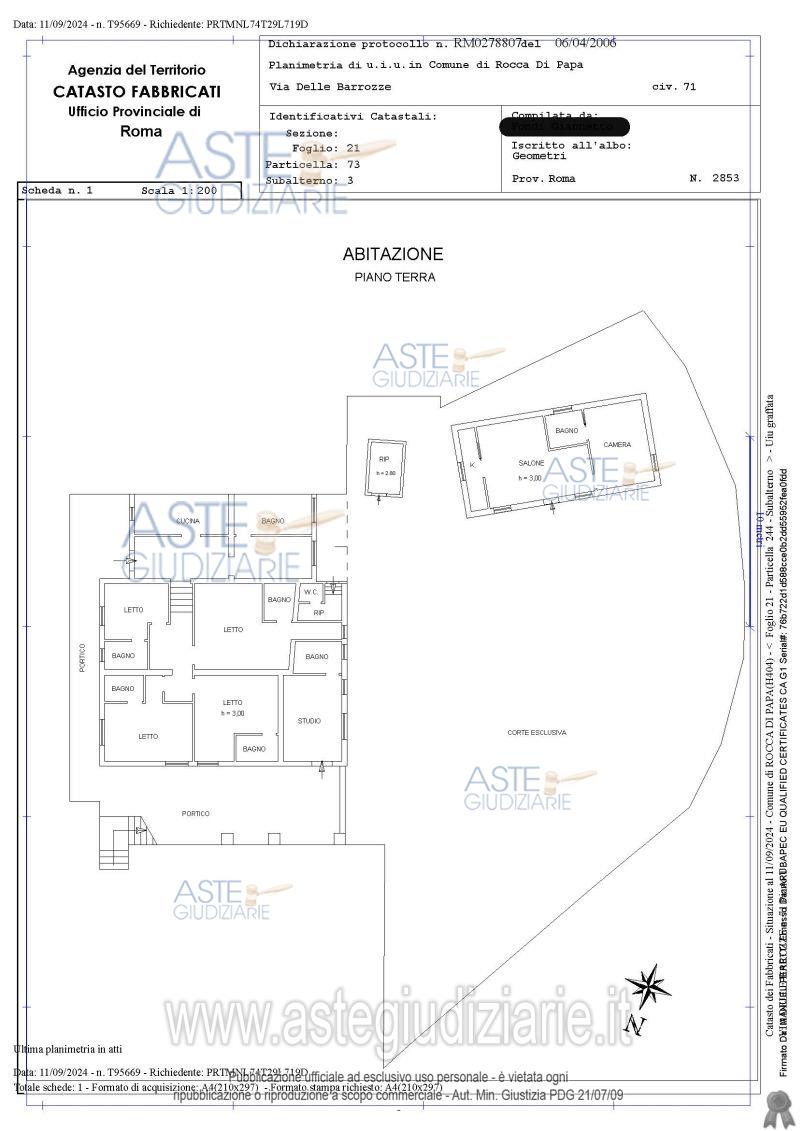 Vendita in attesa dell'emissione del nuovo bando d'asta. LOTTO UNICO: Piena proprietà di casa di abitazione di 239 mq, utilizzata come Bed & Breakfast (affittacamere). Ultimo prezzo base € 390.000,00 (offerta minima € 292.500,00). Professionista delegato alla vendita Avv. Sara Di Geronimo. Custode Giudiziario Avv. Sara Di Geronimo - Email "info@studiodigeronimo.com". Rif. Tribunale di Velletri - Espropriazione immobiliare (cartabia) n. 295/2024