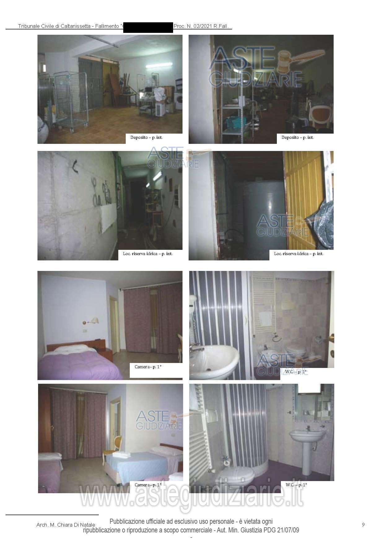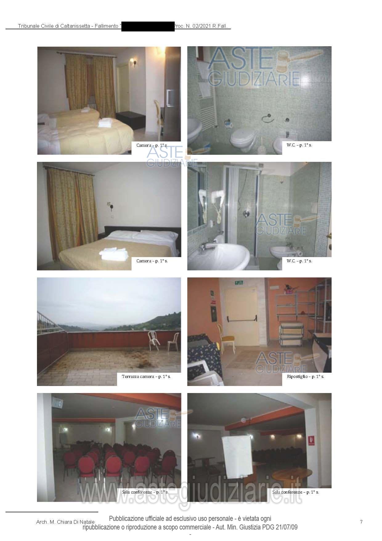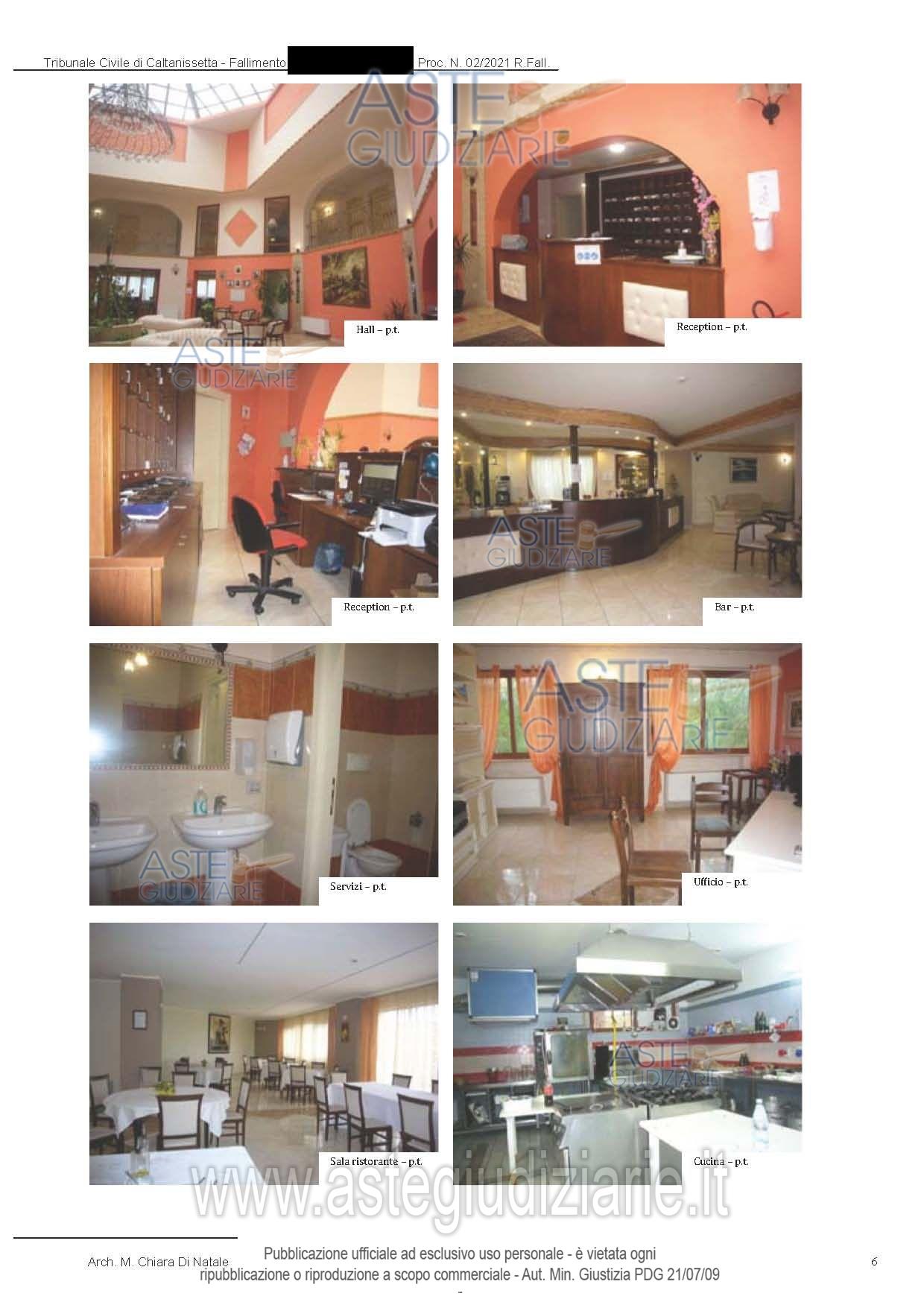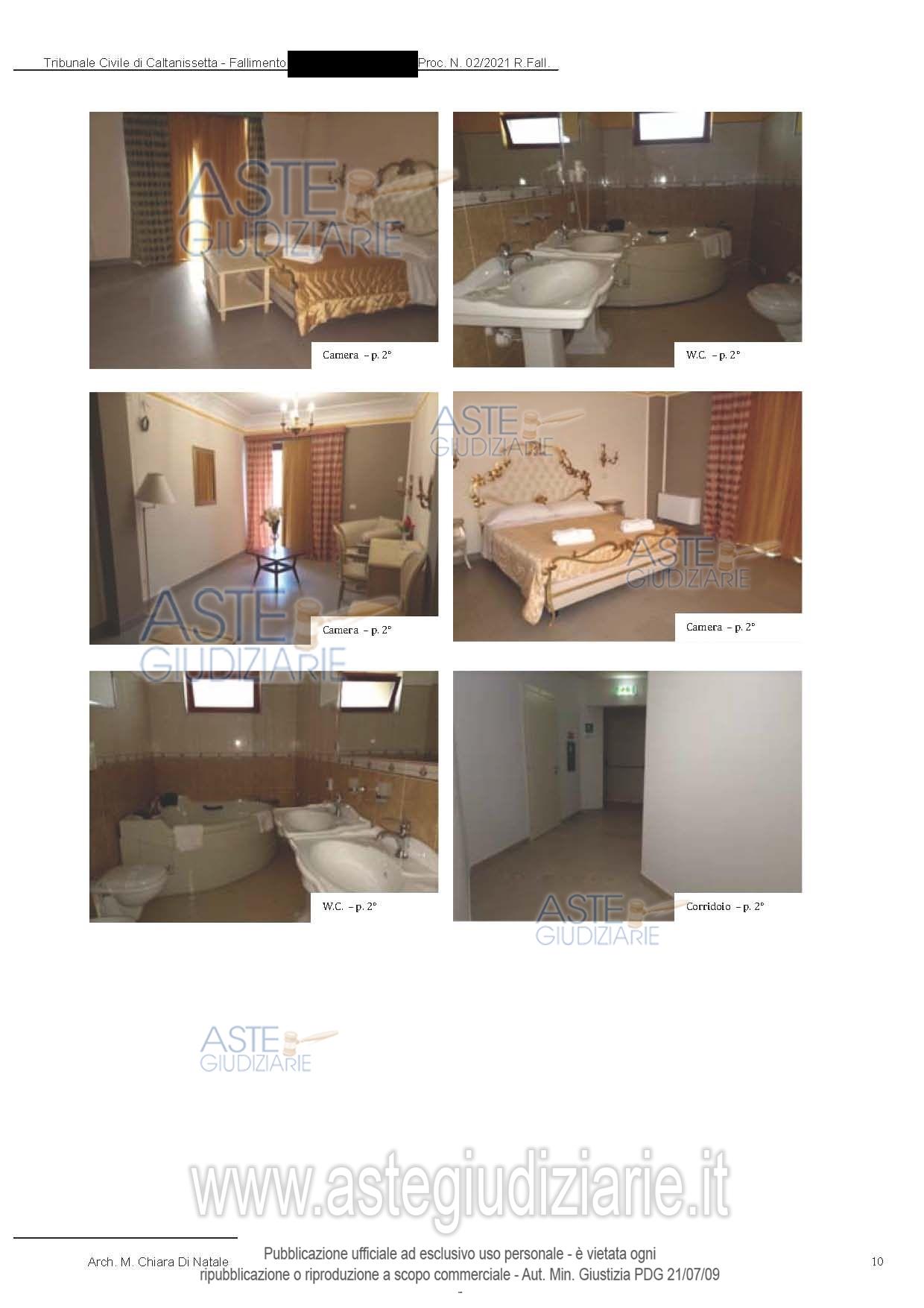 Vendita all'asta Senza incanto, con gara telematica sincrona mista - LOTTO 1: Building used as a hotel with a parking lot and an exclusive outdoor area, arranged over 3 above-ground levels, 2 underground floors, and one basement floor; the complex has 40 rooms as well as two restaurants and a conference room, covering an area of approximately 3,580.00 square meters, in addition to various adjacent plots of land, with no building capacity, and the movable assets inside the hotel, valued at €42,504.00. Prezzo base € 938.311,49 (offerta minima € 703.733,62). Data vendita 11/06/2026 ore 10:00. Giudice Dott. Ester Rita Difrancesco. Custode Giudiziario Aste Giudiziarie Inlinea S.P.A. - Email "vendite@astegiudiziarie.it"; Tel. 0586 201480. Curatore Dott. Carolina Cucurullo. Rif. Tribunale di Caltanissetta - Fallimentare (nuovo rito) n. 2/2021