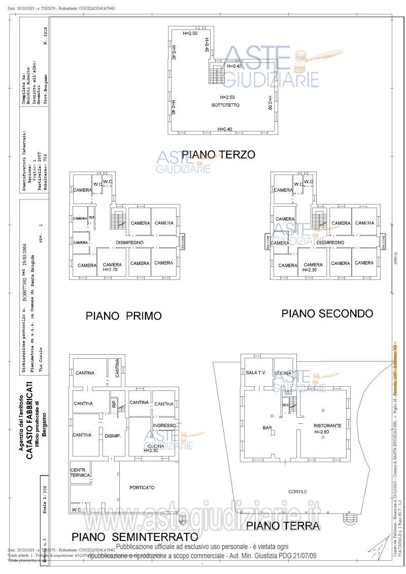 Vendita all'asta Senza incanto, con gara telematica asincrona - LOTTO 2:  Intera piena proprietà di fabbricato adibito ad albergo, in disuso, denominato “Albergo San Lorenzo” di circa mq. 1.073,00 posto su cinque piani, di cui uno seminterrato, sito in SANTA BRIGIDA (BG) Via Carale 1 e terreni adiacenti per circa mq. 2658. Prezzo base € 53.240,63 (offerta minima € 39.930,47). Data inizio operazioni di vendita: 25/11/2025 ore 13:00. Professionista delegato alla vendita Dott. Paola Orlandini - Email "paola.orlandini@studio-orlandini.eu"; Tel. 035211531. Custode Giudiziario  Dott. Paola Orlandini - Email "paola.orlandini@studio-orlandini.eu"; Tel. 035211531.  Rif. Tribunale di Bergamo - Espropriazione immobiliare (cartabia) n. 500/2023