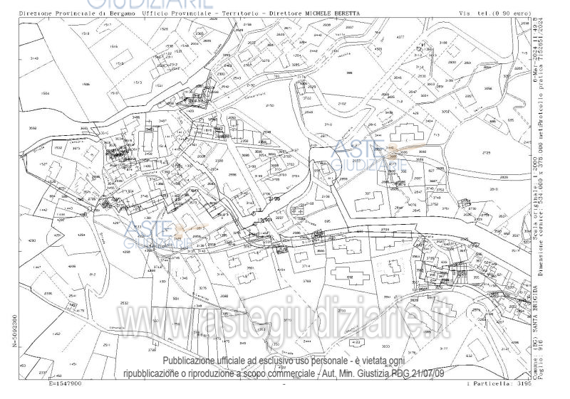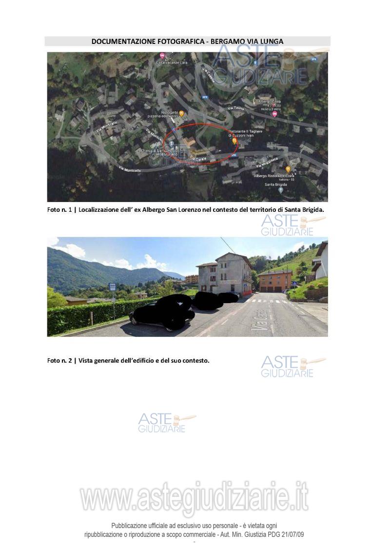 Vendita all'asta Senza incanto, con gara telematica asincrona - LOTTO 2: Intera piena proprietà di fabbricato adibito ad albergo, in disuso, denominato “Albergo San Lorenzo” di circa mq. 1.073,00 posto su cinque piani, di cui uno seminterrato, sito in SANTA BRIGIDA (BG) Via Carale 1 e terreni adiacenti per circa mq. 2658. Prezzo base € 19.965,24 (offerta minima € 14.973,93). Data inizio operazioni di vendita: 11/03/2026 ore 17:30. Professionista delegato alla vendita Dott. Paola Orlandini - Email "paola.orlandini@studio-orlandini.eu"; Tel. 035211531. Custode Giudiziario Dott. Paola Orlandini - Email "paola.orlandini@studio-orlandini.eu"; Tel. 035211531. Rif. Tribunale di Bergamo - Espropriazione immobiliare (cartabia) n. 500/2023