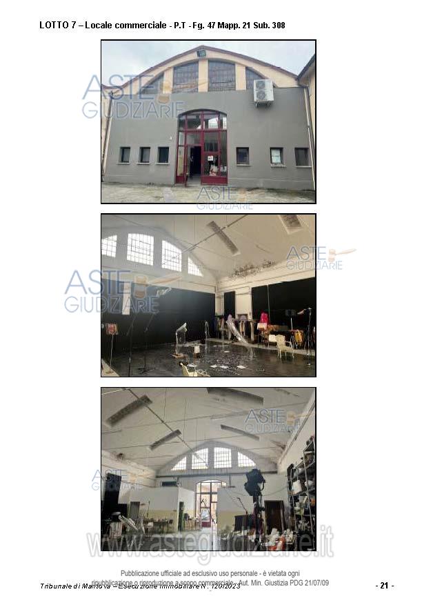 Vendita all'asta Senza incanto, con gara telematica sincrona mista - LOTTO 7: proprietà di locale commerciale utilizzato per il solo uso di "associazione culturale teatrale", compresa la proporzionale quota sulla parti comuni. Prezzo base € 51.000,00 (offerta minima € 38.250,00). Data vendita 28/01/2026 ore 15:30. Giudice Francesca Arrigoni. Professionista delegato alla vendita Not. Daniela Santa Dezio - Email "ddezio@notariato.it". Custode Giudiziario Sovemo Srl Istituto Vendite Giudiziarie Di Mantova - Email "immobiliaremantova@sovemo.com"; Tel. 0376220694. Rif. Tribunale di Mantova - Espropriazione immobiliare (cartabia) n. 120/2023