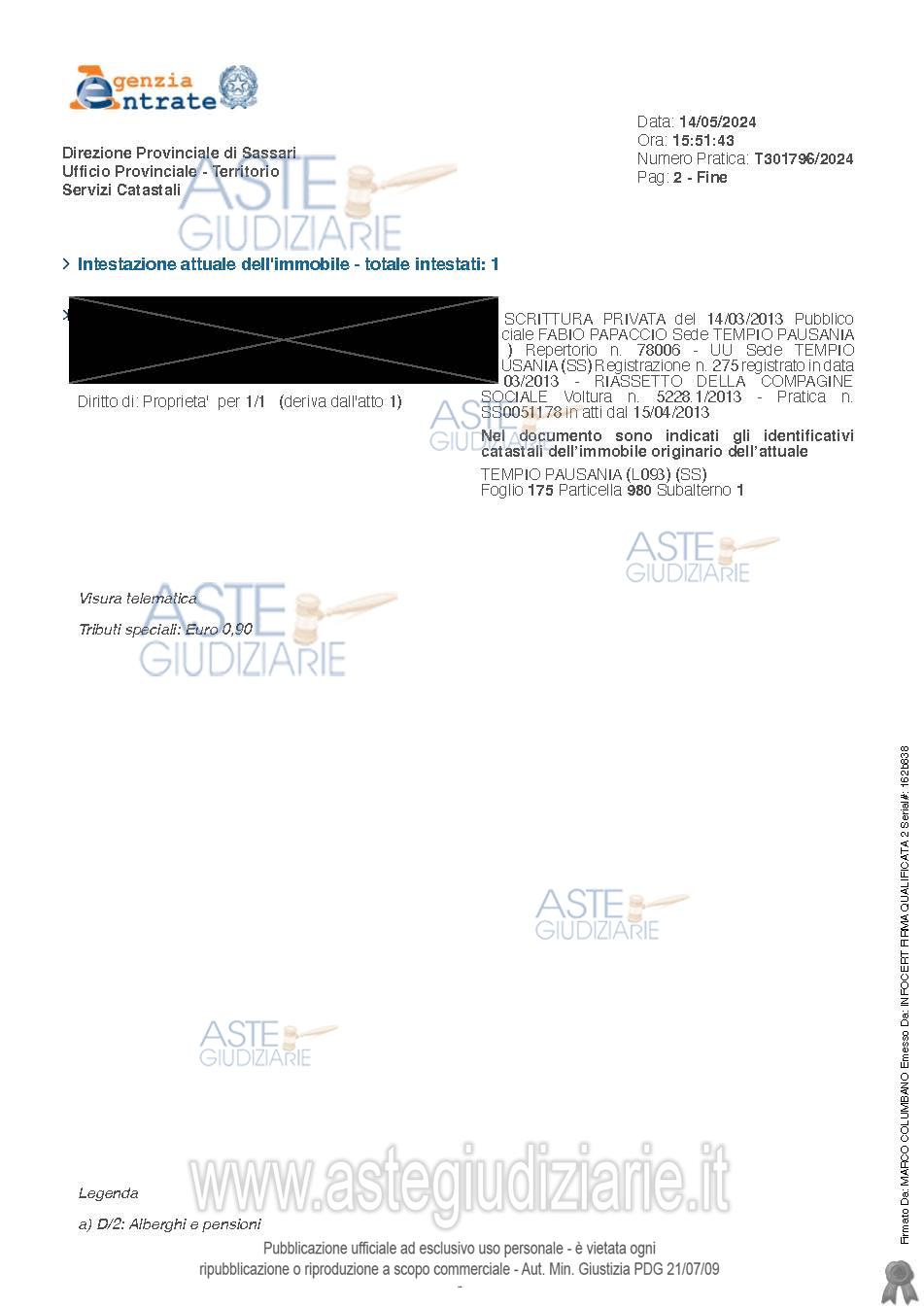 Vendita all'asta Senza incanto, con gara telematica asincrona - LOTTO UNICO: Fabbricato destinato ad uso ricettivo alberghiero sito nel Comune di Tempio Pausania (SS), Largo Alcide De Gasperi n. 9-11, della superficie utile/calpestabile di 4.434 mq e superficie coperta complessiva di 3.814 mq. Il fabbricato si dispone su sei livelli: piani interrato, seminterrato, terra, primo, secondo, terzo e quarto. Prezzo base € 1.295.360,00 (offerta minima € 971.520,00). Data inizio operazioni di vendita: 16/06/2026 ore 16:00. Giudice Dott. Antonia Palombella. Professionista delegato alla vendita Dott. Paolo Sotgiu - Email "paolo.sotgiu@studiosotgiu.com"; Tel. 0792151063. Custode Giudiziario Ivg Tempio Pausania - Email "visite.ivgtempio@gmail.com"; Tel. 079630505. Rif. Tribunale di Tempio Pausania - Esecuzione immobiliare post legge 80 n. 156/2021