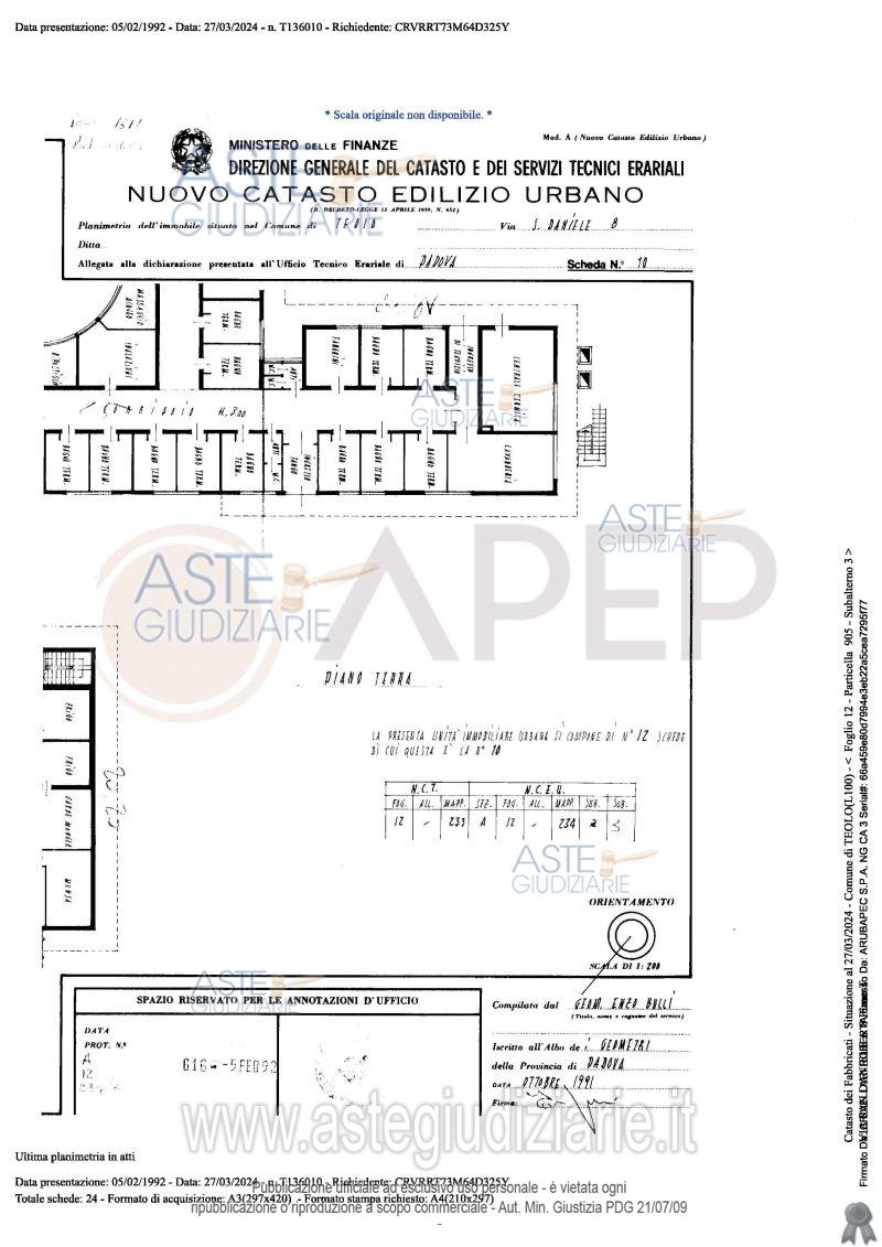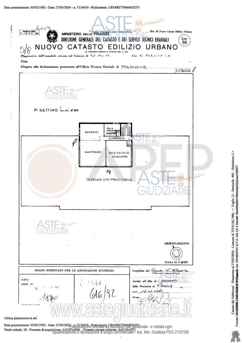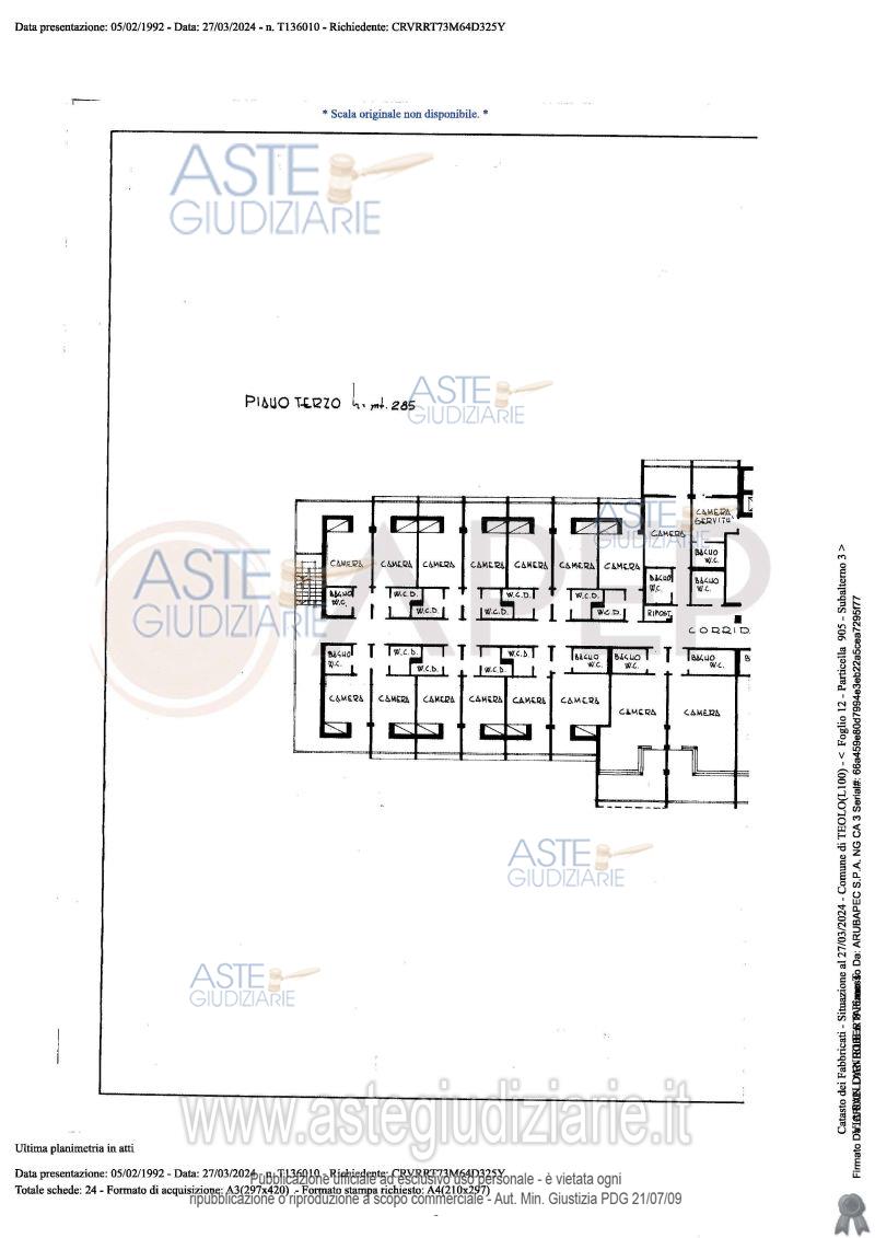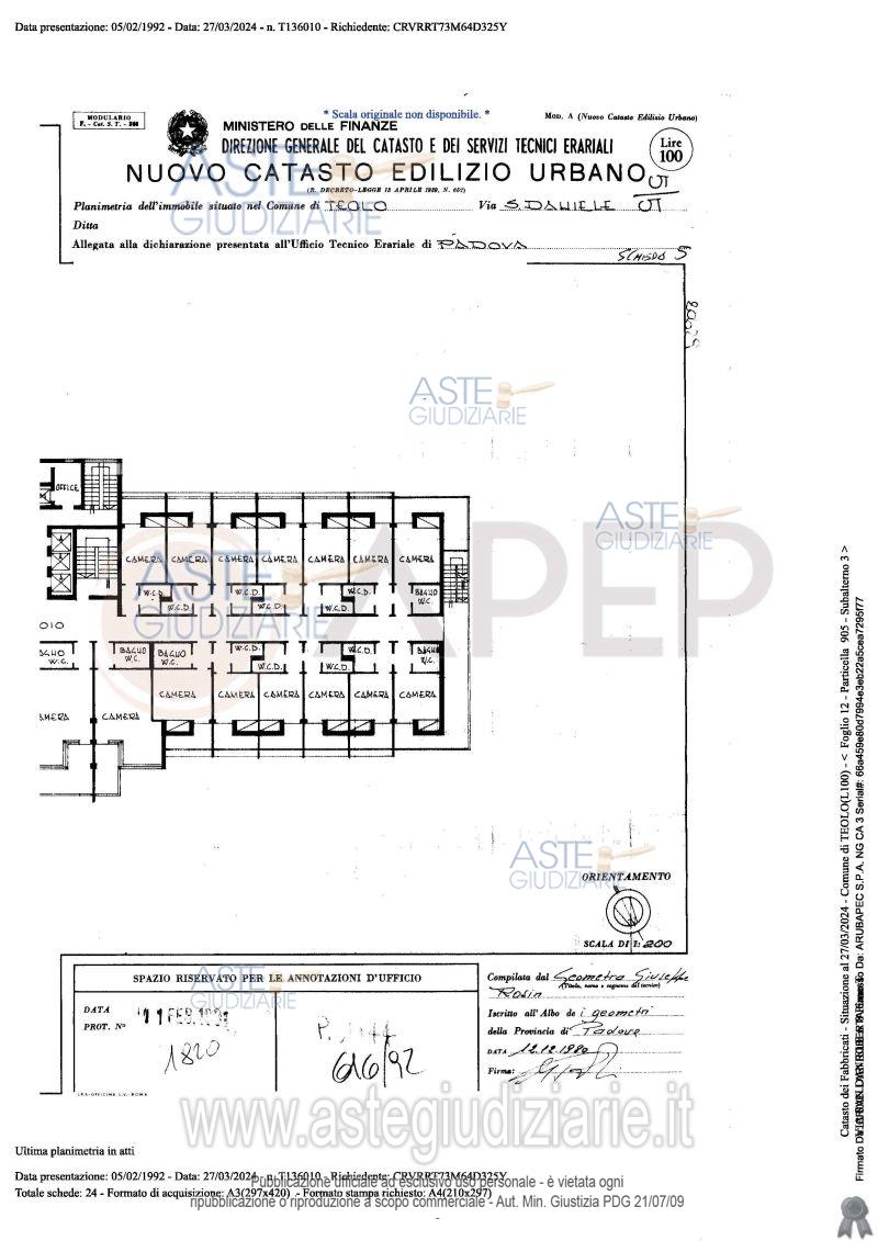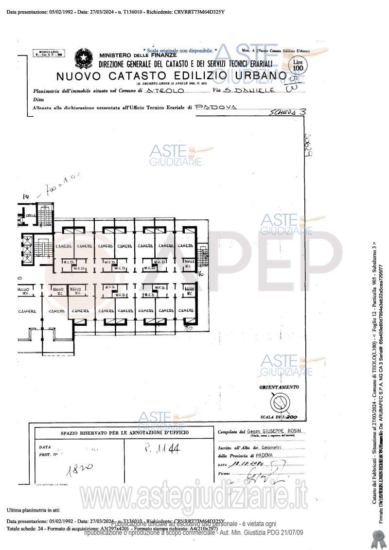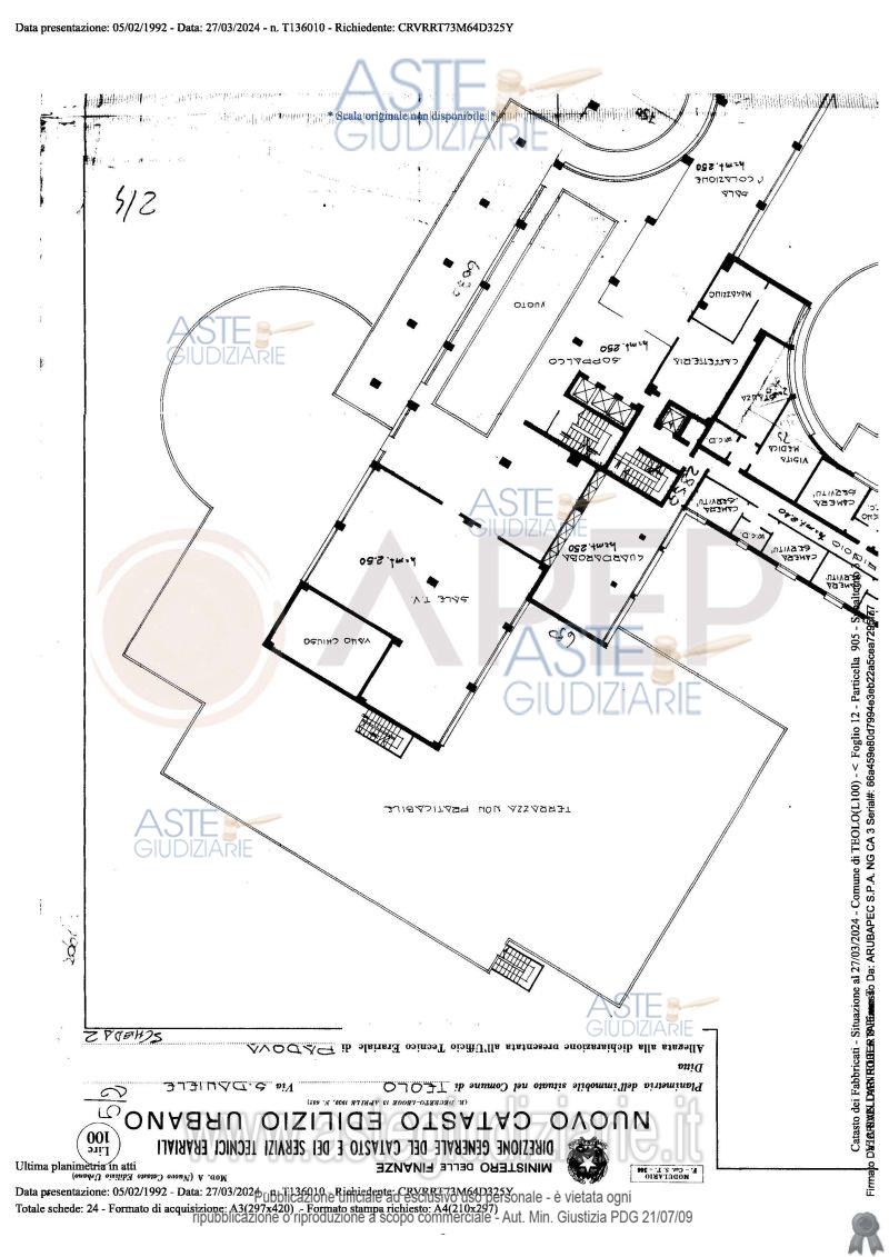 Vendita all'asta Senza incanto, con gara telematica sincrona - LOTTO UNICO: Lotto Unico - piena proprietà di complesso alberghiero denominato "Hotel Michelangelo", sito in Comune di Teolo (PD), località Monteortone, via San Daniele n. 8; l'albergo, di sette piani fuori terra oltre al piano interrato di mq. 1.559, dispone di circa 120 camere letto per n. 160 posti, ognuna provvista di bagno privato; ad oggi il complesso alberghiero si presenta in totale stato di abbandono, dalla mancanza di cura del verde, agli ambienti interni. Occupato temporaneamente giusta autorizzazione del GE. Prezzo base € 2.487.000,00 (offerta minima € 1.865.250,00). Data vendita 23/04/2026 ore 10:45. Giudice Amenduni. Professionista delegato alla vendita Not. Roberto Serra - Email "aste@apepnotai.it"; Tel. 049651228. Custode Giudiziario Apep - Email "visita@apepnotai.it"; Tel. 049651228. Rif. Tribunale di Padova - Espropriazione immobiliare (cartabia) n. 49/2024