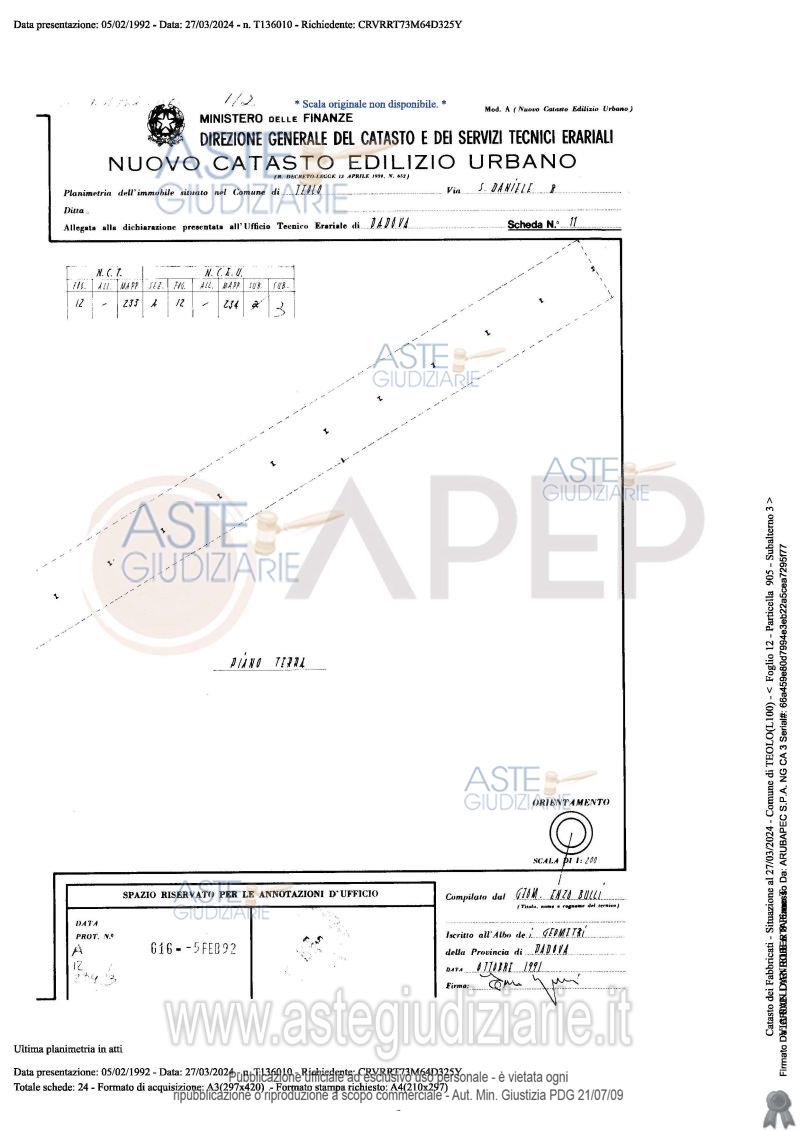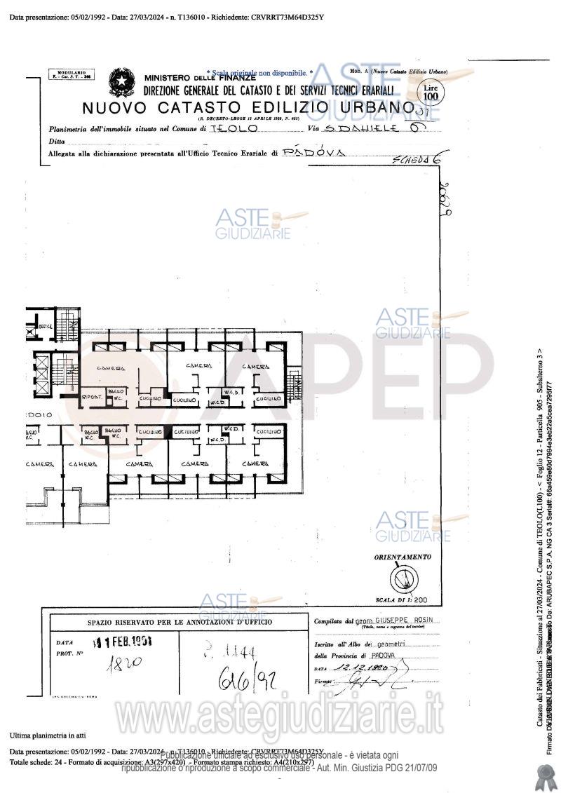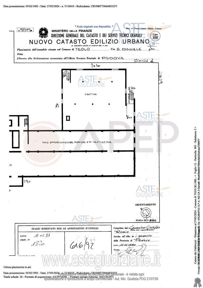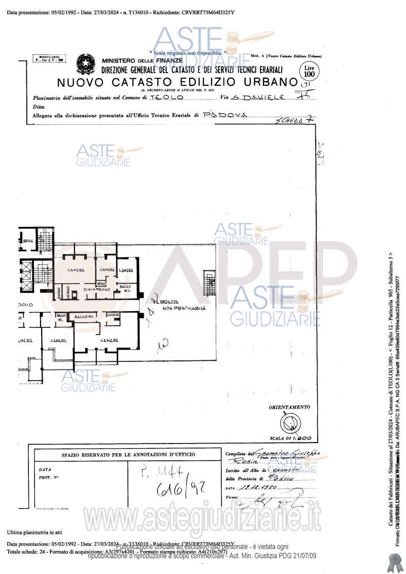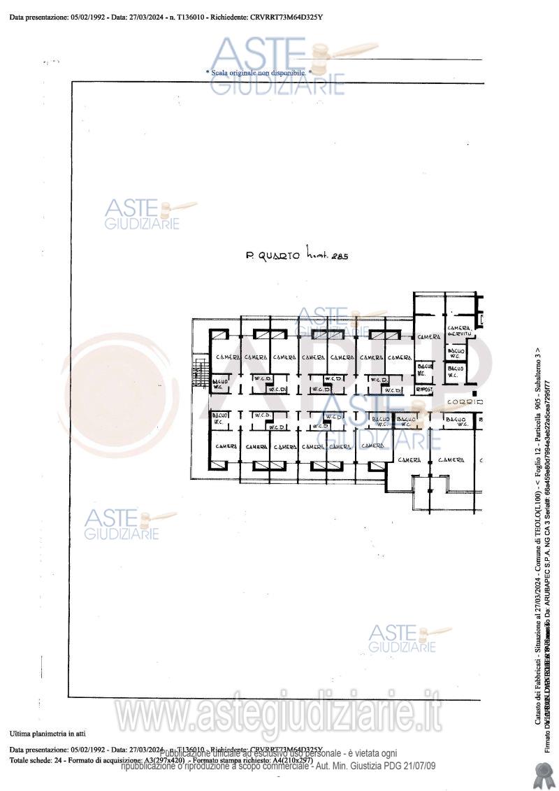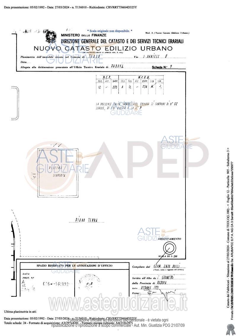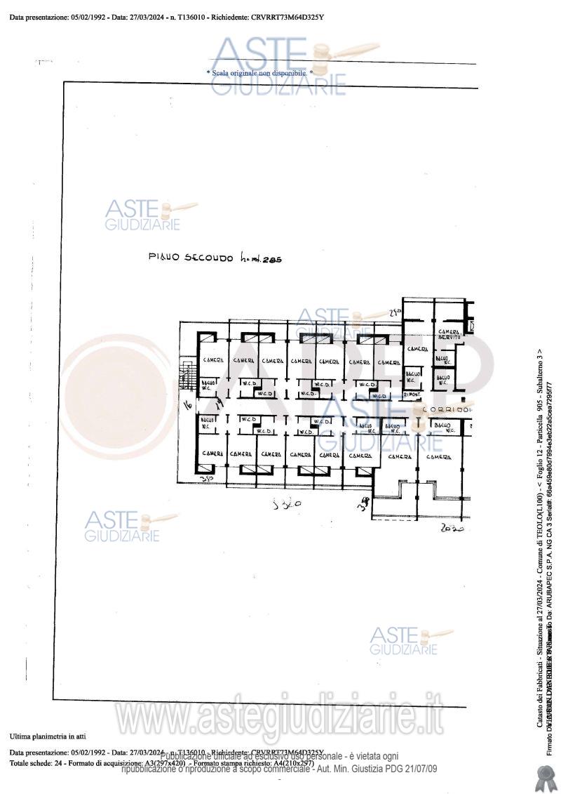 Vendita all'asta Senza incanto, con gara telematica sincrona - LOTTO UNICO: Lotto Unico - piena proprietà di complesso alberghiero denominato "Hotel Michelangelo", sito in Comune di Teolo (PD), località Monteortone, via San Daniele n. 8; l'albergo, di sette piani fuori terra oltre al piano interrato di mq. 1.559, dispone di circa 120 camere letto per n. 160 posti, ognuna provvista di bagno privato; ad oggi il complesso alberghiero si presenta in totale stato di abbandono, dalla mancanza di cura del verde, agli ambienti interni. Occupato temporaneamente giusta autorizzazione del GE. Prezzo base € 2.487.000,00 (offerta minima € 1.865.250,00). Data vendita 23/04/2026 ore 10:45. Giudice Amenduni. Professionista delegato alla vendita Not. Roberto Serra - Email "aste@apepnotai.it"; Tel. 049651228. Custode Giudiziario Apep - Email "visita@apepnotai.it"; Tel. 049651228. Rif. Tribunale di Padova - Espropriazione immobiliare (cartabia) n. 49/2024