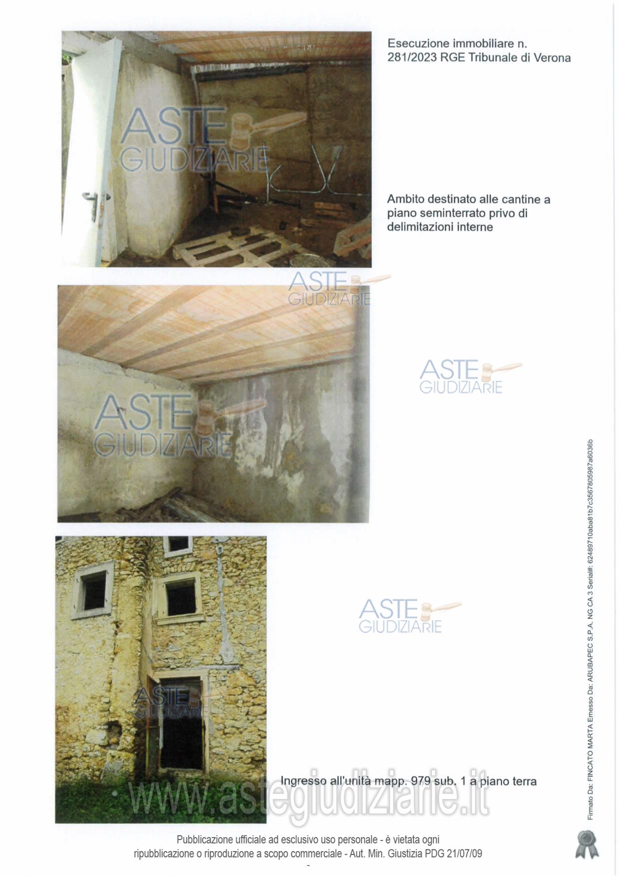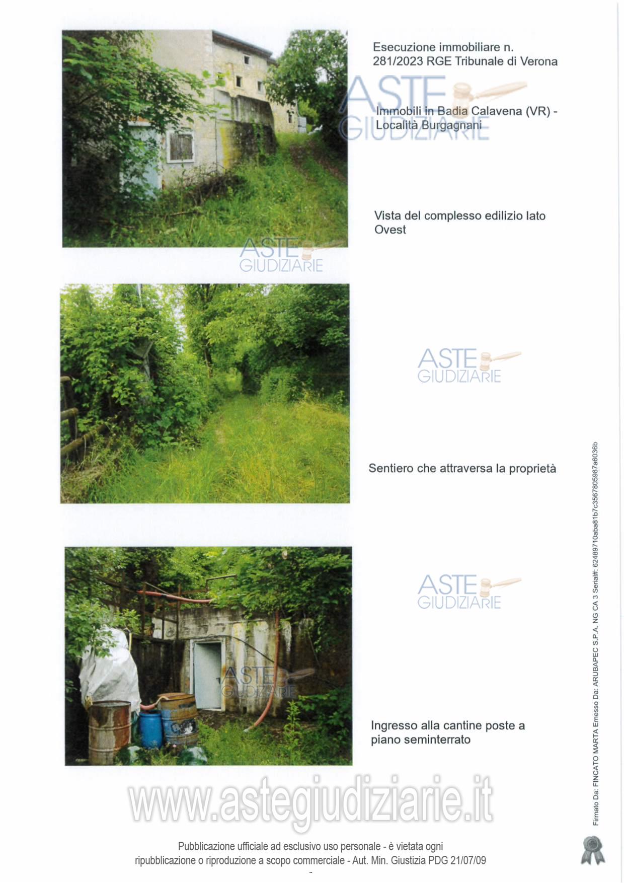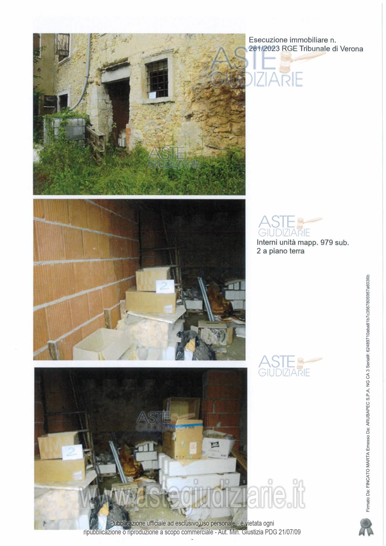 Vendita all'asta Senza incanto, con gara telematica sincrona mista - LOTTO UNICO: Piena proprietà di unità immobiliari ai piani terra, primo e secondo facenti parte di un compendio immobiliare in corso di costruzione, e dei terreni adiacenti. Prezzo base € 20.000,00 (offerta minima € 15.000,00). Data vendita 20/01/2026 ore 12:30. Giudice Dott. Francesco Fontana. Professionista delegato alla vendita Not. Maria Maddalena Buoninconti - Email "marta@notaiobuoninconti.it"; Tel. 0458003658. Custode Giudiziario Avv. Anna Bimbatti - Email "avvannabimbatti@gmail.com"; Tel. 0455709996. Rif. Tribunale di Verona - Espropriazione immobiliare (cartabia) n. 281/2023