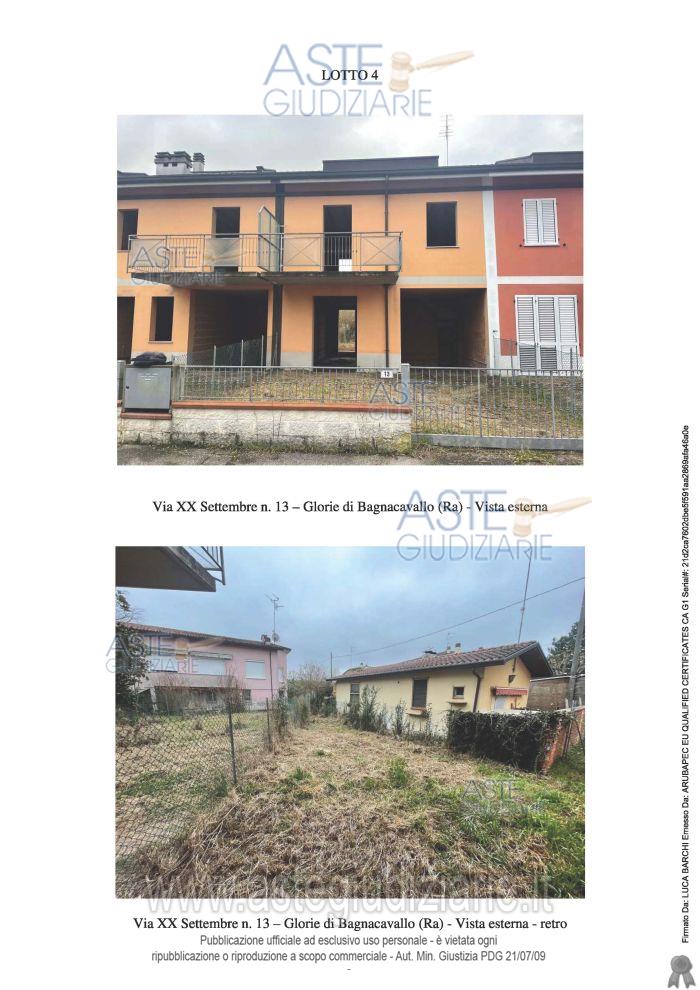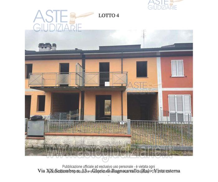 Vendita all'asta Senza incanto, con gara telematica asincrona - LOTTO 4: Piena proprietà di villetta a schiera in corso di costruzione. Il progetto autorizzato prevede al piano terra un garage e la zona giorno composta da pranzo-soggiorn, cucina, bagno, al primo piano due stanze da letto, guardaroba, due balconi e bagno, al piano sottotetto una zona mansardata ed un terrazzo. Libero. Prezzo base € 68.000,00 (offerta minima € 51.000,00). Data inizio operazioni di vendita: 16/12/2025 ore 12:30. Giudice Dott. Paolo Gilotta. Professionista delegato alla vendita Dott. Maria Rosaria Monticelli Cuggiò - Email "astenotai@associazionenotai.it"; Tel. 0544212977. Custode Giudiziario Dott. Maria Rosaria Monticelli Cuggiò - Email "astenotai@associazionenotai.it"; Tel. 0544212977. Rif. Tribunale di Ravenna - Esecuzione immobiliare post legge 80 n. 111/2024