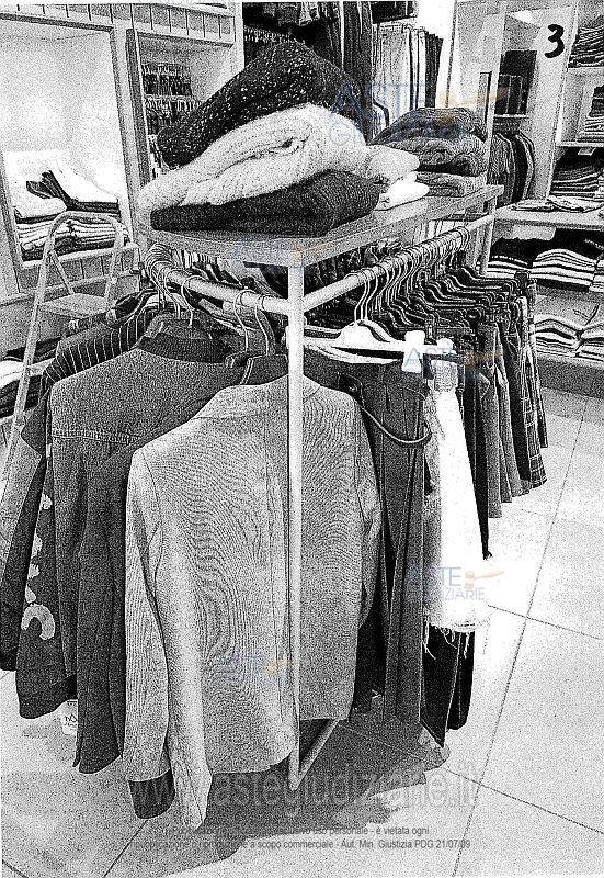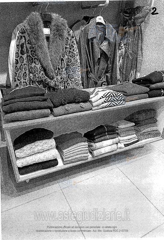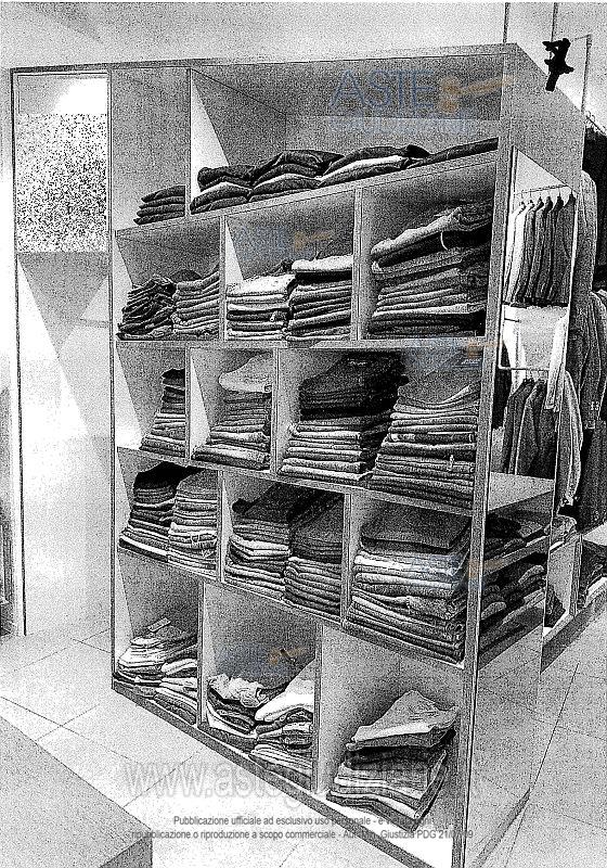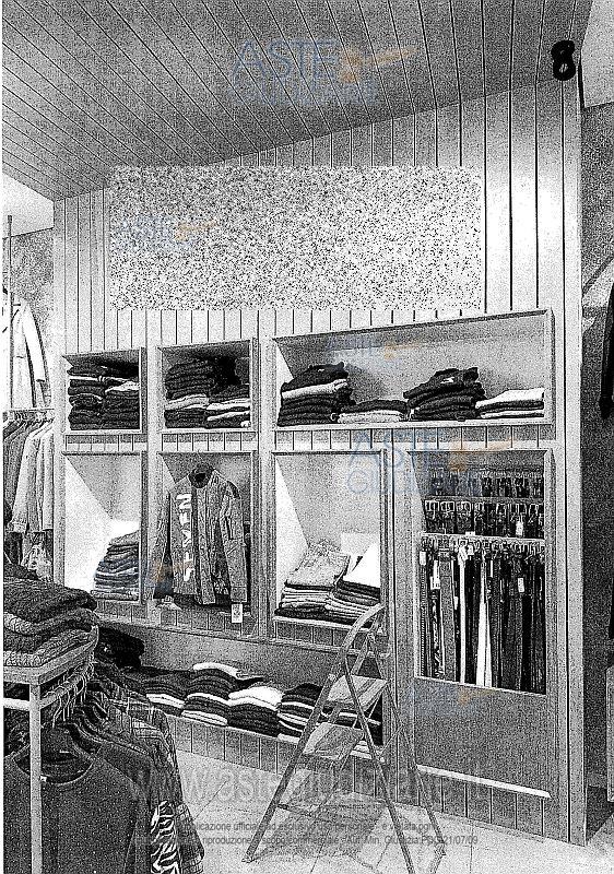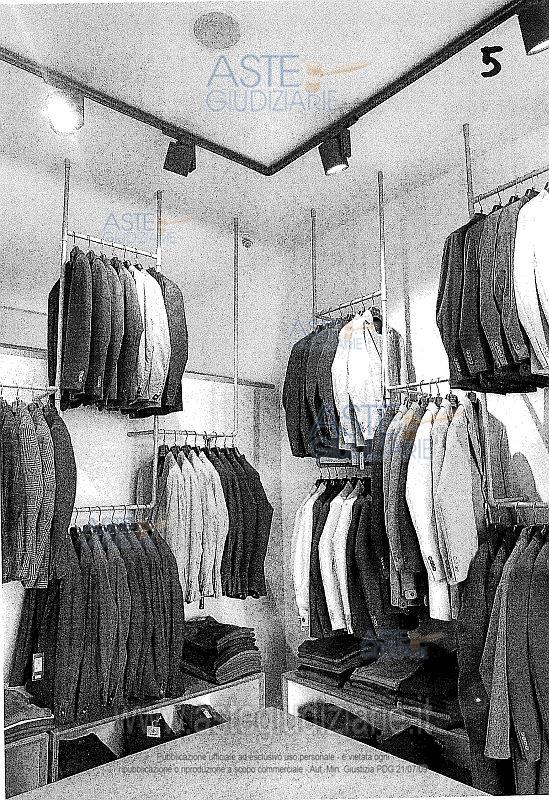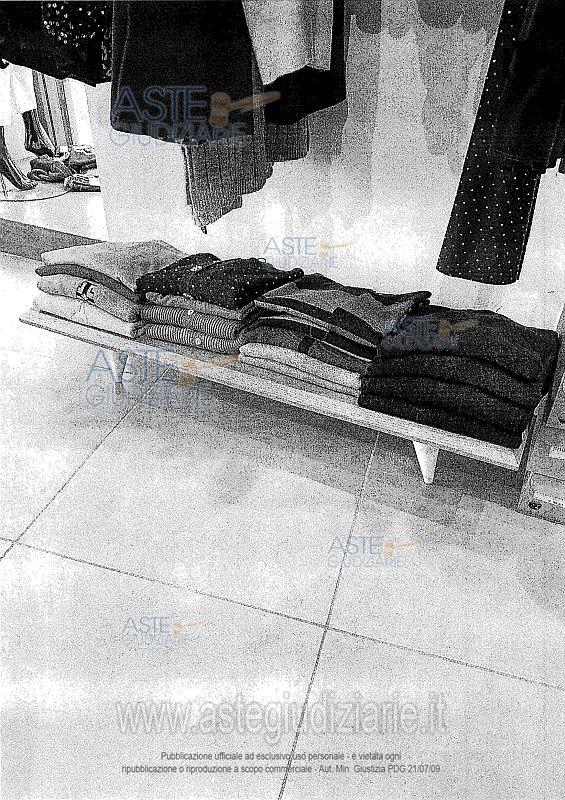 Vendita in attesa dell'emissione del nuovo bando d'asta. LOTTO 5: LOTTO N. 5 (a blocco): arredi da negozio, stigliature, scaffalature, appendiabiti di varia tipologia, elementi d’illuminazione presenti nei locali a piano terra siti in Altamura, costituiti da: n. 4 tavoli da vendita di forma rettagolare in legno color noce chiaro con scomparti interni (1 ripiano) e rifinitura interna di colore bianco ; n. 11 mobili espositori in di forma rettagolare in legno color noce chiaro con scomparto interni (1 ripiano) e rifinitura interna di colore bianco, dotati di piedi di colore bianco; n. 4 strutture da esposizione per abiti in ferro colore grigio e legno a forma di mezza luna; n. 4 stigliature da esposizione da muro in acciaio e legno con 3/4 ripiani ciascuna; n. 5 stigliature da muro per abiti in ferro componibili di diverso formato; n.1 banco in legno dogato color noce chiaro con cassetti e scomparti vari; n. 1 armadio espositore di forma trapezoidale in legno color noce chiaro, munito di vani rivestiti internamente in colore bianco dotato di quattro ripiani, specchio sul laterale esterno sormontato lateralmente dalla insegna “Fitting Room”; n. 1 armadio espositore in legno color noce chiaro, munito di vani rivestiti internamente in colore bianco dotato di diversi vani espositori e vano portacinture; n. 41 faretti orientabili di colore nero montati su binari fissati a soffitto; n. 5 faretti fissi di colore nero montati a soffitto; n. 3 faretti fissi di colore nero di forma allungata montati a soffitto; n. 2 vasi in resina con piante finte; n. 2 stigliature in acciaio e legno a 6 ripiani ( mensole) della dimensione di c.a. h. m. 3,00 x lunghezza m. 2,50 x profondità cm. 50; n. 1 stigliature in ferro ed acciaio a muro per appendere abiti della dimensione di c.a. altezza m. 4,00 x lunghezza m. 5,50, x profondità cm. 50; n. 1 specchio; n. 1 stigliatura appendiabili su ruote; n. 2 mobili espositori bassi in legno color noce chiaro e piedi bianchi. Ultimo prezzo base € 1.486,01 (offerta minima € 1.114,50). Giudice Dott. Maria Azzurra Guerra. Curatore Avv. Andrea Pagliani - Email "studleg.pagliani@libero.it". Rif. Tribunale di Trani - Liquidazione giudiziale(cci) n. 39/2024