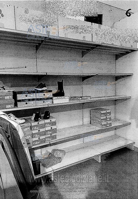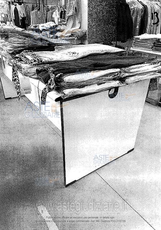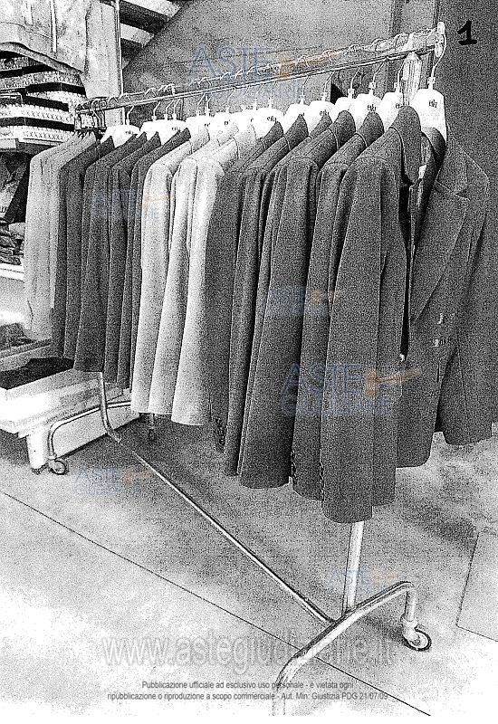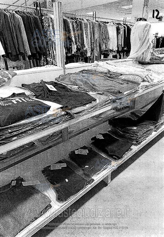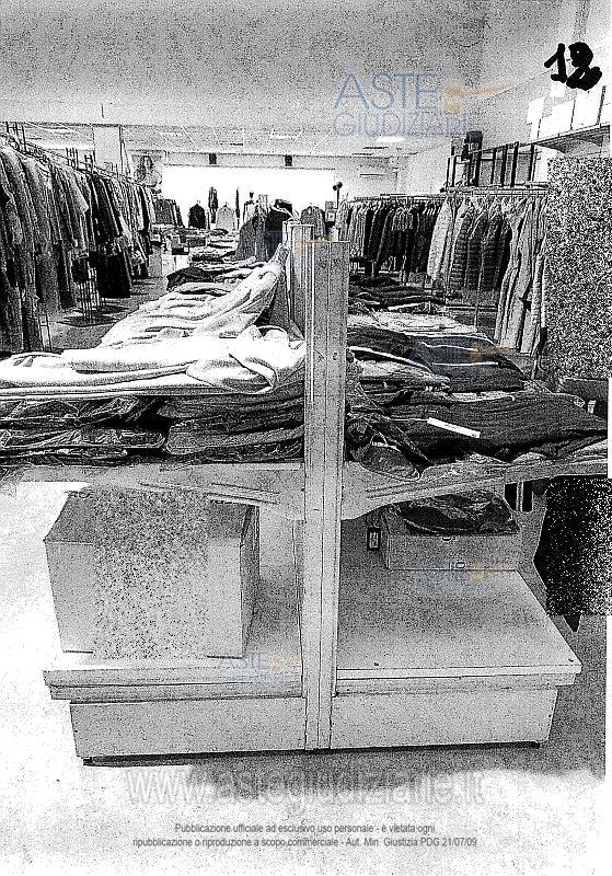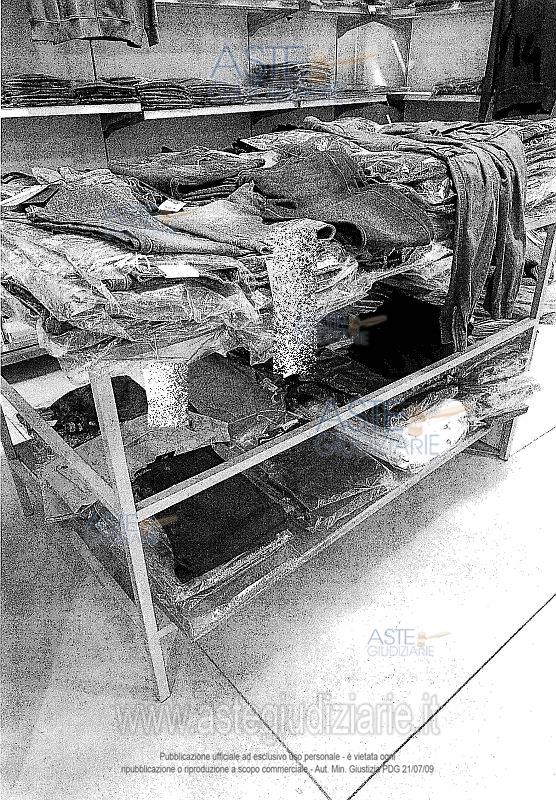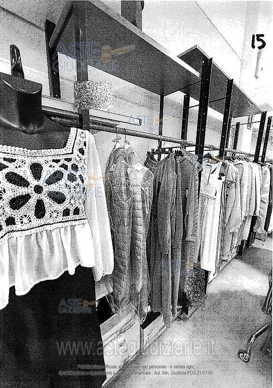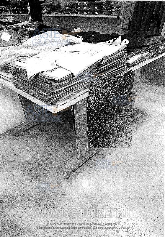 Vendita all'asta Senza incanto, con gara telematica asincrona - LOTTO 6: LOTTO N. 6 (a blocco): arredi da negozio, stigliature, scaffalature, appendiabiti di varia tipologia, elementi d’illuminazione presenti nei locali a piano terra siti in Chieti nel complesso edilizio ove trovasi in centro commerciale Dama, costituiti da: n. 38 stands appendiabiti estensibili in acciaio dotati di n. 4 ruote; n. 1 struttura appendiabiti con sostegni in ferro nero lunga m. 17 circa; n. 1 struttura appendiabiti in ferro grigio con n. 3 sostegni verticali e basi rettangolari; n.3 elementi appendiabiti multibraccio in ferro con elemento centrale in legno quadrato colo noce; n. 7 scansie modulari in metallo in ferro di colore grigio a tre ripiani, composta da n. 7 moduli della dimensione lunghezza m. 1,50 x altezza m. 2x profondità cm. 40;n. 31 elementi componibili costituenti scaffalature in ferro pressopiegato a cinque ripiani, ciascuno della dimensione larghezza 1,20 m. x altezza m. 3 x profondità 40 cm. circa; n. 22 cestelli in ferro color bianco / burro della dimensione lunghezza 95 cm. x profondità 60 cm.; n. 2 cestelli in ferro su n. 4 ruote, dette stesse dimensioni dei precedenti; n. 5 elementi componibili costituenti scaffalature a n.2 ripiani in ferro pressopiegato dimensioni larghezza 1,20 m. x altezza 2 m. x profondità 50 cm. circa; n. 4 elementi componibili costituenti scaffalatura a n.4 ripiani in ferro pressopiegato ciascuno delle dimensioni larghezza 1 m. x altezza 2 m. x profondità50 cm. circa; n. 4 cestelli in ferro nero su n. 4 ruote; n. 10 doppi scaffali bassi in ferro pressopiegato a n,.2 ripiani di colore chiaro, dimensioni larghezza 2m. x altezza 70 cm. x profondità 80 cm. circa; n. 6 tavoli rettangolari in legno bianco dimensioni larghezza 2 m. x altezza 70 cm x profondità 80 cm.; n. 1 tavolo acciaio e legno; n. 1 scansia da muro a due ripiani in farro nero e legno color noce dimensioni lunghezza m. 3,40 x altezza m. 2,30 circa; n. 9 stands in acciaio da muro modulari, ciascuno della dimensione larghezza 85 cm. x altezza 2,50 m. circa; n. 2 stands da muro modulari in ferro delle dimensioni ciascuno altezza 2,30 m. x larghezza 1m. x profondità 30 cm circa a n.4 ripiani; n. 9 lampade da illuminazione a sospensione a soffitto di tipo industriale; n. 4 faretti da vetrina di forma rettangolare; n. 1 bancone da vendita in legno color burro con angolo dotato di cassettiera dimensioni lunghezza 3,30 m. x altezza 68 cm. per profondità 60 cm. circa; scrivania in legno bianco dotata di cassettiera con n. 4 cassetti e sovrascrivania con vani tecnici ad uso ufficio. Prezzo base € 421,71 (offerta minima € 316,29). Data inizio operazioni di vendita: 23/04/2026 ore 12:00. In caso di più offerte valide si procederà a gara che terminerà il 30/04/2026 ore 12:00. Giudice Dott. Maria Azzurra Guerra. Curatore Avv. Andrea Pagliani - Email "studleg.pagliani@libero.it". Rif. Tribunale di Trani - Liquidazione giudiziale(cci) n. 39/2024