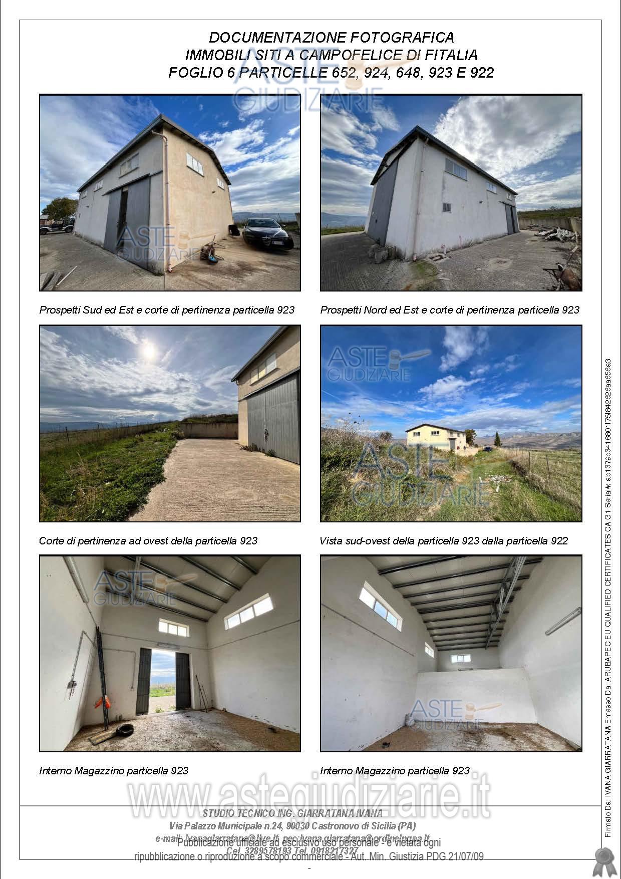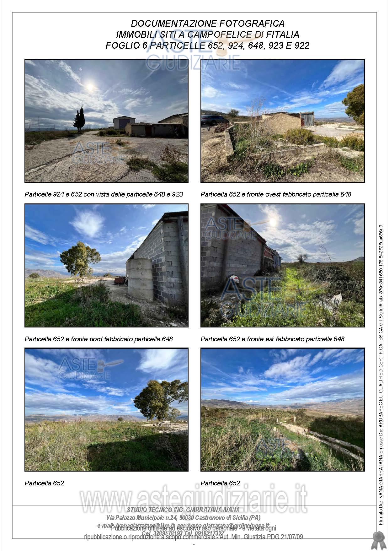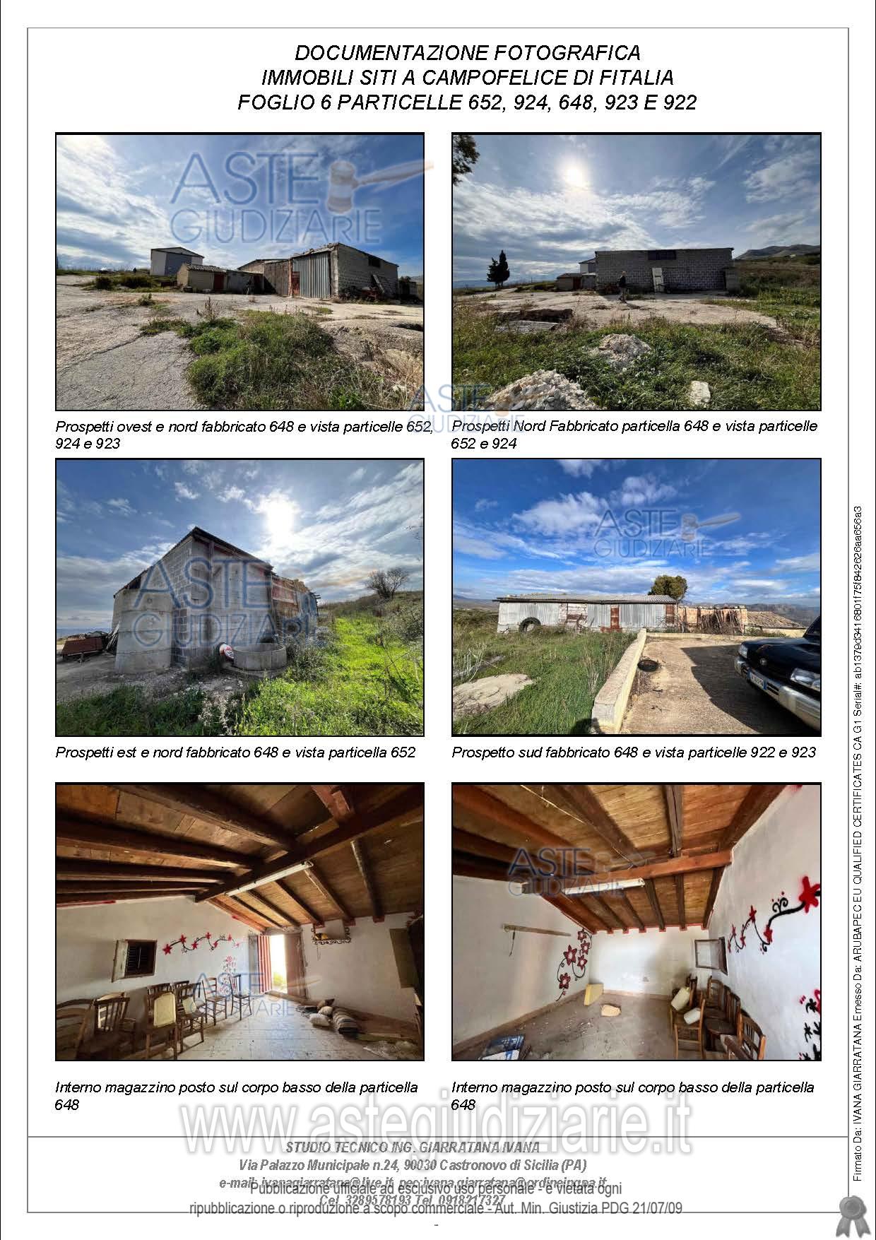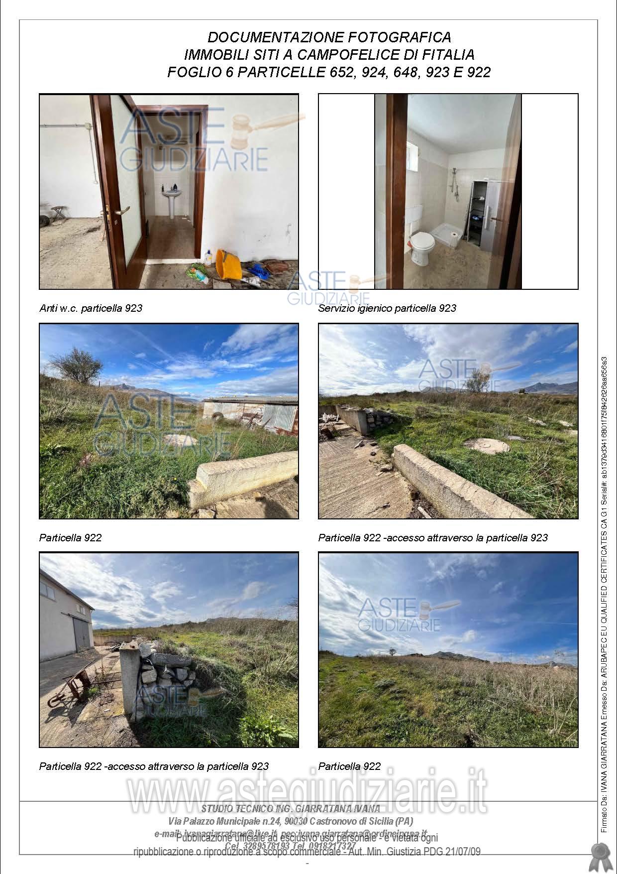 Vendita all'asta Senza incanto, con gara telematica sincrona - LOTTO UNICO: Compendio pignorato ubicato a Campofelice di Fitalia (PA) - Contrada Cicirimigna s.n.c.,identificato: al catasto Fabbricati al Foglio 6, Part. 923, Categoria D10 e al Foglio 6, Part. 648,Categoria C2; al catasto Terreni - Fg. 6, Part. 652, Qualit. Seminativo, Fg. 6, Part. 922, Qualit.Seminativo, Fg. 6, Part. 924, Qualit. Seminativo, Fg. 6, Part. 648, Qualit. ENTE URBANO, Fg. 6,Part. 923, Qualit. ENTE URBANO. Superficie 4969,73 mq. Prezzo base € 10.040,00 (offerta minima € 7.530,00). Data vendita 20/04/2026 ore 16:00. Professionista delegato alla vendita Avv. Di Salvo - Email "antonino.disalvo@hotmail.com". Custode Giudiziario Avv. Di Salvo - Email "antonino.disalvo@hotmail.com". Rif. Tribunale di Termini Imerese - Espropriazione immobiliare (cartabia) n. 109/2024