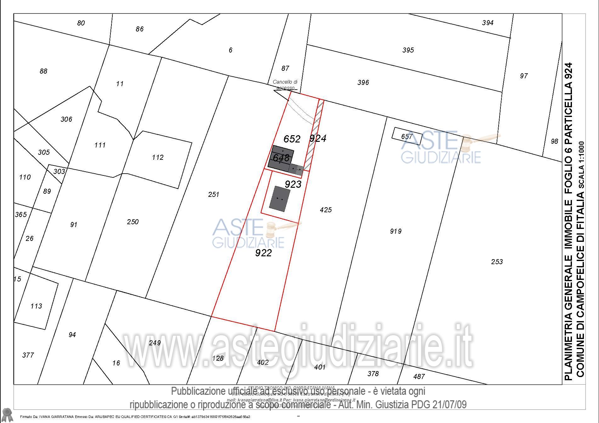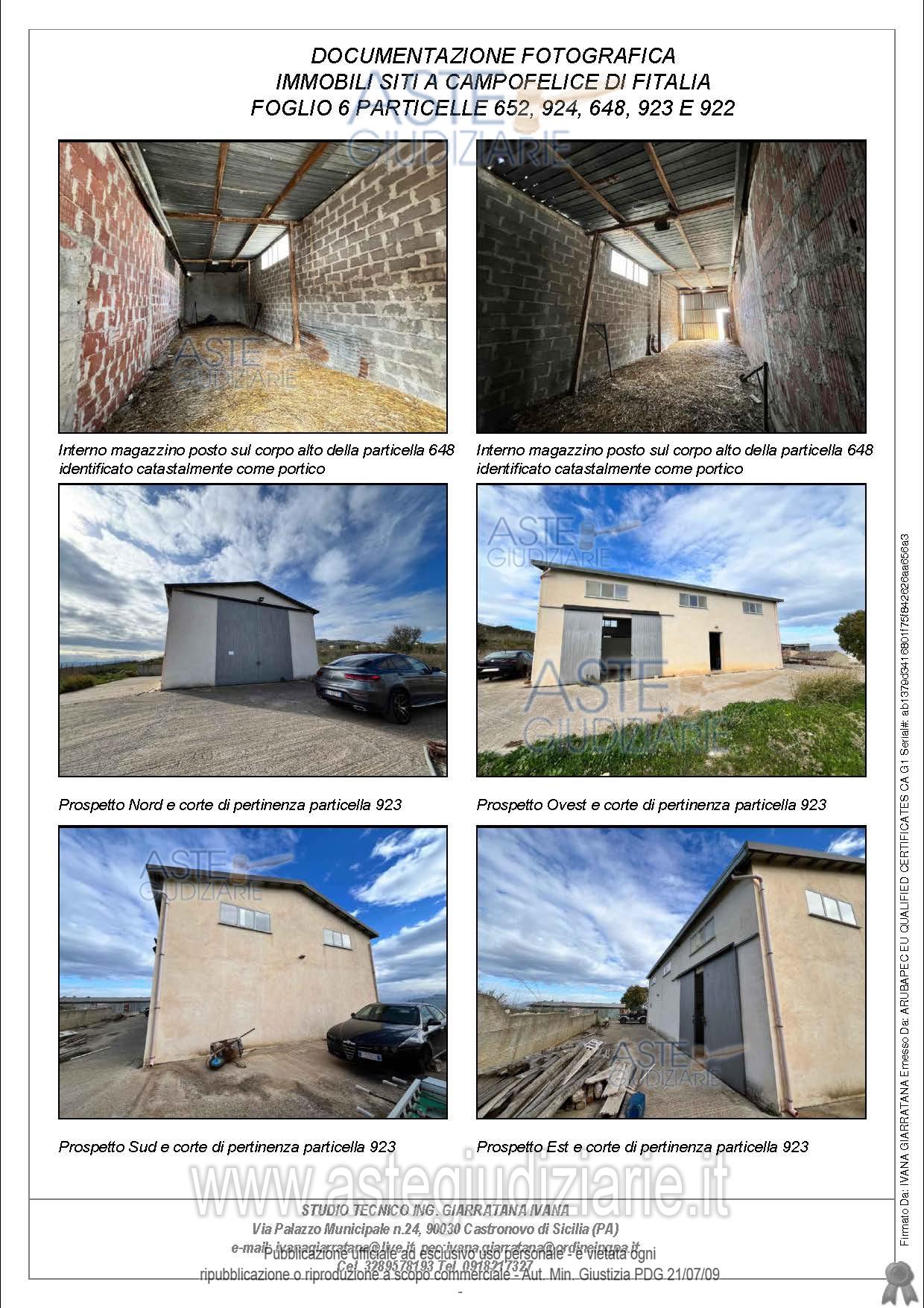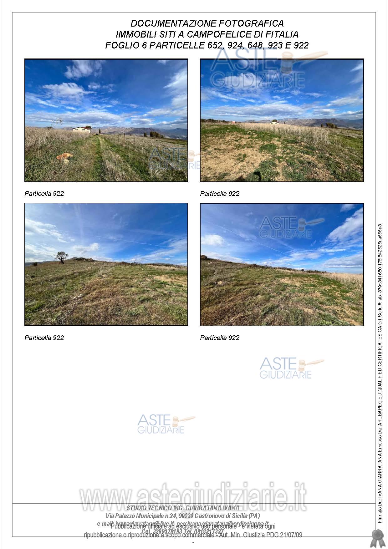 Vendita all'asta Senza incanto, con gara telematica sincrona - LOTTO UNICO: Compendio pignorato ubicato a Campofelice di Fitalia (PA) - Contrada Cicirimigna s.n.c.,identificato: al catasto Fabbricati al Foglio 6, Part. 923, Categoria D10 e al Foglio 6, Part. 648,Categoria C2; al catasto Terreni - Fg. 6, Part. 652, Qualit. Seminativo, Fg. 6, Part. 922, Qualit.Seminativo, Fg. 6, Part. 924, Qualit. Seminativo, Fg. 6, Part. 648, Qualit. ENTE URBANO, Fg. 6,Part. 923, Qualit. ENTE URBANO. Superficie 4969,73 mq. Prezzo base € 10.040,00 (offerta minima € 7.530,00). Data vendita 20/04/2026 ore 16:00. Professionista delegato alla vendita Avv. Di Salvo - Email "antonino.disalvo@hotmail.com". Custode Giudiziario Avv. Di Salvo - Email "antonino.disalvo@hotmail.com". Rif. Tribunale di Termini Imerese - Espropriazione immobiliare (cartabia) n. 109/2024