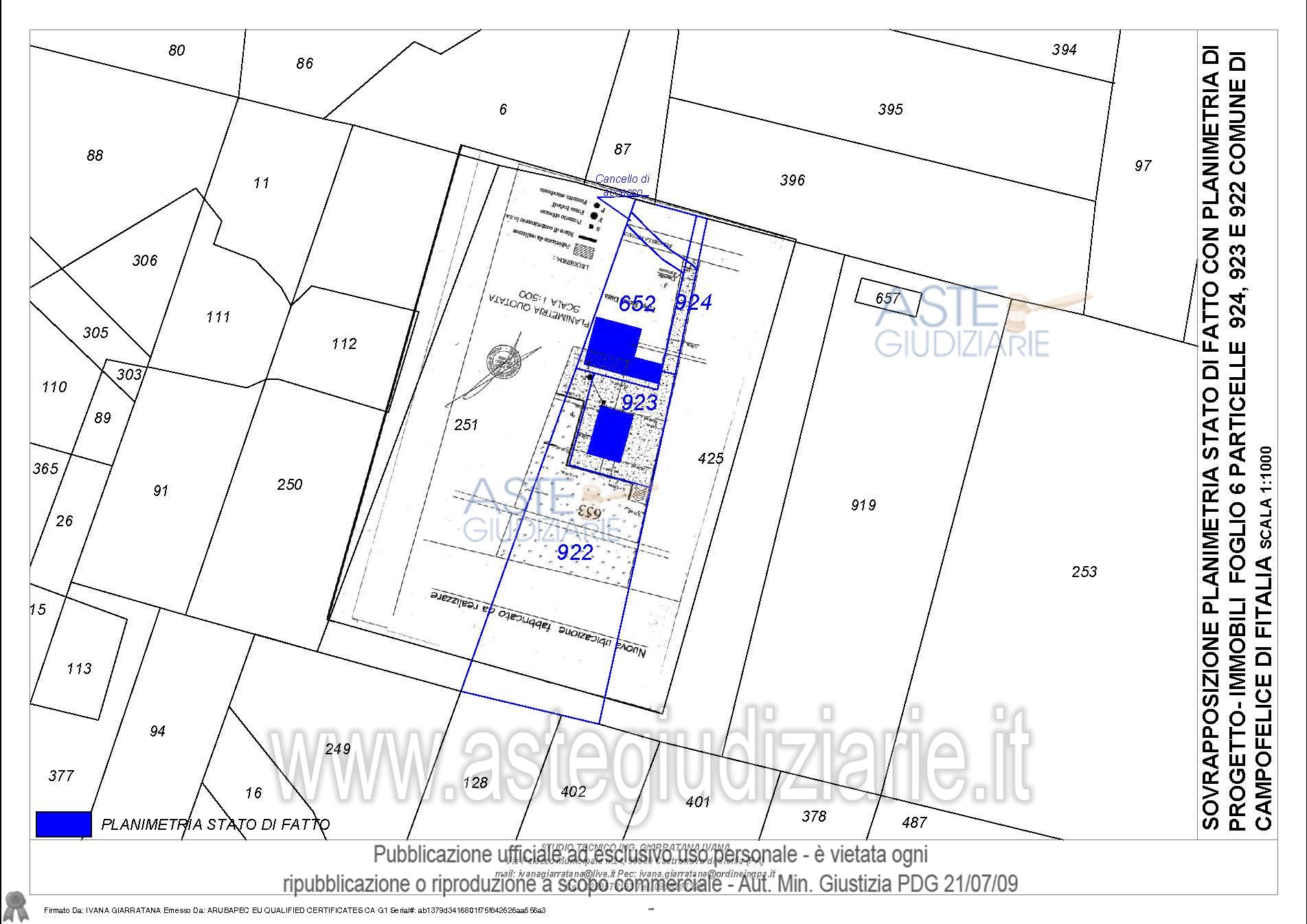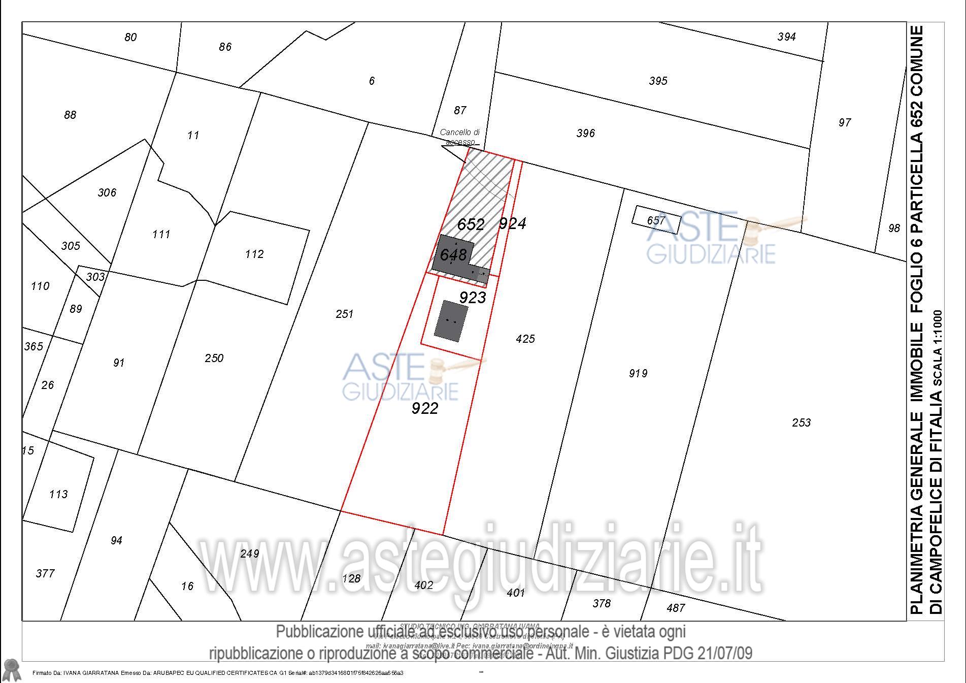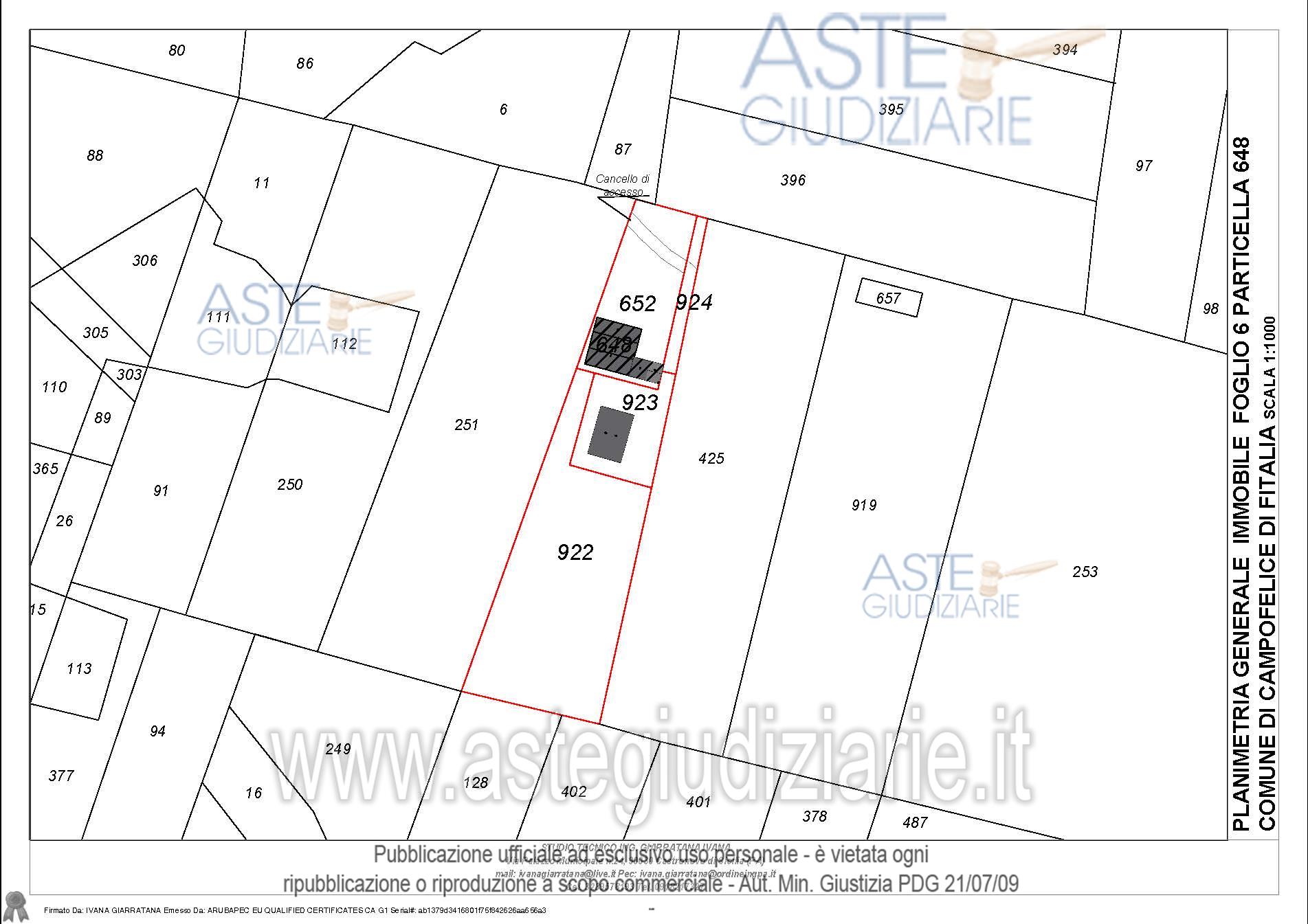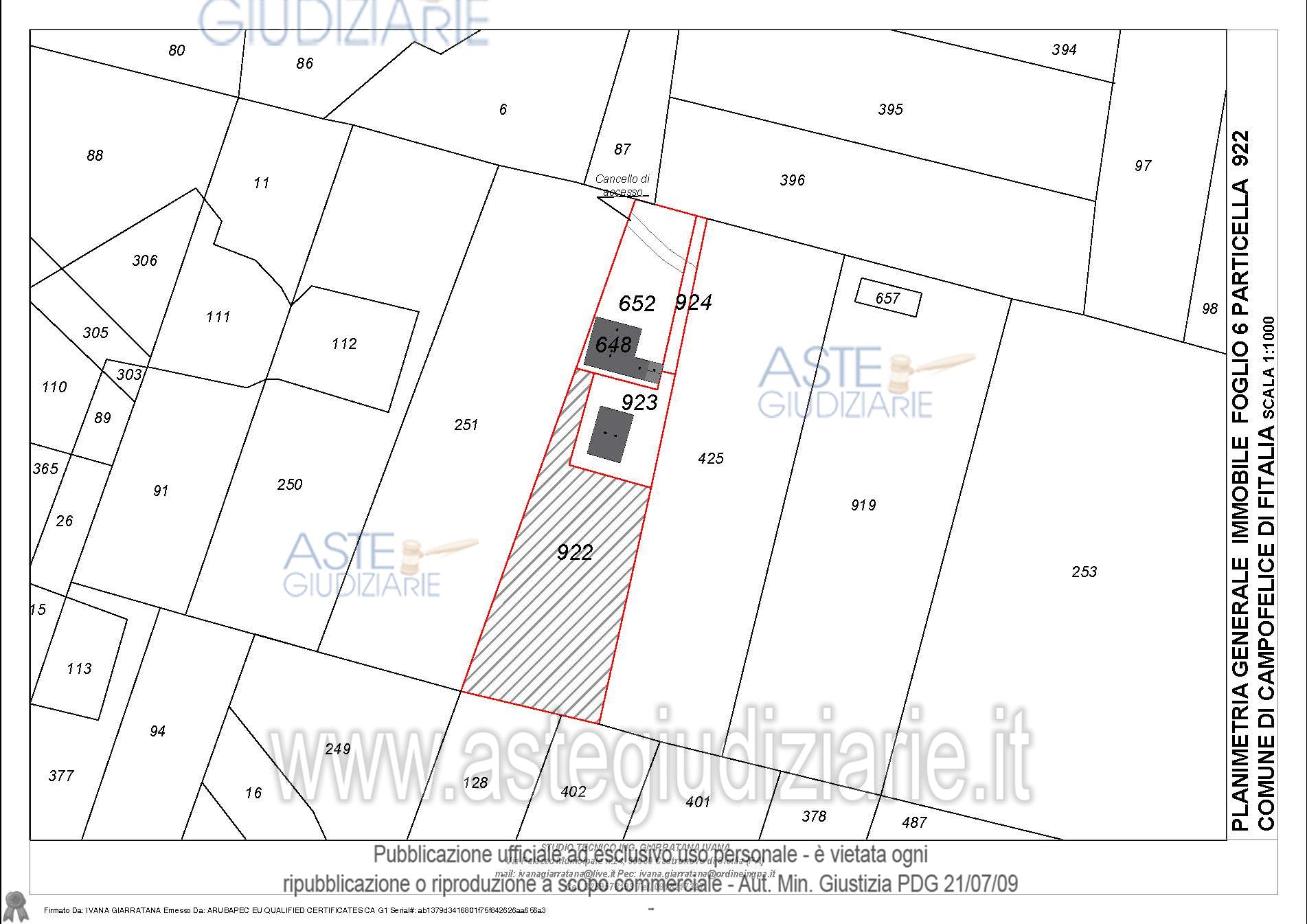 Vendita all'asta Senza incanto, con gara telematica sincrona - LOTTO UNICO: Compendio pignorato ubicato a Campofelice di Fitalia (PA) - Contrada Cicirimigna s.n.c.,identificato: al catasto Fabbricati al Foglio 6, Part. 923, Categoria D10 e al Foglio 6, Part. 648,Categoria C2; al catasto Terreni - Fg. 6, Part. 652, Qualit. Seminativo, Fg. 6, Part. 922, Qualit.Seminativo, Fg. 6, Part. 924, Qualit. Seminativo, Fg. 6, Part. 648, Qualit. ENTE URBANO, Fg. 6,Part. 923, Qualit. ENTE URBANO. Superficie 4969,73 mq. Prezzo base € 10.040,00 (offerta minima € 7.530,00). Data vendita 20/04/2026 ore 16:00. Professionista delegato alla vendita Avv. Di Salvo - Email "antonino.disalvo@hotmail.com". Custode Giudiziario Avv. Di Salvo - Email "antonino.disalvo@hotmail.com". Rif. Tribunale di Termini Imerese - Espropriazione immobiliare (cartabia) n. 109/2024