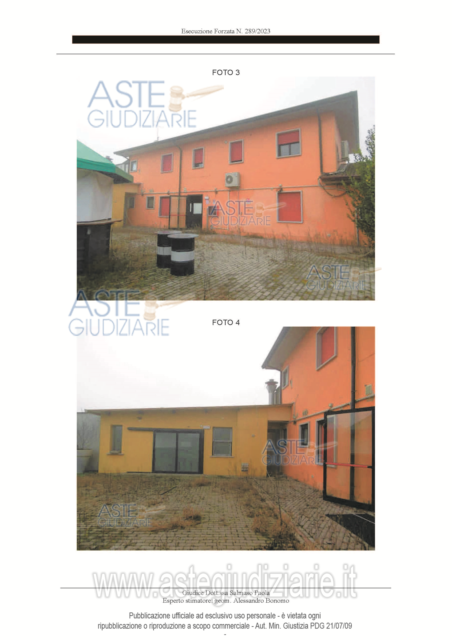 Vendita all'asta Senza incanto, con gara telematica sincrona mista - LOTTO UNICO: Casaleone (VR), Via Facciabella n. 1/B, a circa 4 km dal centro paese, in zona agricola, piena proprietà di complesso immobiliare a due piani fuori terra ed uno interrato, costituito da unità commerciale (adibita a discobar con cucina, spogliatoio, servizi e deposito) con area cortiva con chiosco, da un’abitazione al piano primo con ingresso indipendente e cantina al piano seminterrato, nonché di area esterna adibita a parcheggio e terreni agricoli in parte a servizio dell’attività di ristorazione. Prezzo base € 165.000,00 (offerta minima € 123.750,00). Data vendita 12/02/2026 ore 14:00. Giudice Paola Salmaso. Professionista delegato alla vendita Not. Mattia Marino - Email "notes@notariato.it"; Tel. 0458006661. Custode Giudiziario Avv. Olivia Domeniconi - Email "avv.domeniconi@libero.it"; Tel. 0458003482. Rif. Tribunale di Verona - Espropriazione immobiliare (cartabia) n. 289/2023