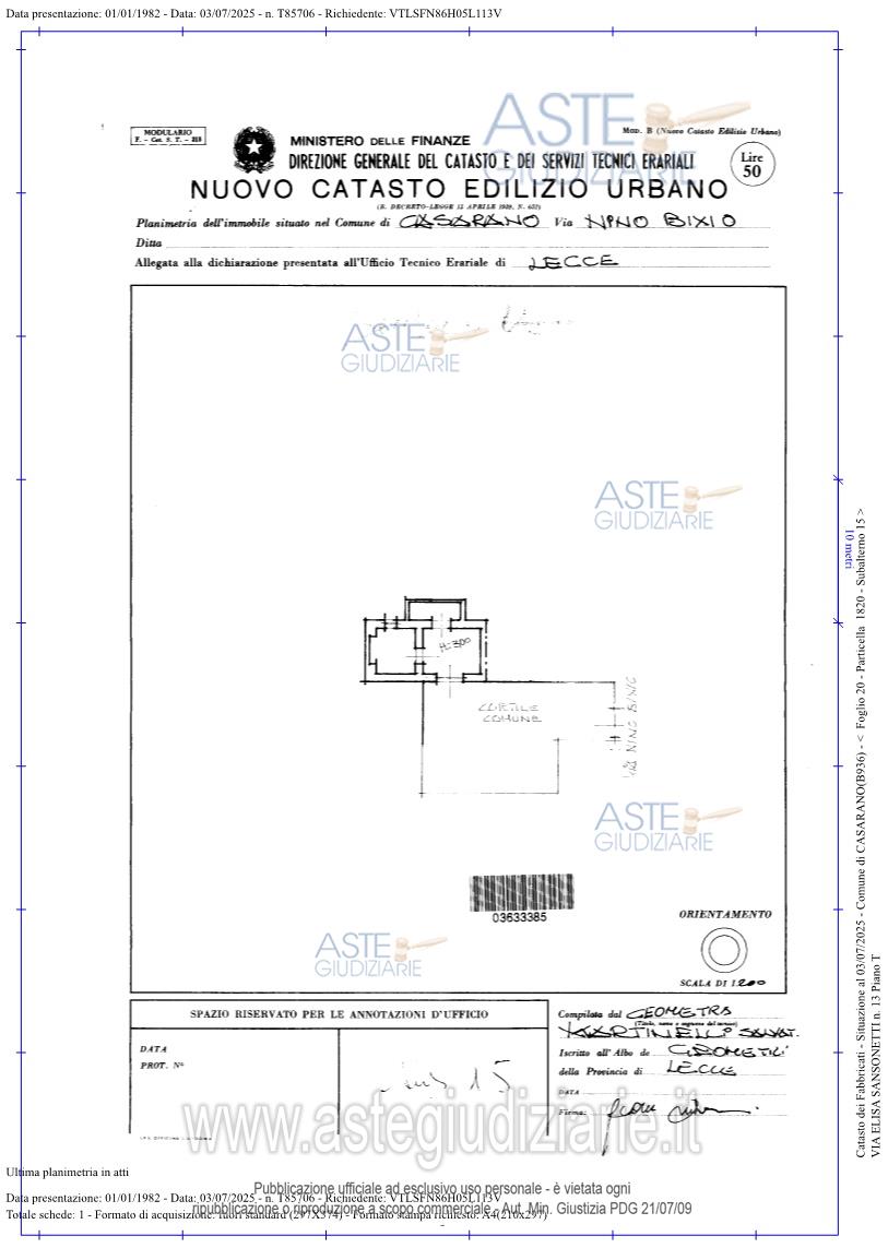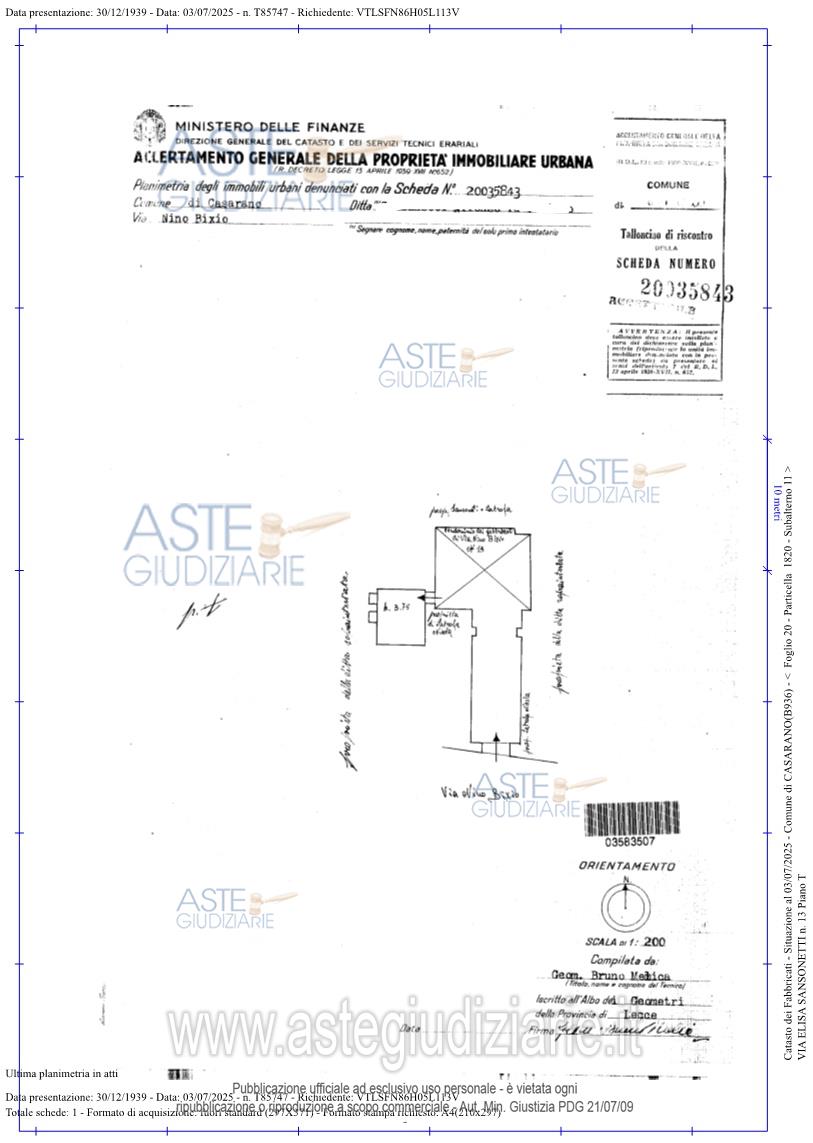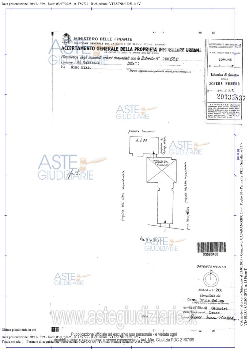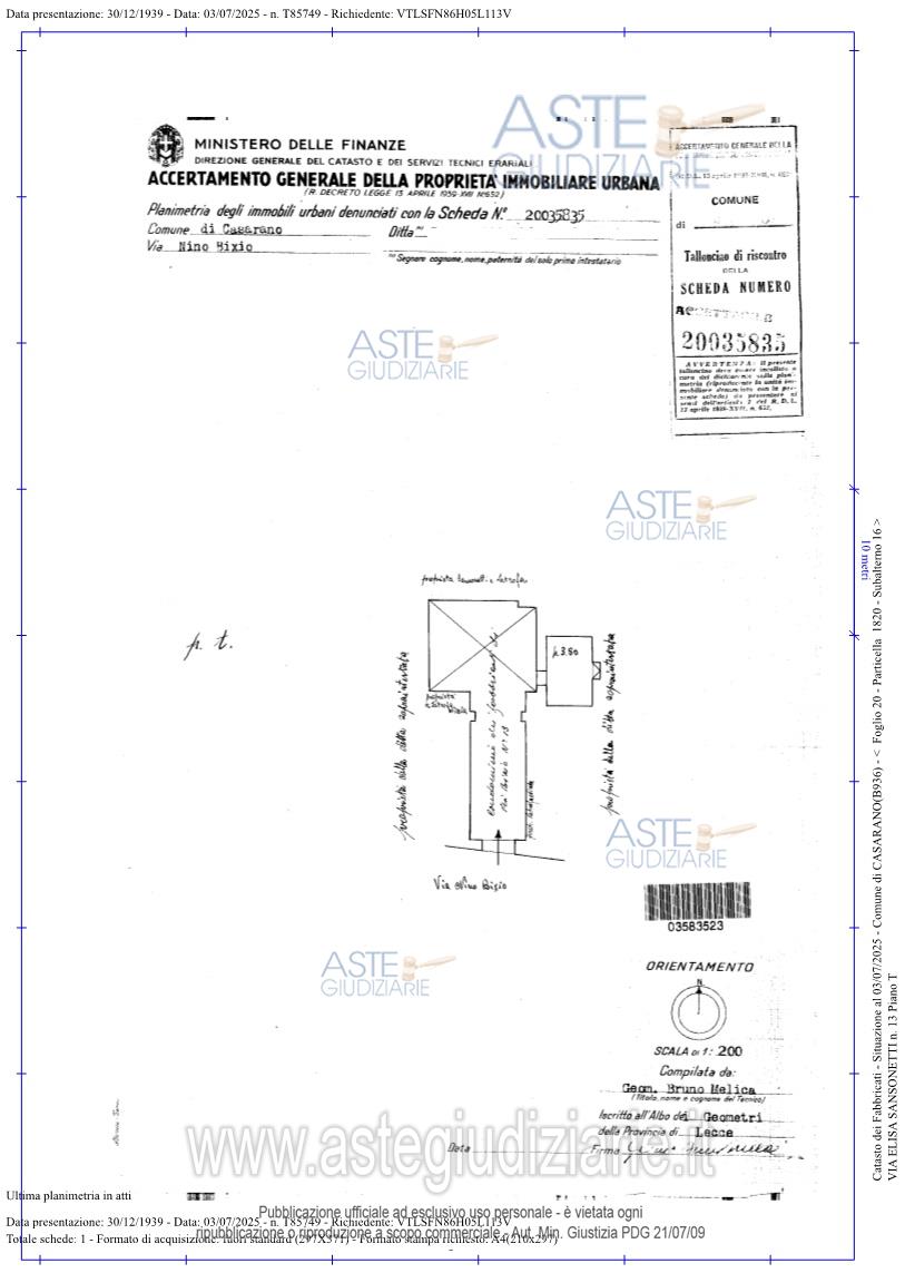 Vendita all'asta Senza incanto, con gara telematica asincrona - LOTTO UNICO: Piena proprieta’di immobile assimilabile a rustico a CASARANO in Via Sansonetti angolo via Astore snc, della superficie commerciale di 1.096,40 mq per la quota di 100/100 di piena proprietà. Immobile storico identificato come Palazzo Astore (denominato anche Palazzo Latrofa), ubicato inCasarano, in centro storico, tra via Elisa Sansonetti (già via Nino Bixio) e via Francesco Antonio Astore.L'unità immobiliare oggetto di valutazione è posta al piano terra e primo, ha un'altezza interna di 4.5 media. Prezzo base € 690.540,00 (offerta minima € 517.905,00). Data inizio operazioni di vendita: 26/05/2026 ore 10:00. Professionista delegato alla vendita Avv. Giampaolo Salvatore - Email "avvgiampaolosalvatore@gmail.com"; Cell. 3388515616; Tel. 0832315113. Custode Giudiziario Avv. Giampaolo Salvatore - Email "avvgiampaolosalvatore@gmail.com"; Cell. 3388515616; Tel. 0832315113. Rif. Tribunale di Lecce - Espropriazione immobiliare (cartabia) n. 100/2025