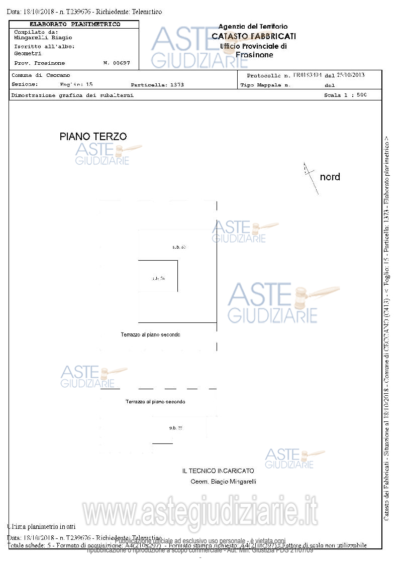 Vendita all'asta Senza incanto, con gara telematica asincrona - LOTTO 13: Il lastrico solare costituisce la porzione di copertura a terrazzo non praticabile e non accessibile del complesso denominato "I Limoni" destinato a servizi. Il terrazzo è privo di pavimento con l'impermeabilizzazione a vista. Il corpo di fabbrica, nel quale è collocato, è a tre elevazioni fuori terra ed una interrata, è di recente realizzazione, ha copertura a terrazzo, struttura in c.a. e facciata intonacata e tinteggiata. Prezzo base € 11.052,45 (offerta minima € 8.289,33). Data inizio operazioni di vendita: 21/01/2026 ore 15:30. Giudice Simona Di Nicola. Professionista delegato alla vendita Avv. Fabrizio Faustini - Email "studiolegalefaustini@libero.it"; Tel. 0775859589. Custode Giudiziario Avv. Fabrizio Faustini - Email "studiolegalefaustini@libero.it"; Tel. 0775859589. Rif. Tribunale di Frosinone - Esecuzione immobiliare post legge 80 n. 164/2018