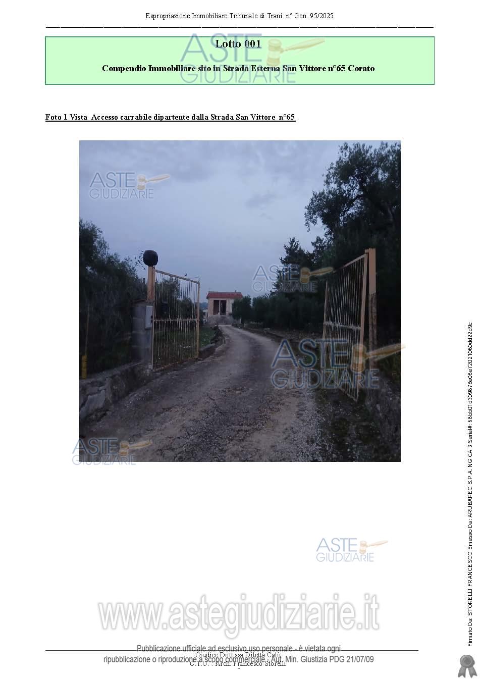 Vendita all'asta Senza incanto, con gara telematica sincrona - LOTTO UNICO: COMPLESSO IMMOBILIARE SITUATO IN CORATO ALLA STR. ESTERNA SAN VITTORE. Prezzo base € 216.013,00 (offerta minima € 181.013,00). Data vendita 30/06/2026 ore 10:00. Professionista delegato alla vendita: Avv. Pasqualinda Ippedico - Email "avv.lindaippedico@libero.it"; Tel. 080/3620681; Cell. 340/8757417.