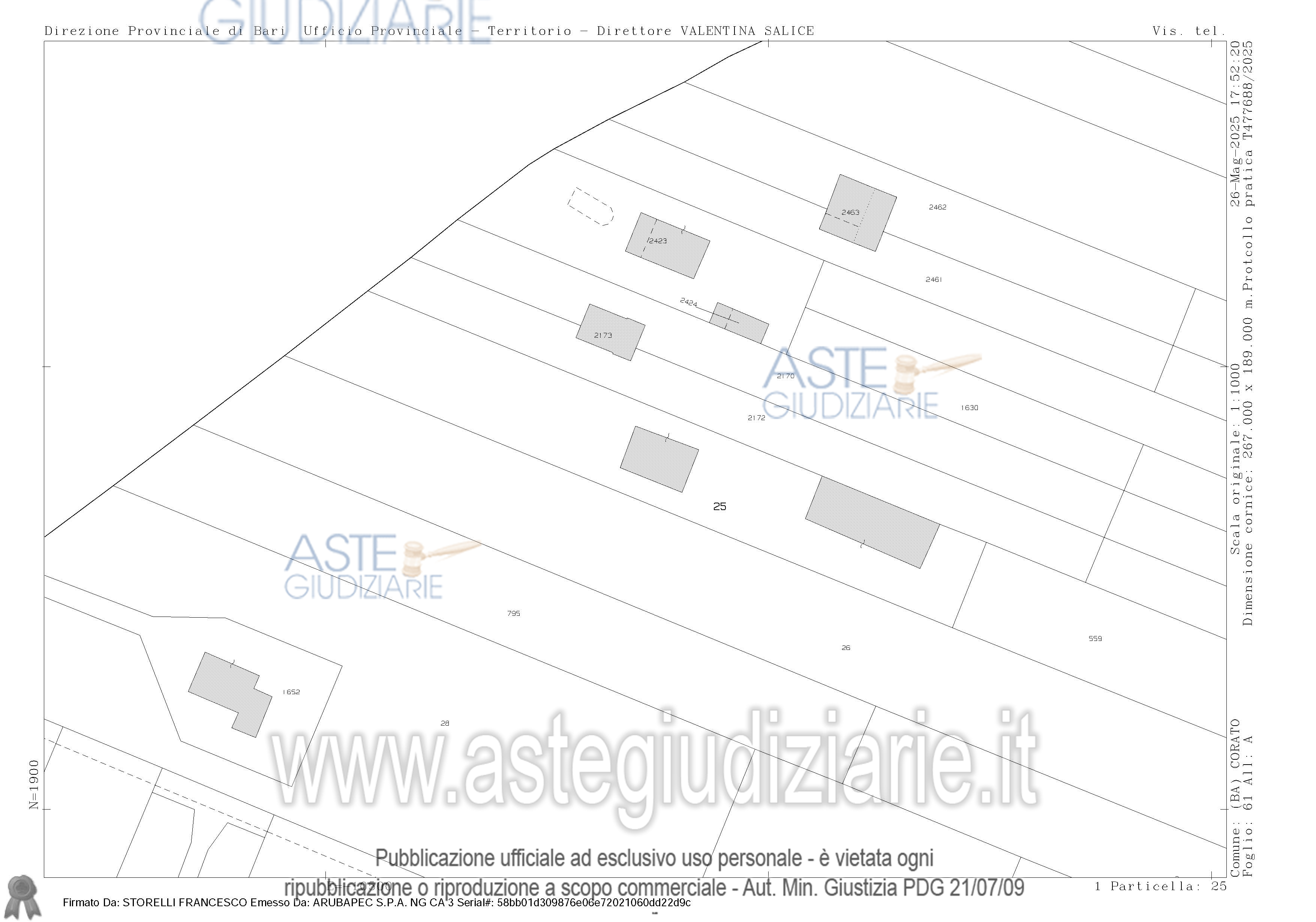 Custode Giudiziario: Avv. Pasqualinda Ippedico - Email "avv.lindaippedico@libero.it"; Tel. 080/3620681; Cell. 340/8757417.