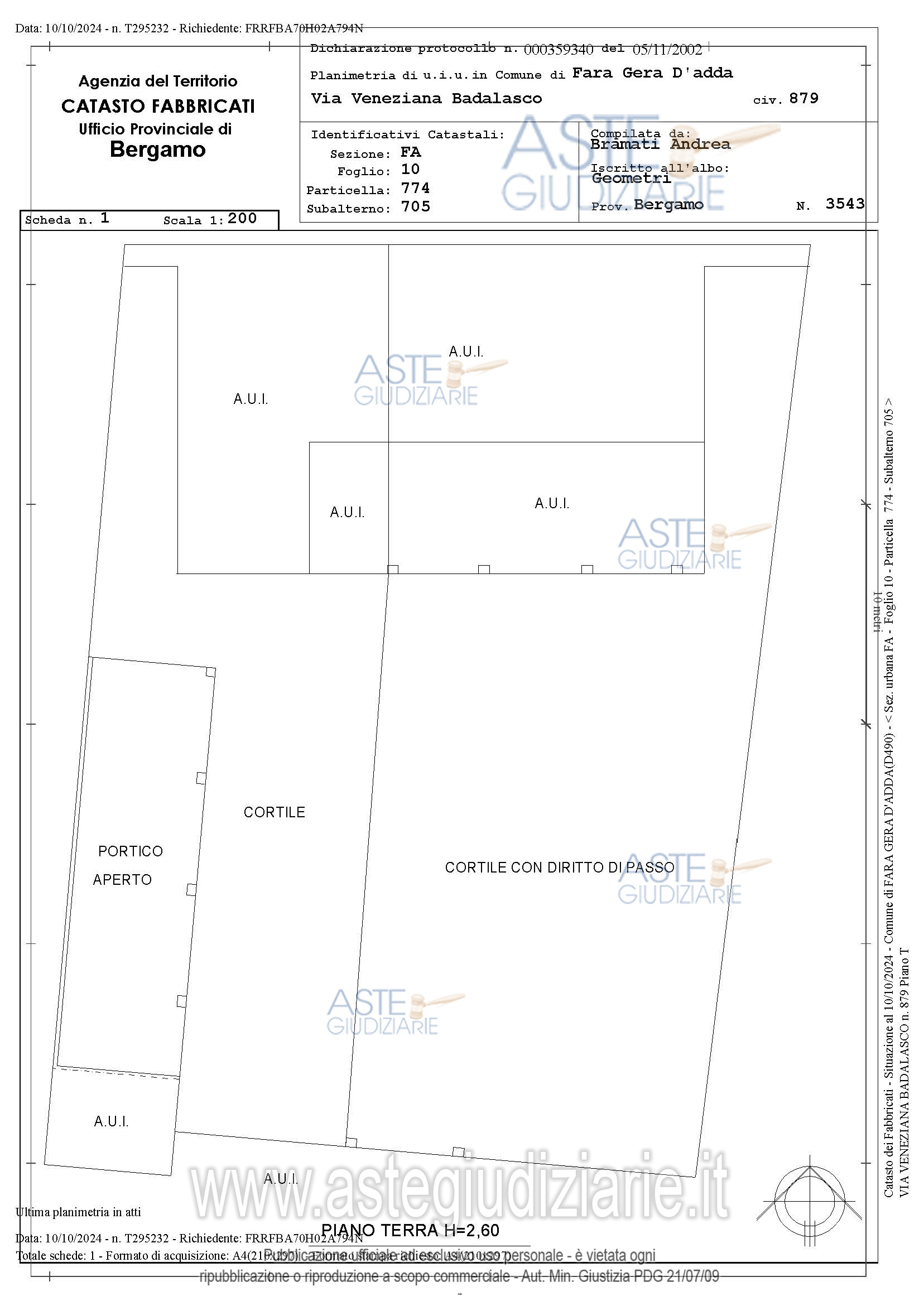 Vendita all'asta Senza incanto, con gara telematica asincrona - LOTTO 3: Corpo di fabbrica a tettoia porticata aperta verso porzione di area di corte di pertinenza esclusiva, al piano terra. La struttura è caratterizzata da un muro continuo in mattoni e pietrame di delimitazione verso l'esterno, con pilastri in mattoni, che definiscono le campate. Le travi e l'orditura di copertura sono in legno e con tegole su falda unica. Il pavimento è in battuto di cemento, l'area a cortile è con ghiaia ed erba incolta. Libero. Prezzo base € 18.833,00 (offerta minima € 14.125,00). Data inizio operazioni di vendita: 12/02/2026 ore 09:30. Giudice Dott. Vincenzo Domenico Scibetta. Professionista delegato alla vendita Dott. Alberto Carrara - Email "studiocarrara@studiocgls.com"; Tel. 0350073211. Custode Giudiziario Dott. Alberto Carrara - Email "studiocarrara@studiocgls.com"; Tel. 0350073211. Rif. Tribunale di Bergamo - Espropriazione immobiliare (cartabia) n. 393/2024