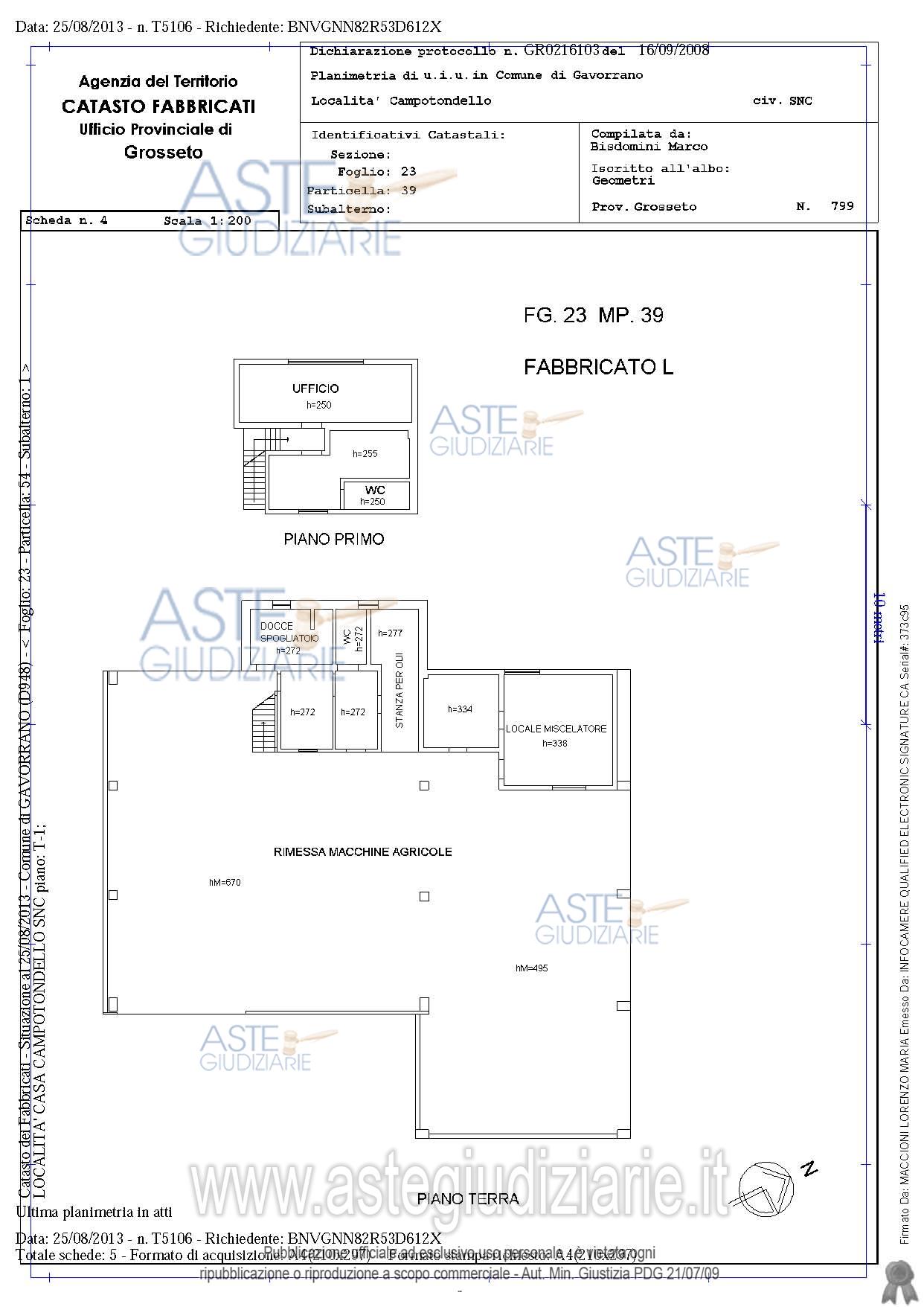 Custode Giudiziario: Lucia Ghelli - Email "ivggrosseto@astagiudiziaria.com"; Cell. 342/6598791.