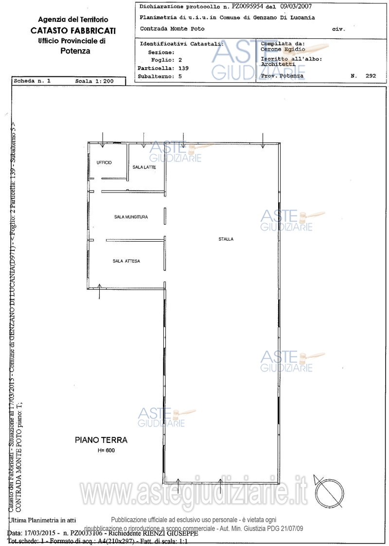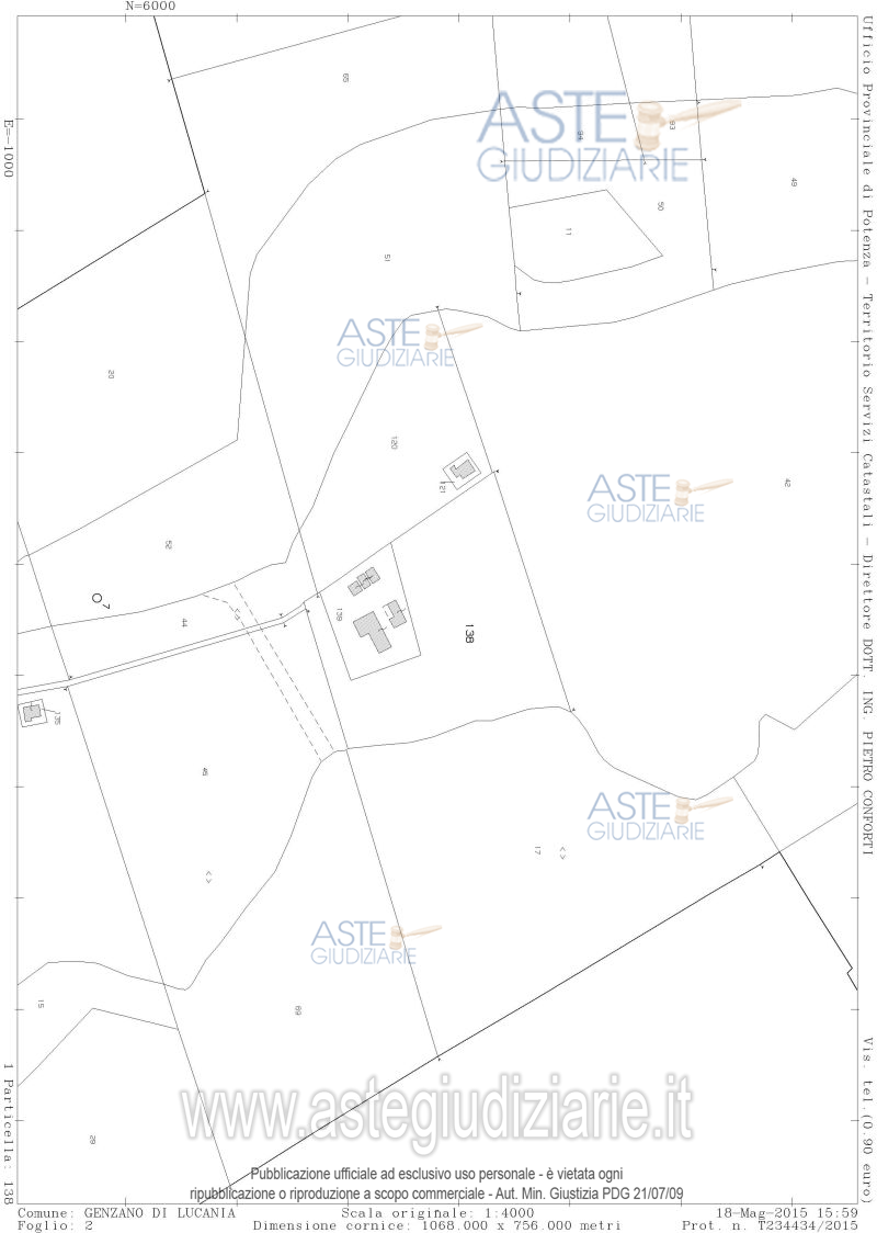 Vendita all'asta Senza incanto - LOTTO 2: Piena proprietà quota 1/1 degli immobili siti in Genzano di Lucania (PZ) alla località Monte Poto:terreni identificati in Catasto Terreni al foglio 2 p.lla 17, mq. 66.190,00, foglio 2 p.lla 138 mq. 28.830,00, abitazione identificata in C.f. al foglio 2 p.lla 139 sub. 2, mq. 50 cat A/4, deposito foglio 2 p.lla 139 sub. 4, mq 98,40 cat. C/2,deposito foglio 2 p.lla 139 sub. 3, mq. 86,10, cat. C/2, stalla al foglio 2 p.lla 139 sub. 6 mq. 275, cat. C/6, stalla al foglio 2 p.lla 139 sub. 5 mq. 540,00 cat. C/6. Prezzo base € 195.710,00 (offerta minima € 146.783,00). Data vendita 27/03/2026 ore 16:30. Professionista delegato alla vendita Avv. Antonio Casulli - Email "avv.antonio.casulli@mail.com"; Cell. 3356647447; Tel. 0971443408. Custode Giudiziario Avv. Antonio Casulli - Email "avv.antonio.casulli@mail.com"; Cell. 3356647447; Tel. 0971443408. Rif. Tribunale di Potenza - Esecuzione immobiliare post legge 80 n. 58/2009