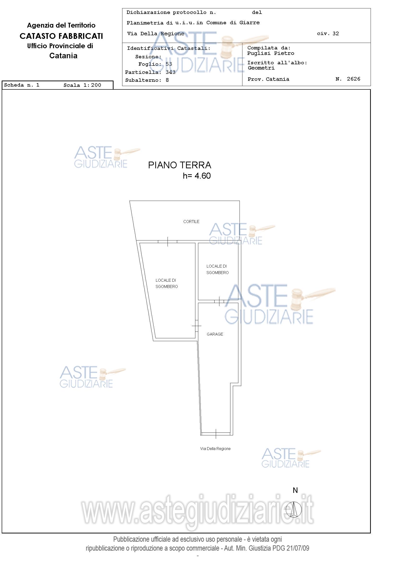 Vendita all'asta Senza incanto, con gara telematica sincrona mista - LOTTO UNICO: Garage-Autorimessa di 129 mq sita in Giarre (CT) in via della Regione n.32 piano T in catasto al foglio 53 part.lla 343 sub.8 categ. C6 superficie catastale mq.129 , rendita € 666,23porzione di Lastrico solare di 69 mq sito in Giarre (CT) via della Regione n.30 piano terzo in catasto al foglio.53 part.lla 343 sub.14 categ. F5 superficie catastale 69 mq. Prezzo base € 25.398,00 (offerta minima € 19.049,00). Data vendita 28/05/2026 ore 17:00. Professionista delegato alla vendita Avv. Annamaria Gambilonghi - Email "info-avv.gambilonghi@libero.it"; Tel. 095533120. Custode Giudiziario Avv. Annamaria Gambilonghi - Email "info-avv.gambilonghi@libero.it"; Tel. 095533120. Rif. Tribunale di Catania - Esecuzione immobiliare post legge 80 n. 742/2021