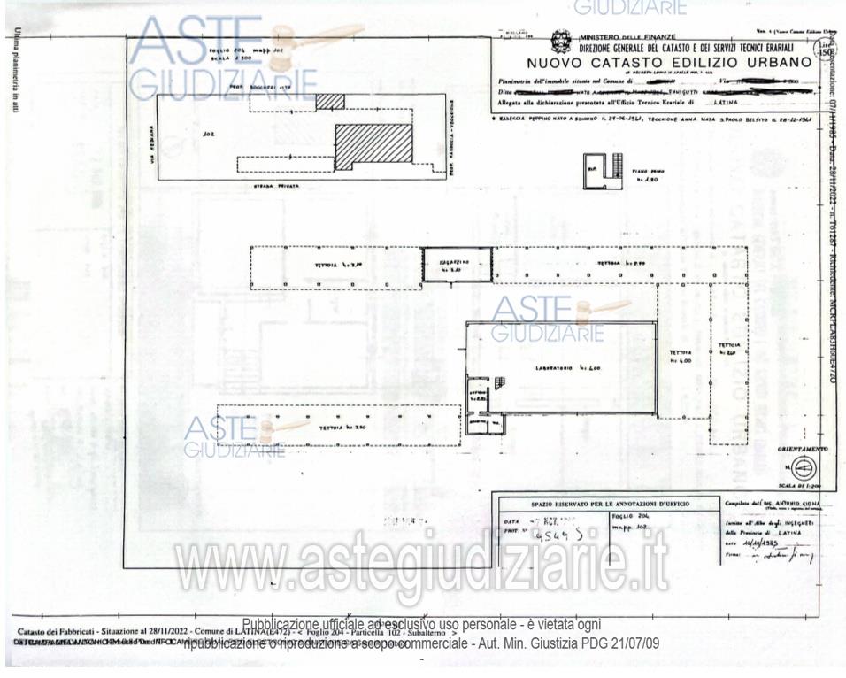 Vendita all'asta Senza incanto, con gara telematica asincrona - LOTTO 1: piena proprietà di capannone artigianale, utilizzato come laboratorio per la lavorazione di materiali isolanti, costituito da un corpo di fabbrica principale al quale sono direttamente annessi locali magazzino, tettoie, uffici e altri accessori, piazzale di manovra e area esterna pertinenziale, il tutto per una superficie catastale (tra coperto e scoperto) pari a mq. 2667. Prezzo base € 558.000,00 (offerta minima € 418.500,00). Data inizio operazioni di vendita: 31/03/2026 ore 12:30. Professionista delegato alla vendita Avv. Loredana Citrone - Email "avv.loredana.citrone@tiscali.it"; Cell. 3284576115. Rif. Tribunale di Latina - Contenzioso civile n. 258/2025