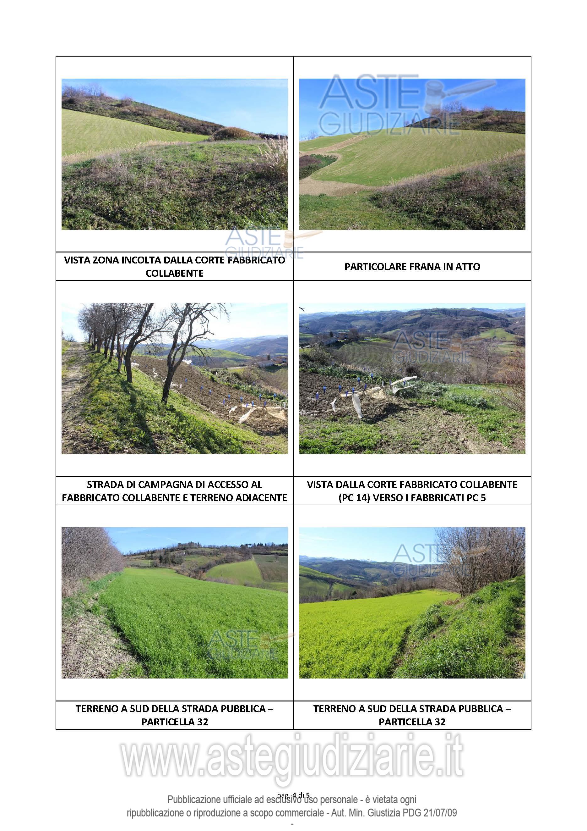 Vendita all'asta Senza incanto, con gara telematica asincrona - LOTTO 5: Compendio immobiliare composto da fabbricato colonico, servizio agricoli e fabbricato collabente. Il tutto oltre ai terreni agricoli (coltivabili e non) che sommano una sup. catastale di mq419.734. Sup. commerciali di mq291,00 (abitazione colonica), mq304 (servizi agricoli – corpo lato est), mq141 (servizi agricoli –corpo lato ovest), mq334 (fabbricato collabente). Per i terreni agricoli si farà riferimento alla sup. catastale: vigneto mq. 42.500, seminativo mq. 236.000, incolto sterile/calanchi mq 141.234. Prezzo base € 569.250,00 (offerta minima € 426.937,50). Data inizio operazioni di vendita: 11/03/2026 ore 10:00. Giudice Fabio Santoro. Professionista delegato alla vendita Avv. Sonia Valeriani - Email "soniavaleriani83@gmail.com"; Cell. 3482928148. Custode Giudiziario Avv. Sonia Valeriani - Email "soniavaleriani83@gmail.com"; Cell. 3482928148. Rif. Tribunale di Forlì - Esecuzione immobiliare post legge 80 n. 40/2019