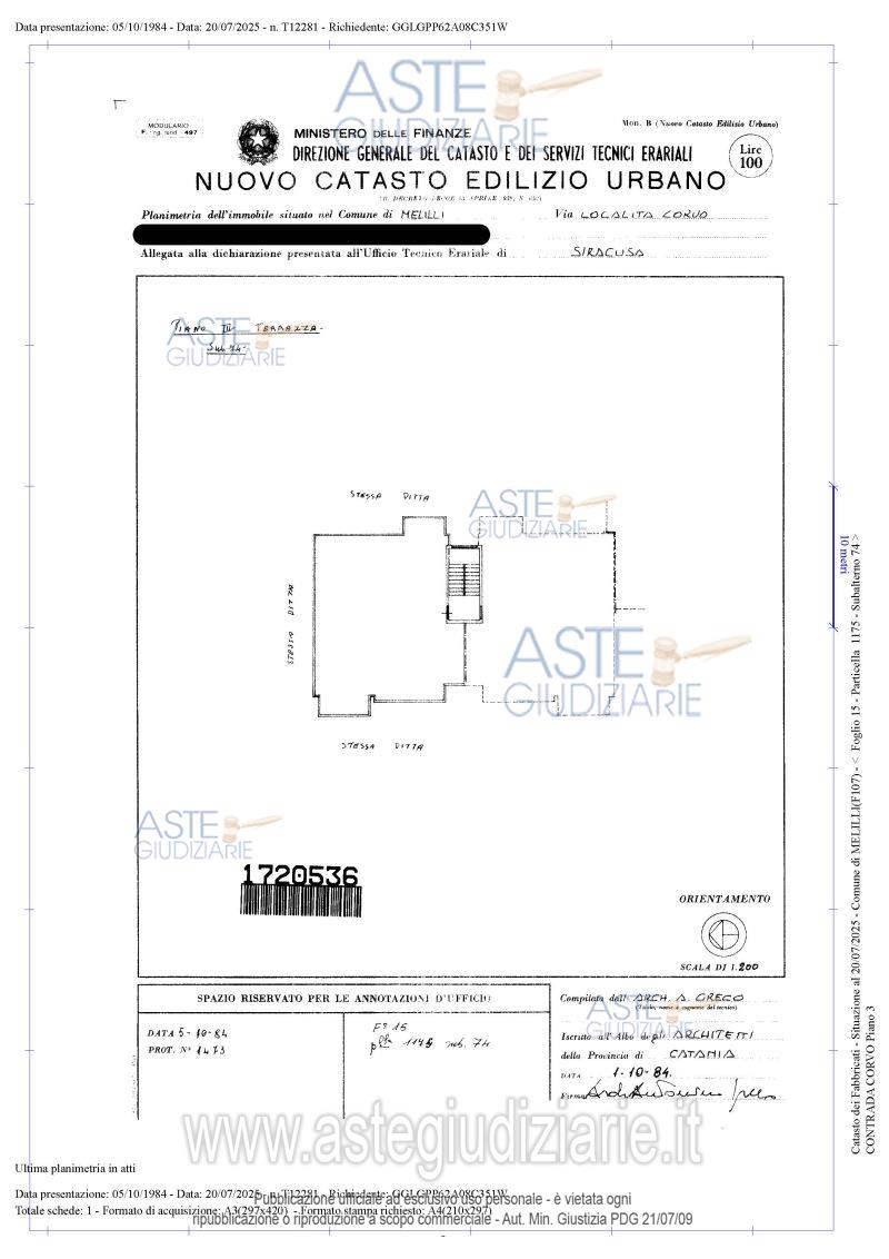 Vendita all'asta Senza incanto, con gara telematica sincrona mista - LOTTO 12: Piena proprietà di lastrico solare sito al piano terzo della Palazzina S14, scala A. Il bene risulta libero. Prezzo base € 4.500,00 (offerta minima € 3.375,00). Data vendita 25/06/2026 ore 11:00. Giudice Dott. Fabio Letterio Ciraolo. Custode Giudiziario Avv. Maria Cristina Grassi - Email "avv.mariacristinagrassi@gmail.com". Curatore Avv. Maria Cristina Grassi - Email "avv.mariacristinagrassi@gmail.com"; Tel. 0950907731. Rif. Tribunale di Catania - Fallimentare n. 1/2007