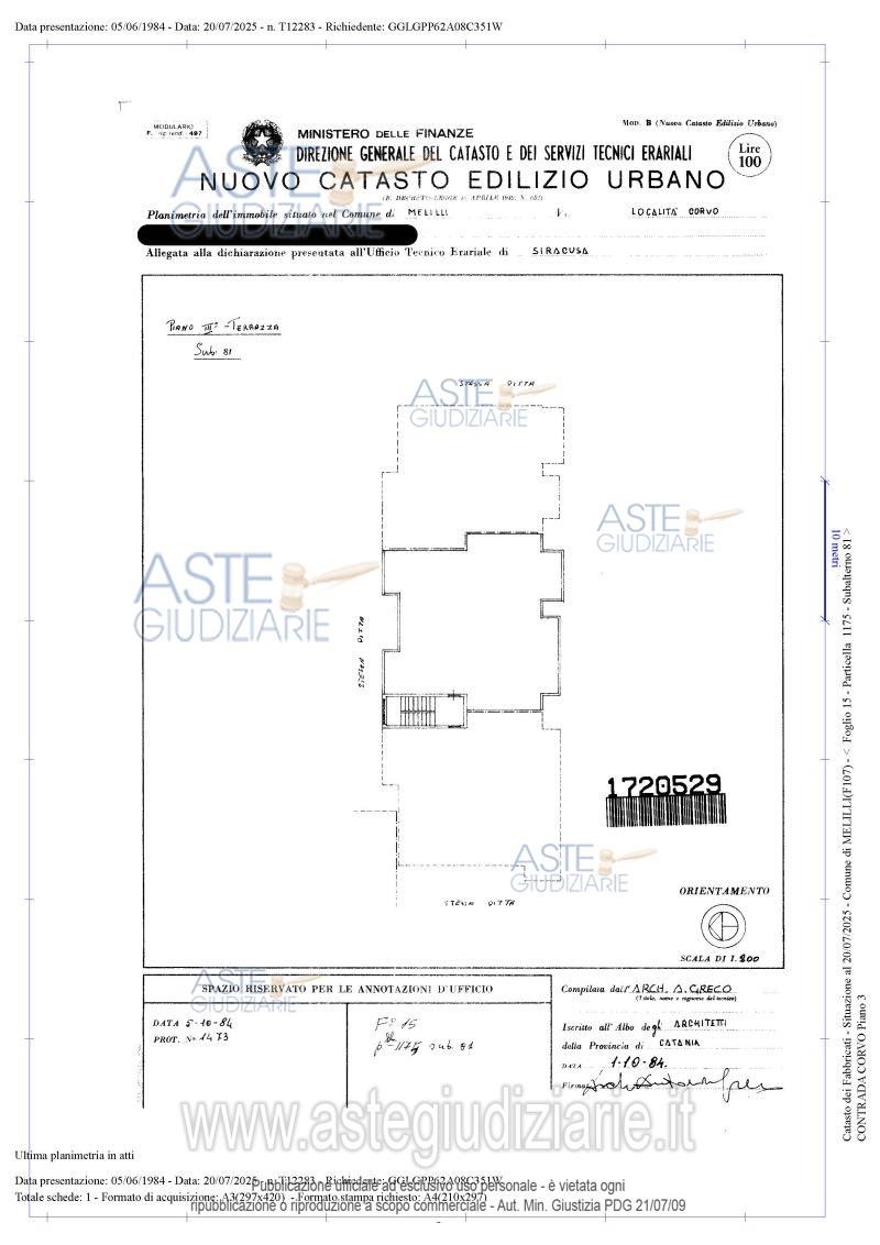 Vendita all'asta Senza incanto, con gara telematica sincrona mista - LOTTO 14: Piena proprietà di lastrico solare sito al piano terzo della Palazzina S14. Il bene risulta libero. Prezzo base € 5.250,00 (offerta minima € 3.937,00). Data vendita 25/06/2026 ore 11:00. Giudice Dott. Fabio Letterio Ciraolo. Custode Giudiziario Avv. Maria Cristina Grassi - Email "avv.mariacristinagrassi@gmail.com". Curatore Avv. Maria Cristina Grassi - Email "avv.mariacristinagrassi@gmail.com"; Tel. 0950907731. Rif. Tribunale di Catania - Fallimentare n. 1/2007
