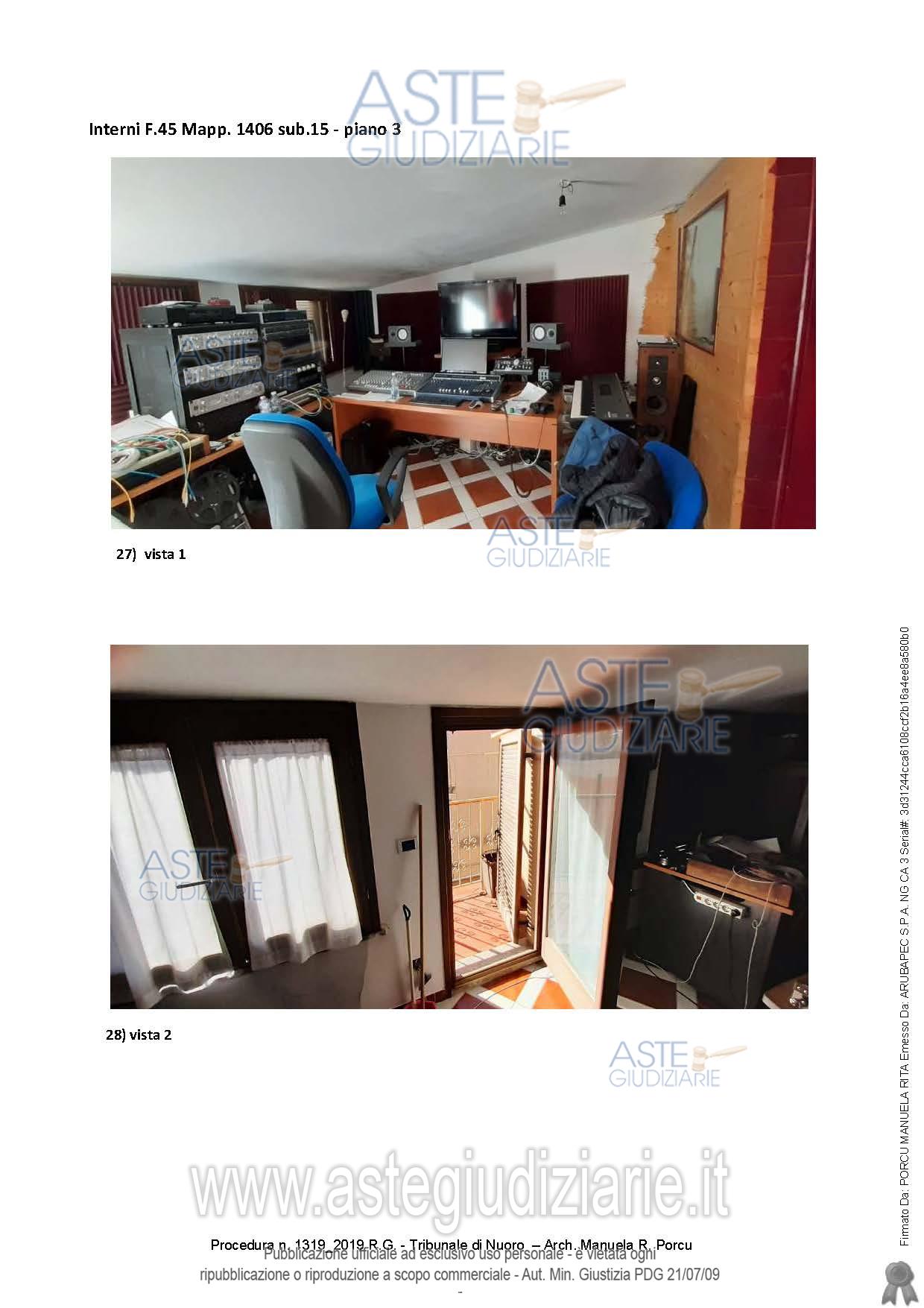 Vendita all'asta Senza incanto, con gara telematica asincrona - LOTTO 2: Piena proprietà della soffitta ubicata a Nuoro, corso Garibaldi n. 58, piano 3, mq 66,54, distinto al NCEU di Nuoro al F. 45 mapp. 1406 sub. 15. Prezzo base € 33.270,00 (offerta minima € 24.952,50). Data inizio operazioni di vendita: 28/01/2026 ore 17:00. Giudice Riccardo De Vito. Professionista delegato alla vendita Avv. Irene Mereu - Email "mereu.ir@tiscali.it"; Tel. 078432390. Custode Giudiziario Ivg Tempio Pausania - Email "visite.ivgnuoro@gmail.com"; Tel. 079630505. Rif. Tribunale di Nuoro - Contenzioso civile n. 1319/2019