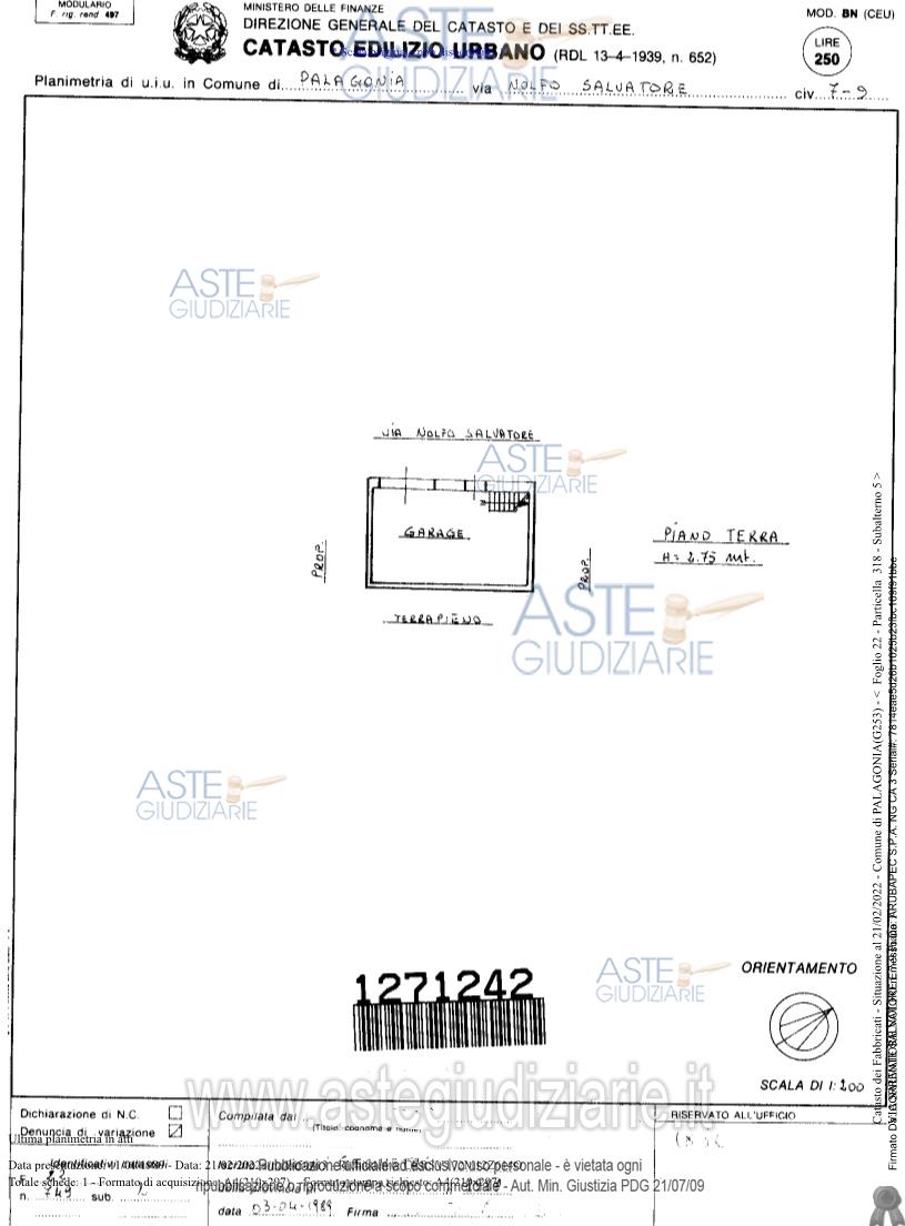 Vendita all'asta Senza incanto, con gara telematica sincrona mista - LOTTO 1: garage ubicato a piano terra di un fabbricato situato a Palagonia in via Salvatore Nolfo n.7 costituito da un monovano e un vano sottoscala con servizio igienico. L’Unità Immobiliare ha superficie commerciale di 33,4 mq. Prezzo base € 11.770,20 (offerta minima € 8.827,65). Data vendita 06/05/2026 ore 17:30. Giudice Dott. Agata Maria Patrizia Cavallaro. Professionista delegato alla vendita Avv. Margherita De Pasquale - Email "margheritadepasquale@yahoo.it"; Tel. 09331946337. Custode Giudiziario Avv. Margherita De Pasquale - Email "margheritadepasquale@yahoo.it"; Tel. 09331946337. Rif. Tribunale di Caltagirone - Esecuzione immobiliare post legge 80 n. 69/2019
