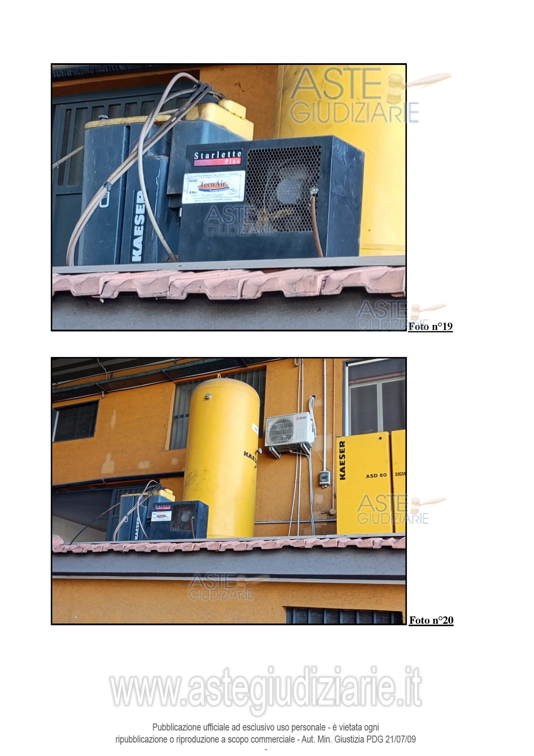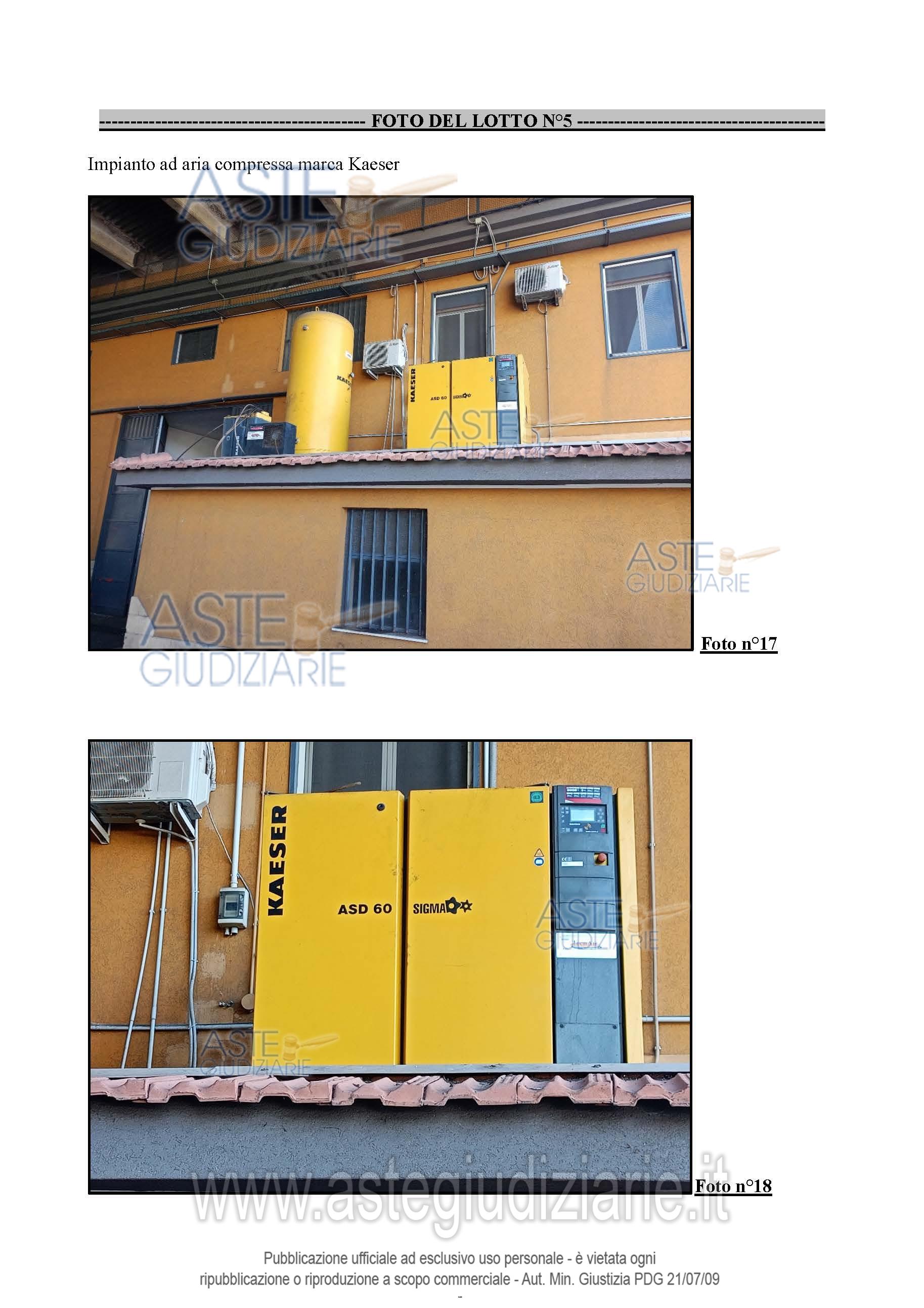 Vendita all'asta Senza incanto, con gara telematica sincrona mista - LOTTO 5: IMPIANTO AD ARIA COMPRESSA marca Kaser (lotto n.5 perizia n.1). Prezzo base € 8.000,00 (offerta minima € 6.000,00). Data vendita 27/05/2026 ore 17:30. Giudice: Dott. Oriana Calvo.